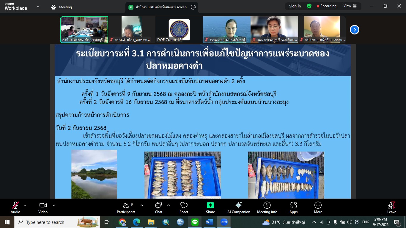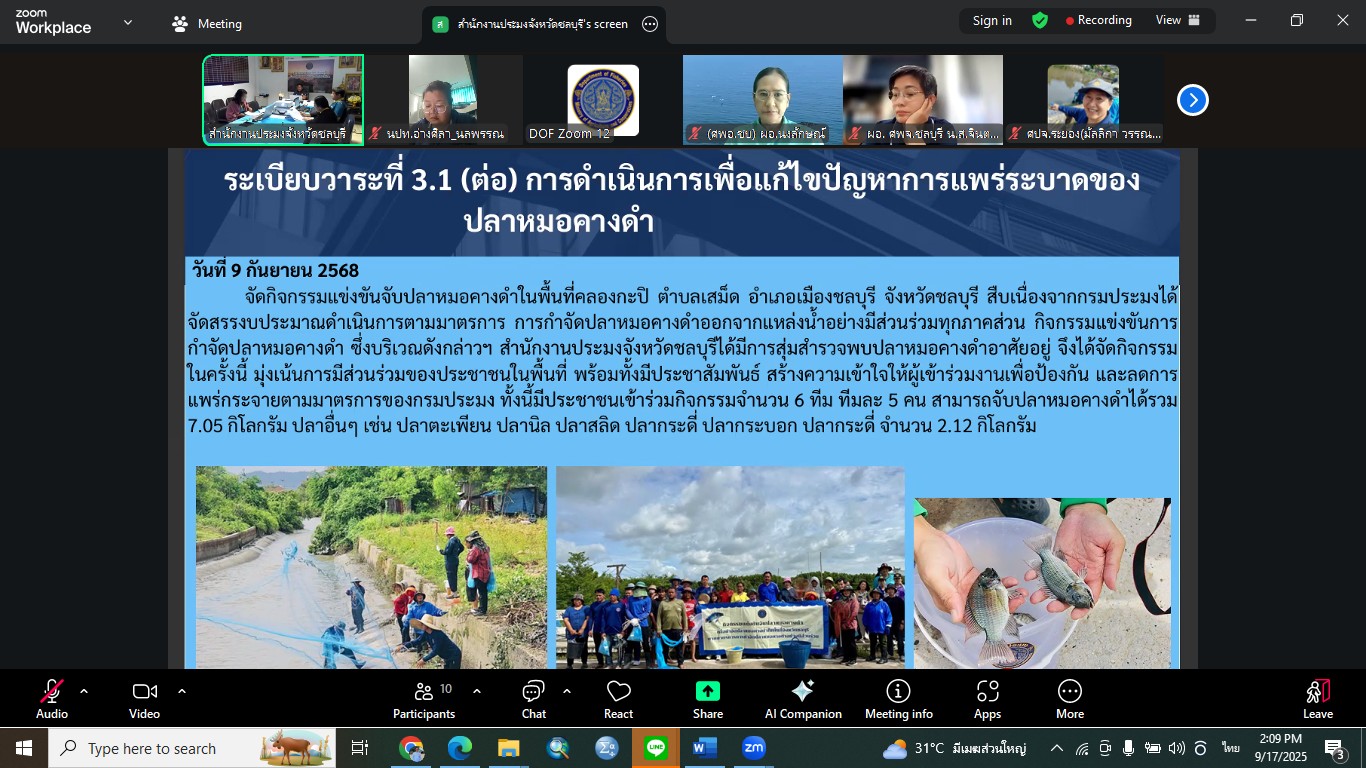 วันที่ 17 กันยายน 2568 เวลา 14.00 น. นายเจนณรงค์ วรรณอุบล หัวหน้าด่านตรวจประมงชลบุรี เข้าร่วมประชุมคณะกรรมการขับเคลื่อนนโยบายของกรมประมงจังหวัดชลบุรี ครั้งที่ 9/2568 ณ ห้องประชุมสำนักงานประมงจังหวัดชลบุรี โดยที่ประชุมได้ประชุมเกี่ยวกับการแก้ไขปัญหาการแพร่ระบาดของ ปลาหมอคางดำ ผลการควบคุมและเฝ้าระวังการทำประมงผิดกฎหมาย โครงการความเข้มแข็งกลุ่มผลิตด้านประมง และการดำเนินการกับเรือประมงของกลางของจังหวัดชลบุรี เป็นต้น