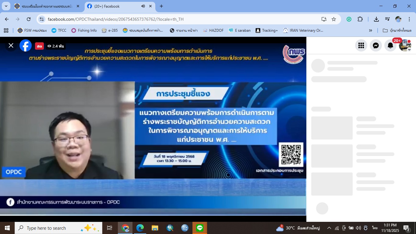 วันที่ 18 พฤศจิกายน 2568? เวลา 13.30 น. นายเจนณรงค์ วรรณอุบล หัวหน้าด่านตรวจประมงชลบุรี เข้าร่วมรับฟังการชี้แจงแนวทางการเตรียมความพร้อมการดำเนินการตามร่างพระราชบัญญัติการอำนวยความสะดวกในการพิจารณาอนุญาตและการให้บริการแก่ประชาชน ผลการประชุมเป็นไปด้วยความเรียบร้อย
