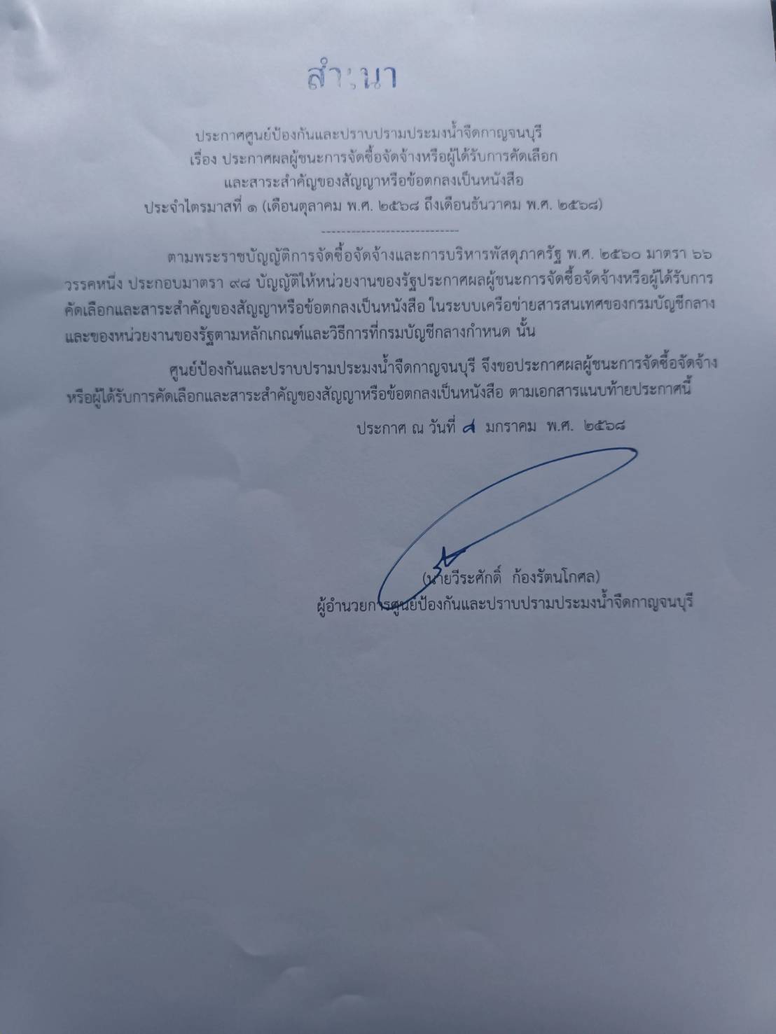 ประกาศผลผู้ชนะการจัดซื้อจัดจ้าง ประจำไตรมาสที่ 1 (เดือนตุลาคม  พ.ศ. 2568  ถึงเดือนธันวาคม พ.ศ. 2568)