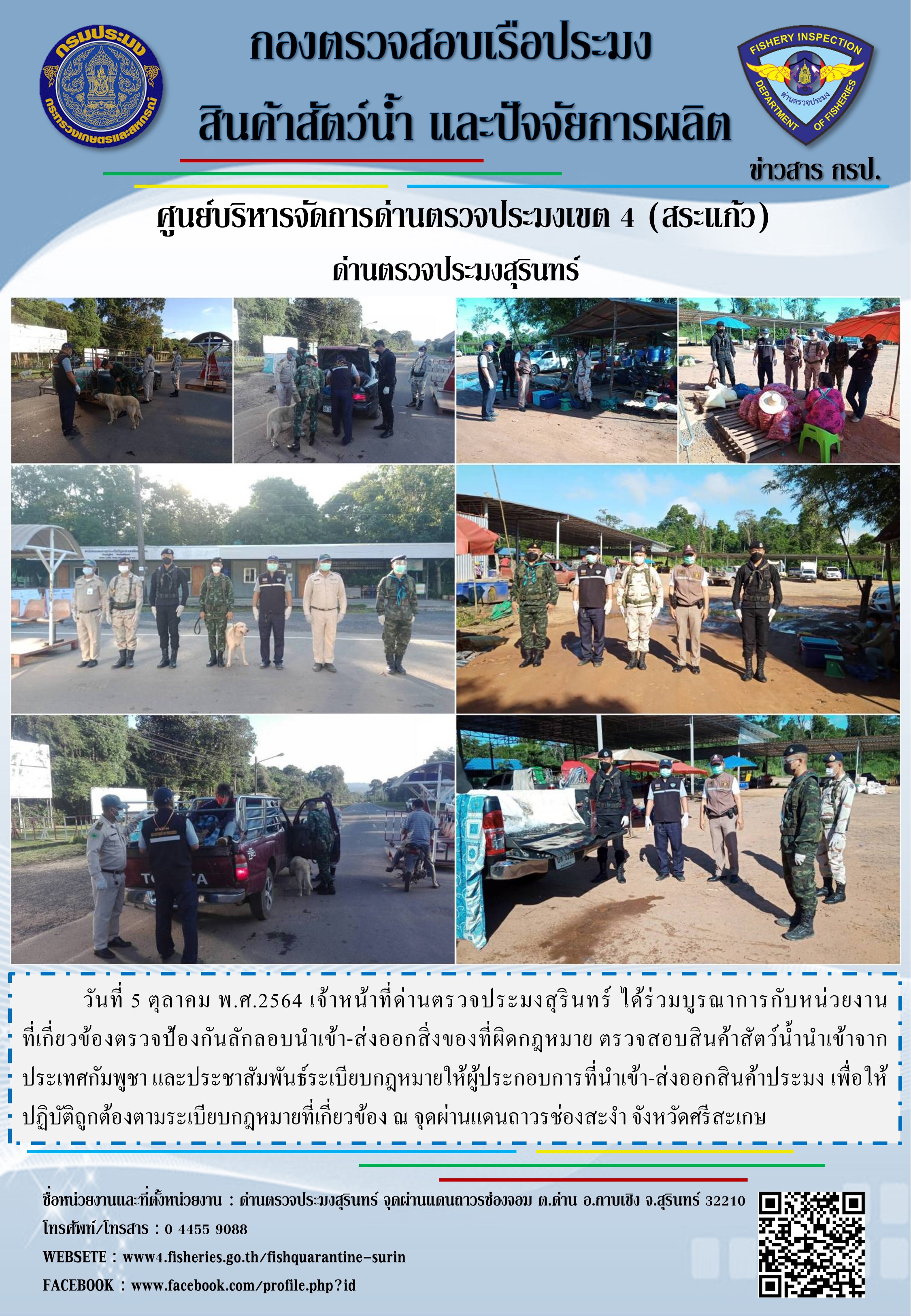 ผลการปฏิบัติงานด่านตรวจประมงสุรินทร์ วันที่ 5 ตุลาคม พ.ศ.2564..คลิก