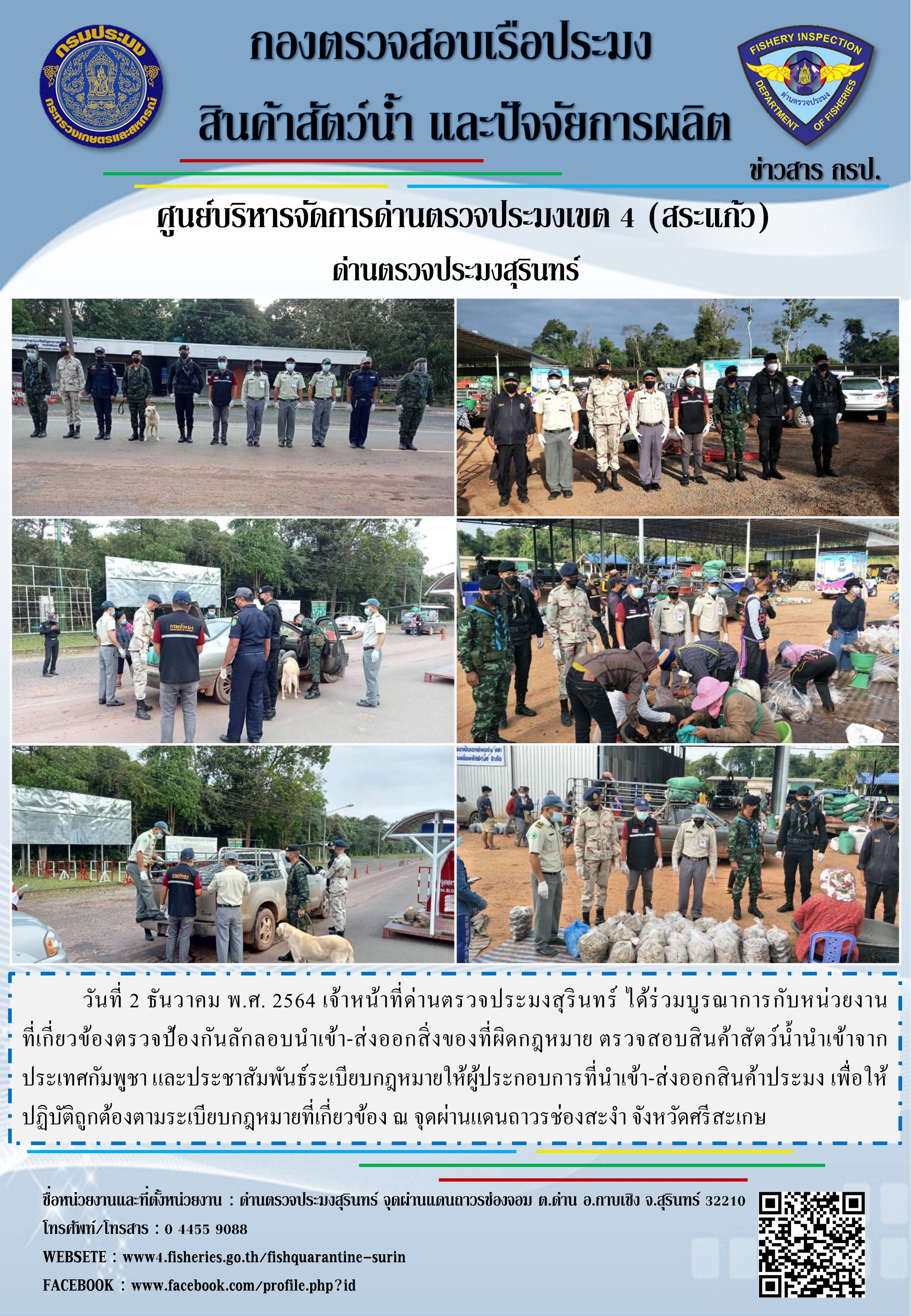 ผลการปฏิบัติงานด่านตรวจประมงสุรินทร์ วันที่ 2 ธันวาคม พ.ศ.2564..คลิก