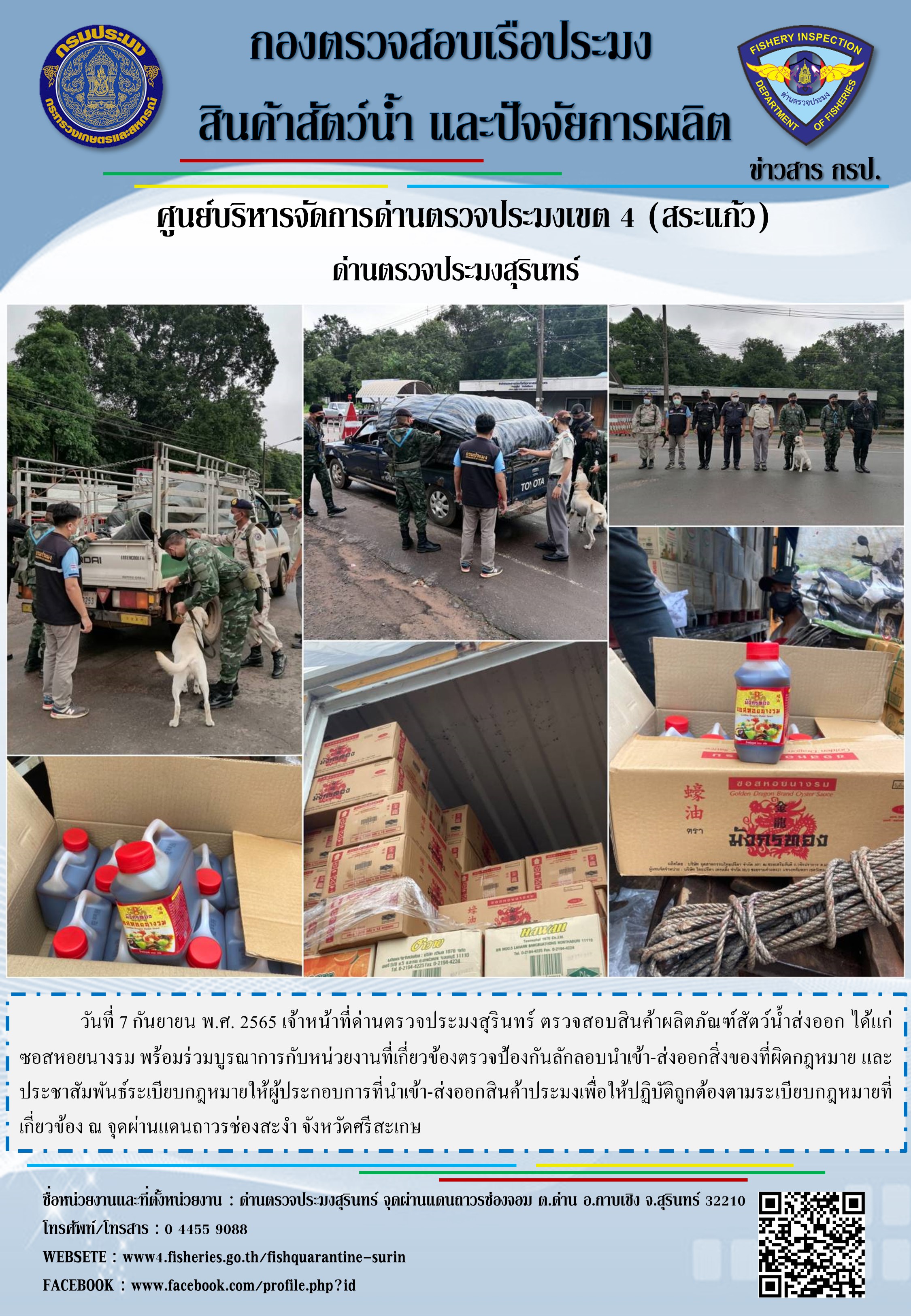 กับข้อเสนอแนะจากเจ้าของข้อมูล โดยด่านตรวจประมงสุรินทร์จะประกาศแจ้งให้ทราบอย่างชัดเจนก่อนเริ่มดำเนินการ