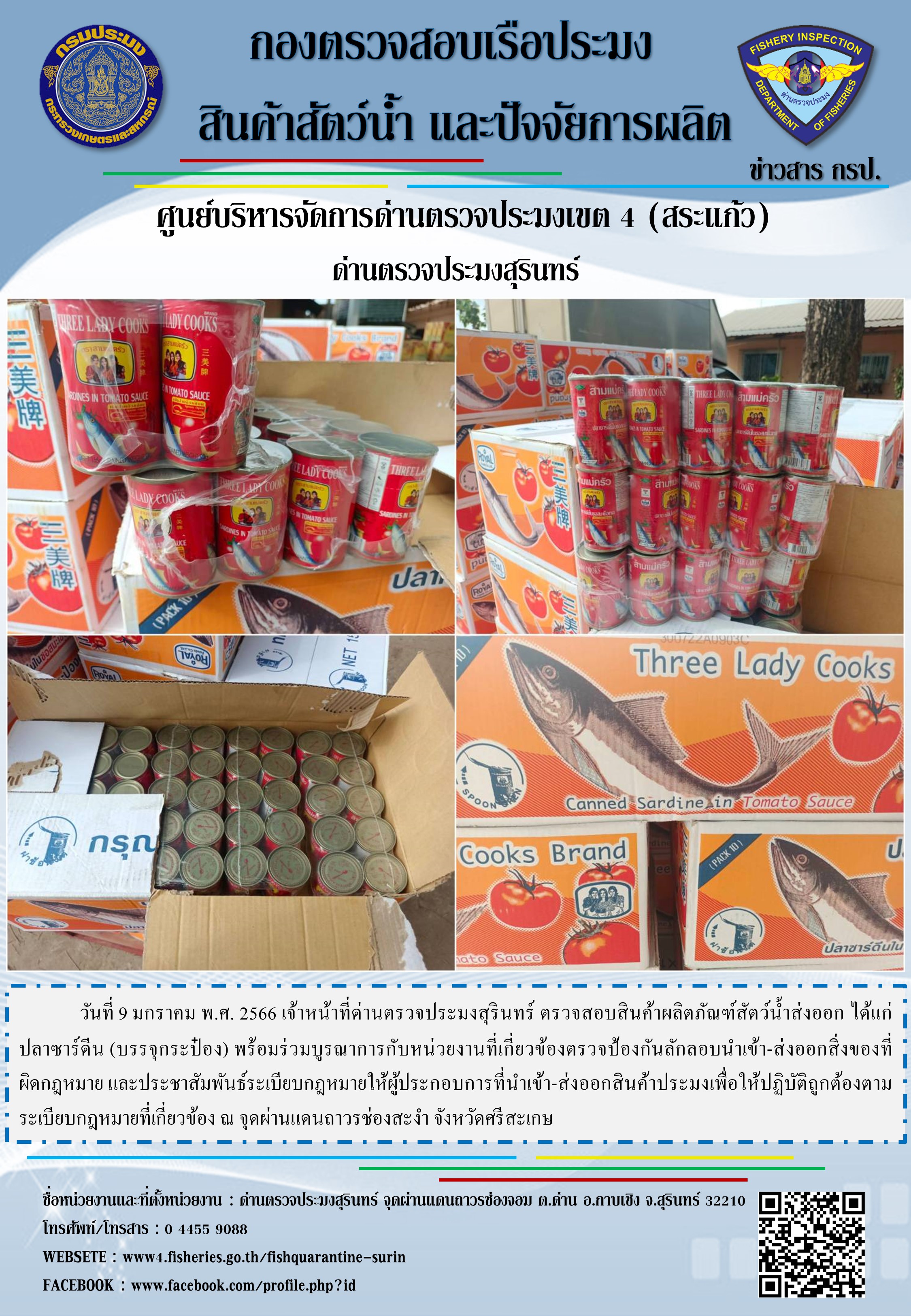 หรืออาจส่งประกาศแจ้งเตือนให้เจ้าของข้อมูลรับทราบโดยตรงตามช่องทางการสื่อสารของด่านตรวจประมงสุรินทร์