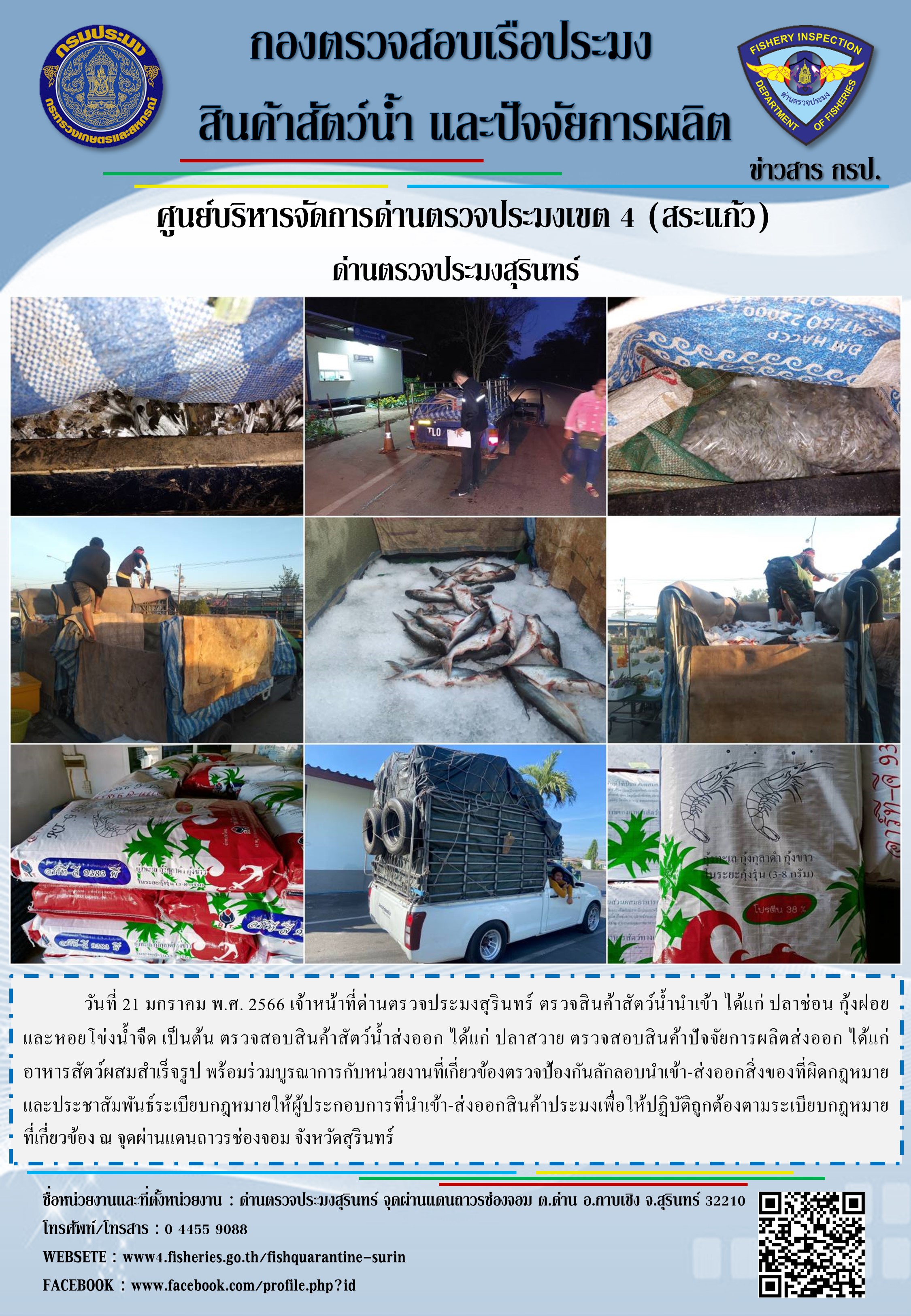 หรืออาจส่งประกาศแจ้งเตือนให้เจ้าของข้อมูลรับทราบโดยตรงตามช่องทางการสื่อสารของด่านตรวจประมงสุรินทร์