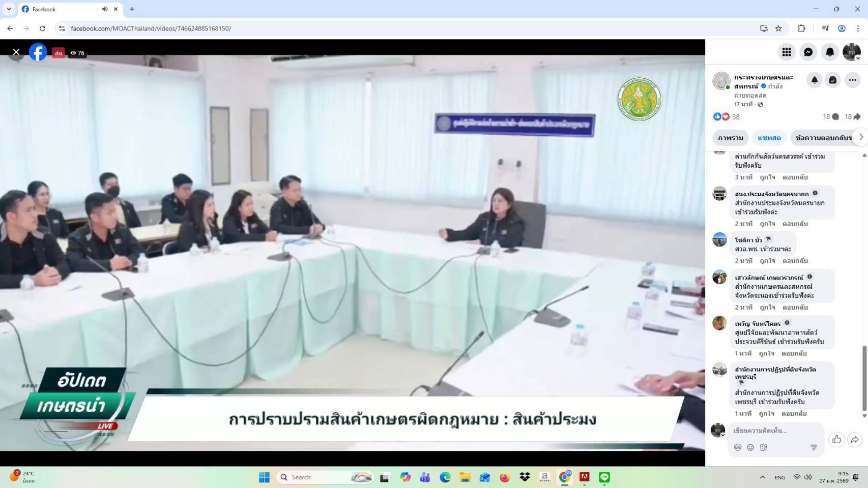 รับชมการถ่ายทอดสดรายการ "อัปเดต เกษตรนำ" เรื่องการปราบปรามสินค้าเกษตรผิดกฎหมาย (สินค้าประมงและปศุสัตว์)