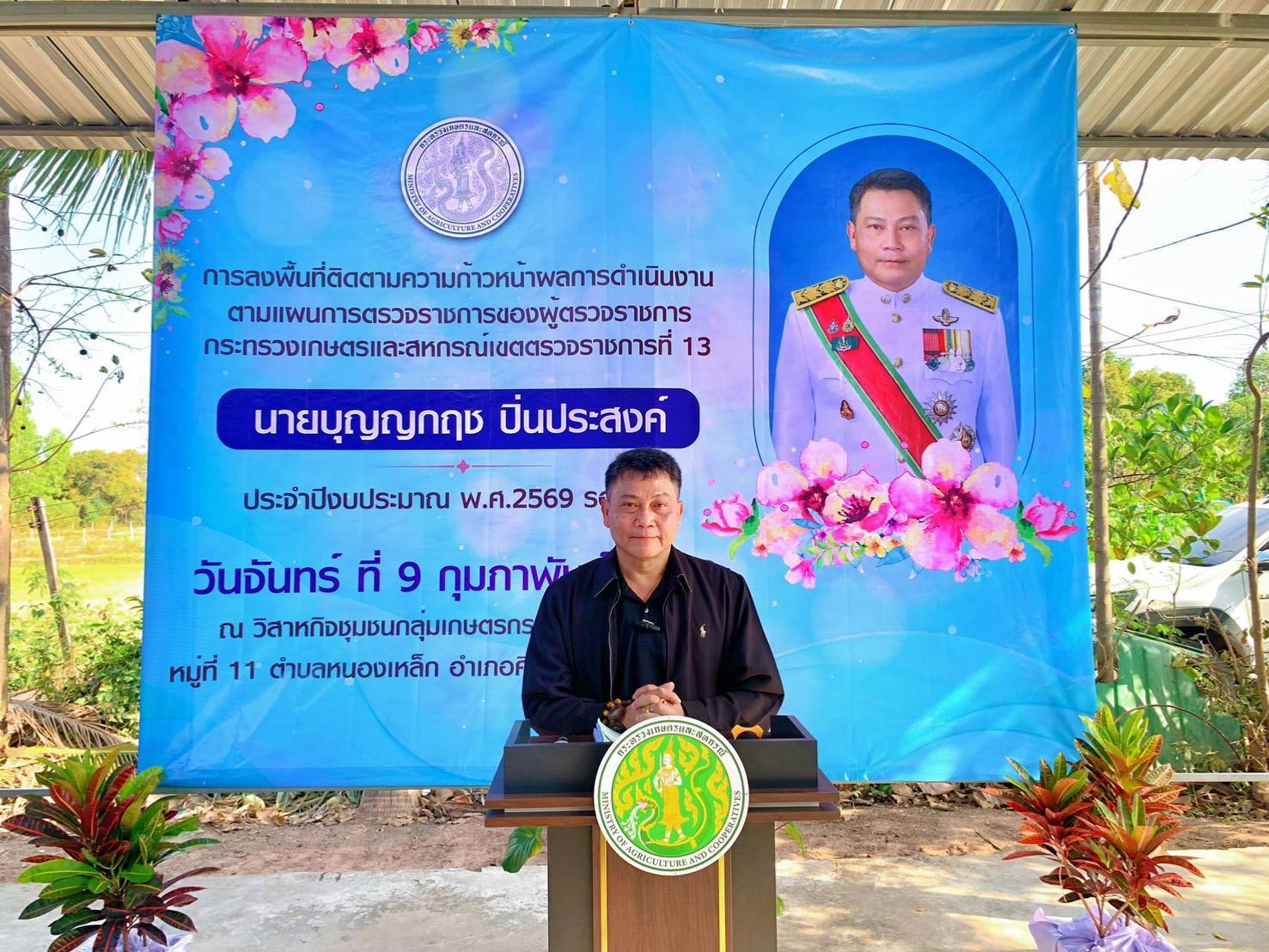 วันที่ 9 กุมภาพันธุ์ 2569 เวลา 09.30 น. นายบุญญกฤช ปิ่นประสงค์ ผู้ตรวจราชการกระทรวงเกษตรและสหกรณ์ เขตตรวจราชการที่ 13 ลงพื้นที่ติดตามงานนโยบายกระทรวงเกษตรและสหกรณ์ (แปลงใหญ่) จังหวัดสุรินทร์ ณ วิสาหกิจชุมชนกลุ่มเกษตรกรรมยั่งยืนบ้านไทร ตำบลหนองเหล็ก อำเภอศีขรภูมิ จังหวัดสุรินทร์ เพื่อติดตามผลการดำเนินงาน รับฟังปัญหา/อุปสรรค และให้ข้อเสนอแนะในการดำเนินงาน พร้อมทั้งเยี่ยมชมกิจกรรมภายในกลุ่ม อาทิ การปลูกปอเทือง/ปรับปรุงคุณภาพดินในการผลิตข้าว, ผลิตภัณฑ์จากผลการดำเนินงานแปลงใหญ่ข้าว, การผลิต-แปรรูปข้าว (โรงสีข้าว) และการตลาด, การจัดทำบัญชีต้นทุนและการจัดการภายในกลุ่ม และการผลิตโคเนื้อมาตรฐานฟาร์ม GFM และแปลงหญ้าเนเปีย โดยนายวัลลภ กองกรม หัวหน้าด่านตรวจประมงสุรินทร์ ร่วมลงพื้นที่ดังกล่าว