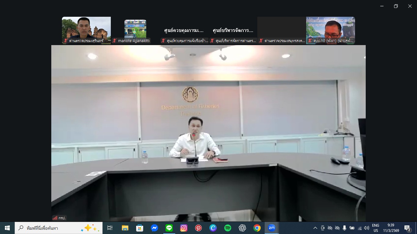 วันที่ 12 มีนาคม 2569 นายวัลลภ กองกรม หัวหน้าด่านตรวจประมงสุรินทร์  เข้าร่วมประชุมเรื่อง “ แนวทางการ ทำงานจากที่บ้าน (Work from Home) ของ หน่วยงานในสังกัด กรป.” การประชุมเป็นไปตามข้อสั่งการภายในของอธิบดีกรมประมง และ มติ ครม. ให้ข้าราชการ-รัฐวิสาหกิจทำงานจากที่บ้าน (Work from Home) ทันที เพื่อรับมือวิกฤตพลังงานโดยมีนายซุลกีฟลี ลติฟีปุตรา ผู้อำนวยการกองตรวจสอบเรือประมง สินค้าสัตว์น้ำ และปัจจัยการผลิต กรป. กรมประมง เป็นประธานการประชุม
