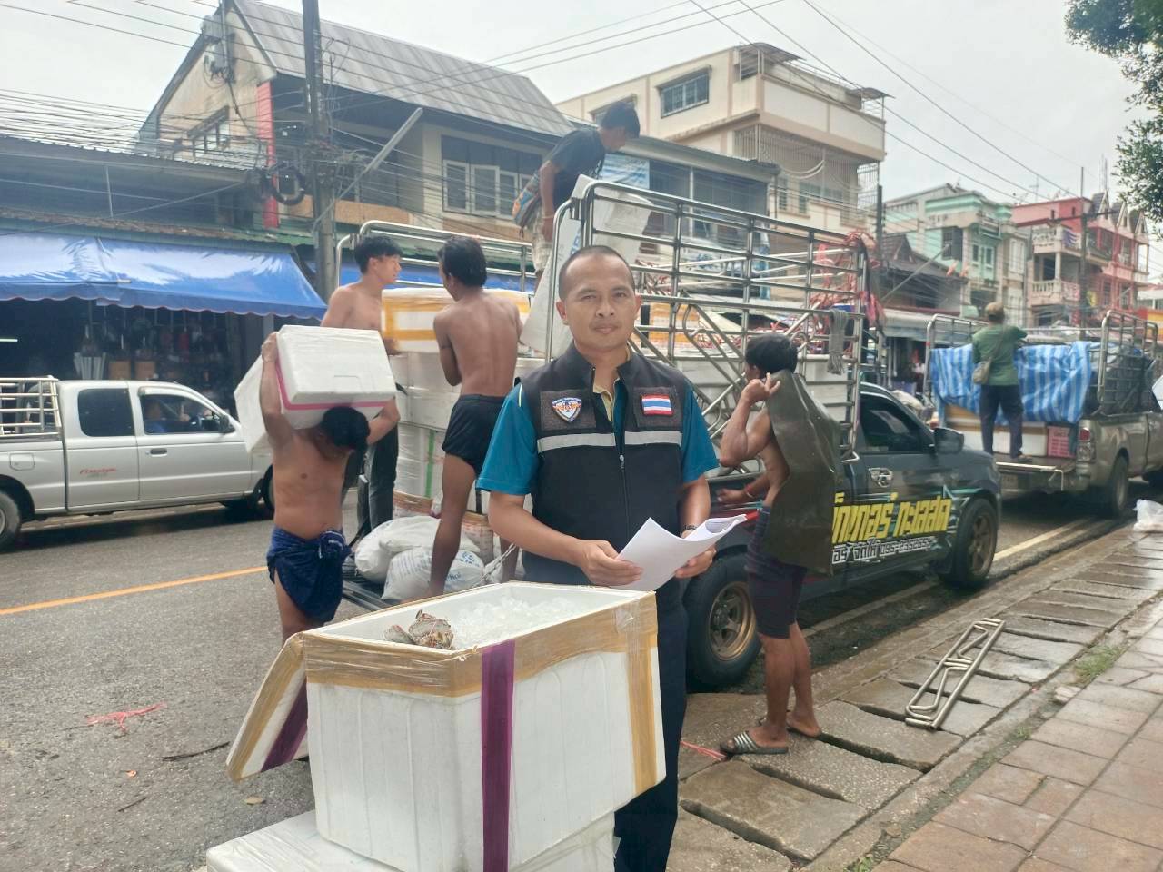 เจ้าหน้าที่ศูนย์บริหารจัดการด่านตรวจประมงเขต 1 (เชียงราย) ตรวจสอบสินค้าสัตว์น้ำส่งออกไปยังสาธารณรัฐประชาธิปไตยประชาชนลาว ผ่านทางด่านพรมแดนอำเภอเชียงแสน