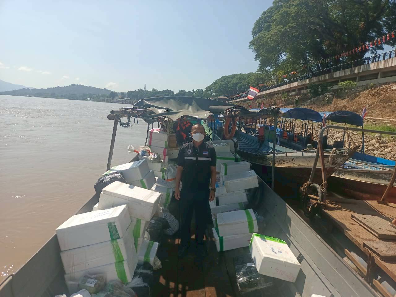 เจ้าหน้าที่ศูนย์บริหารจัดการด่านตรวจประมงเขต 1 (เชียงราย) ตรวจสอบสินค้าสัตว์น้ำส่งออกไปยังสาธารณรัฐประชาธิปไตยประชาชนลาว
