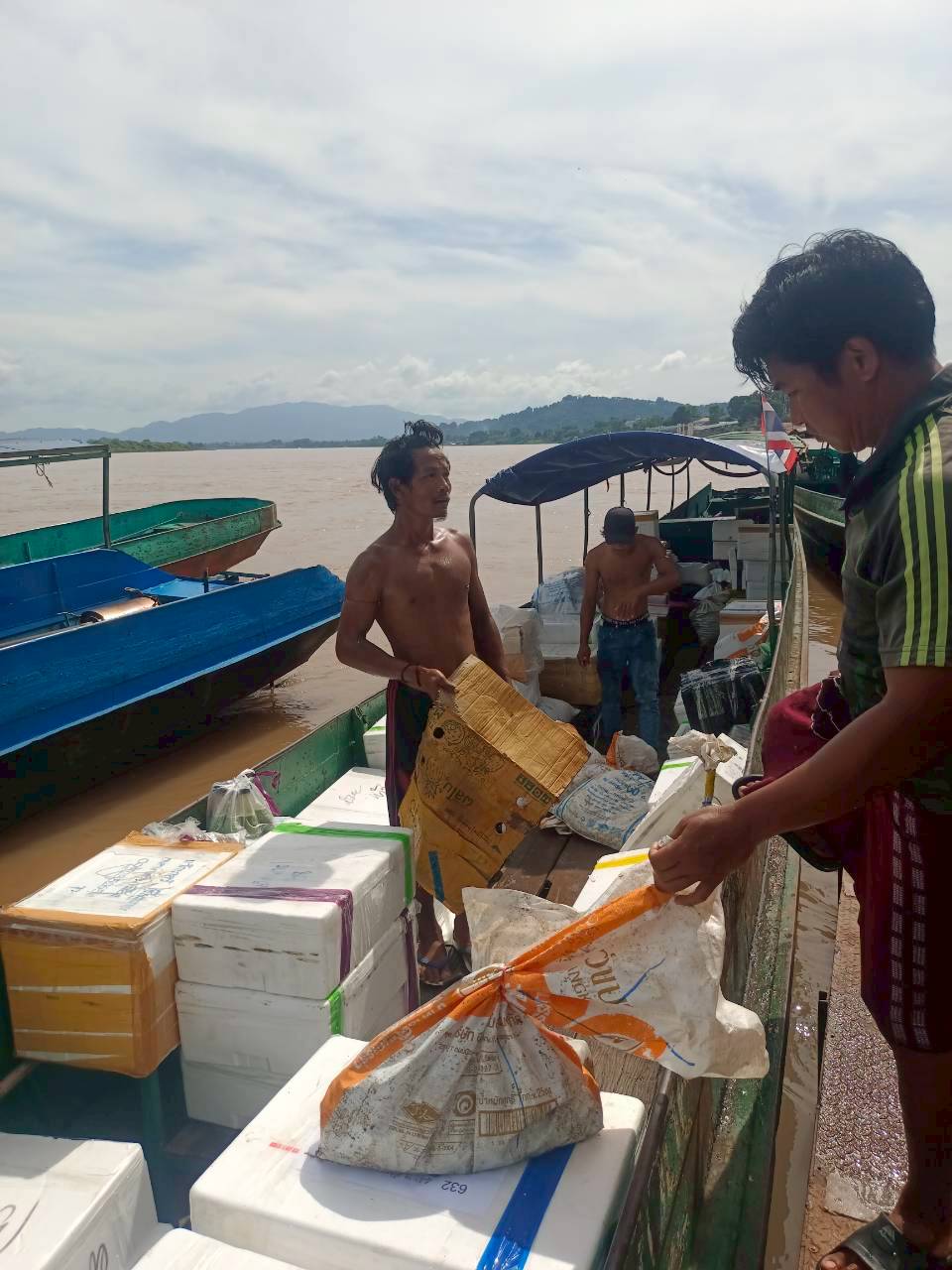 เจ้าหน้าที่ศูนย์บริหารจัดการด่านตรวจประมงเขต 1 (เชียงราย) ตรวจสอบสินค้าสัตว์น้ำส่งออกไปยังสาธารณรัฐประชาธิปไตยประชาชนลาว ผ่านทางด่านพรมแดนอำเภอเชียงแสน