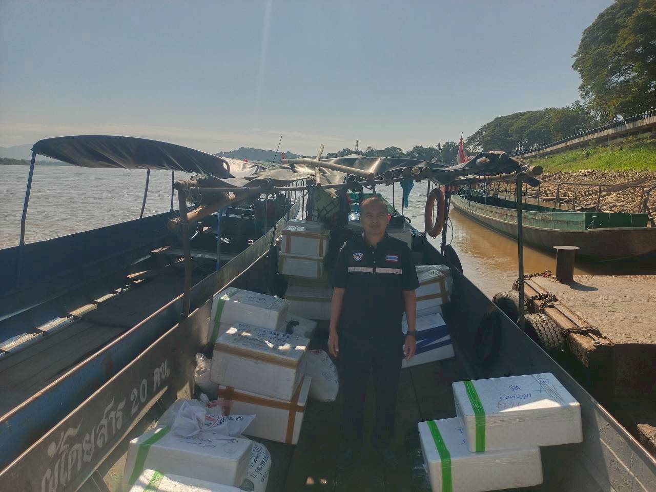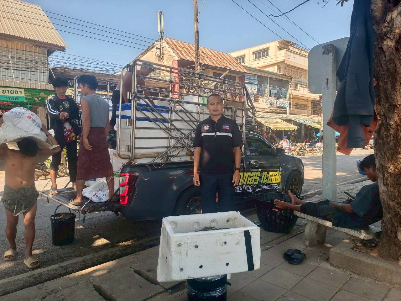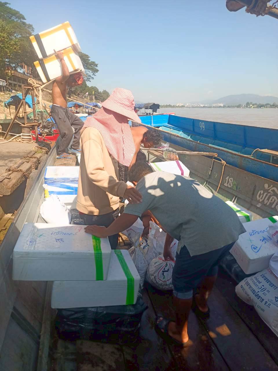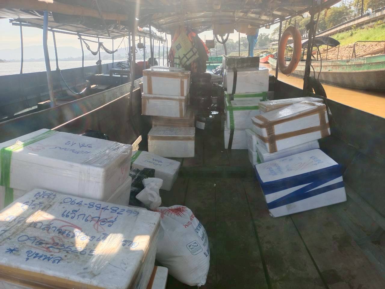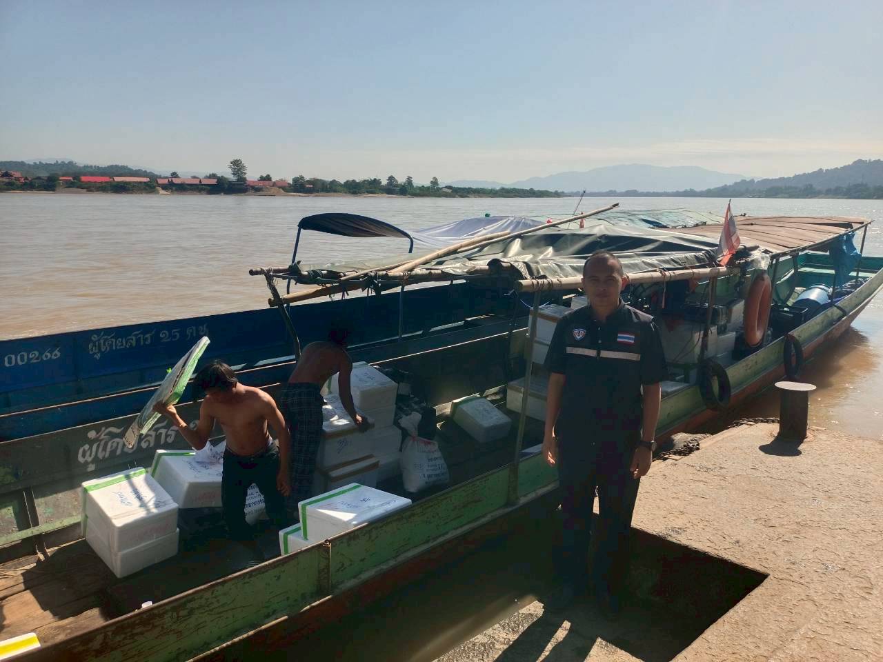 เจ้าหน้าที่ศูนย์บริหารจัดการด่านตรวจประมงเขต 1 (เชียงราย) ตรวจสอบสินค้าสัตว์น้ำส่งออกไปยังสาธารณรัฐประชาธิปไตยประชาชนลาว ผ่านทางด่านพรมแดนอำเภอเชียงแสน