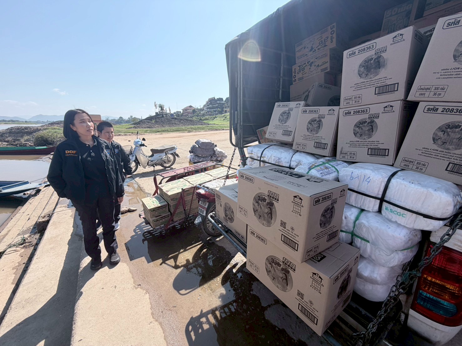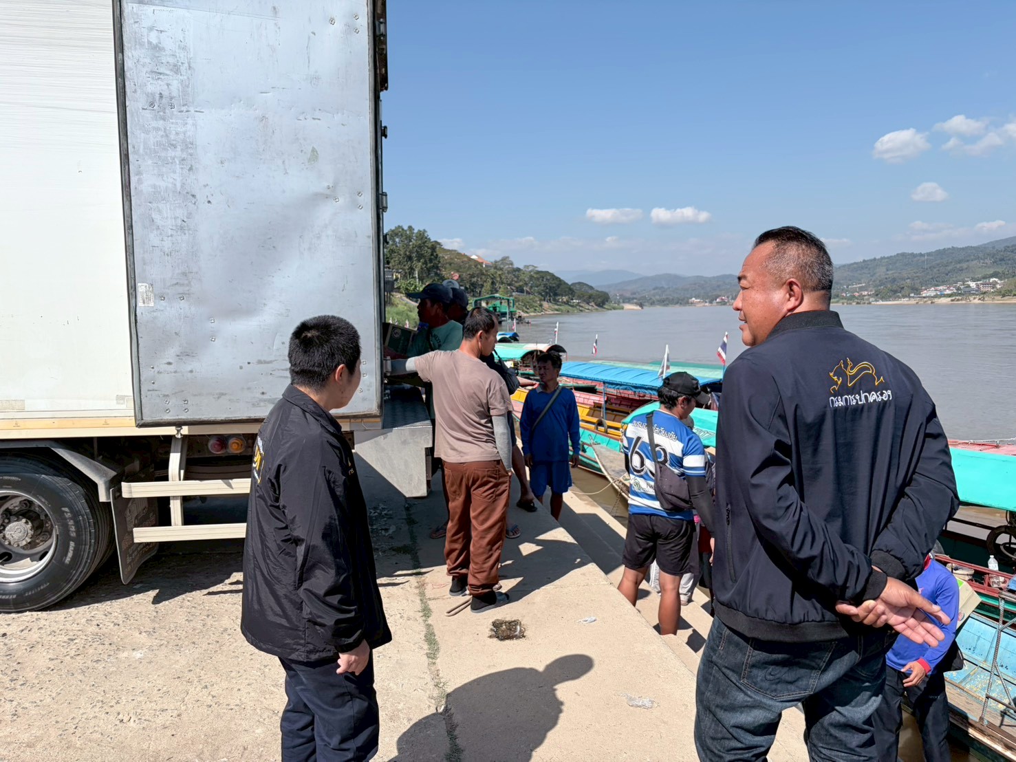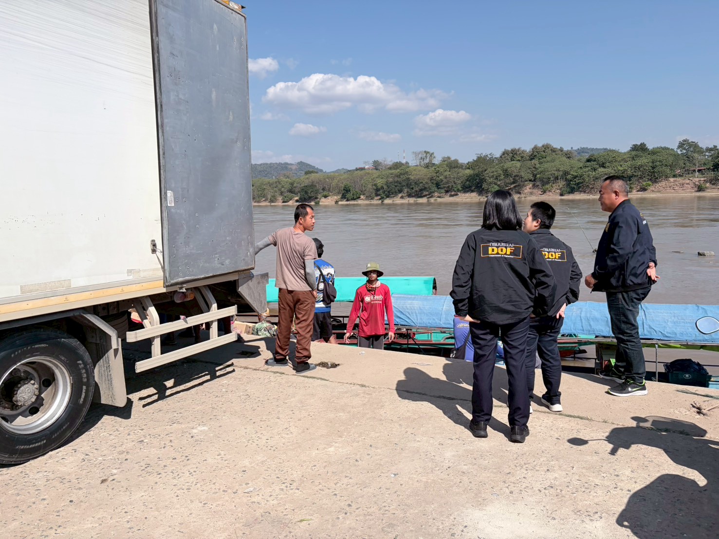 เจ้าหน้าที่ศูนย์บริหารจัดการด่านตรวจประมงเขต 1 (เชียงราย) ปฏิบัติงานตรวจป้องกันการลักลอบนำเข้า ส่งออกสินค้าสัตว์น้ำ บริเวณท่าเรือวัดหลวงไชยสถาน (ผาถ่าน) อำเภอเชียงของ จังหวัดเชียงราย