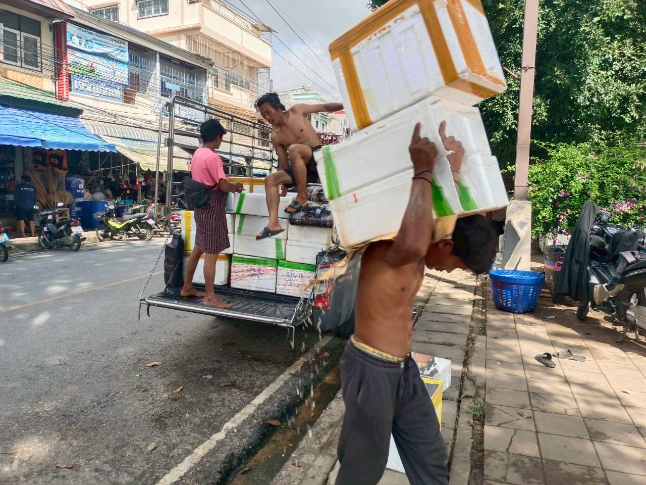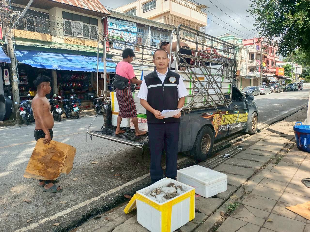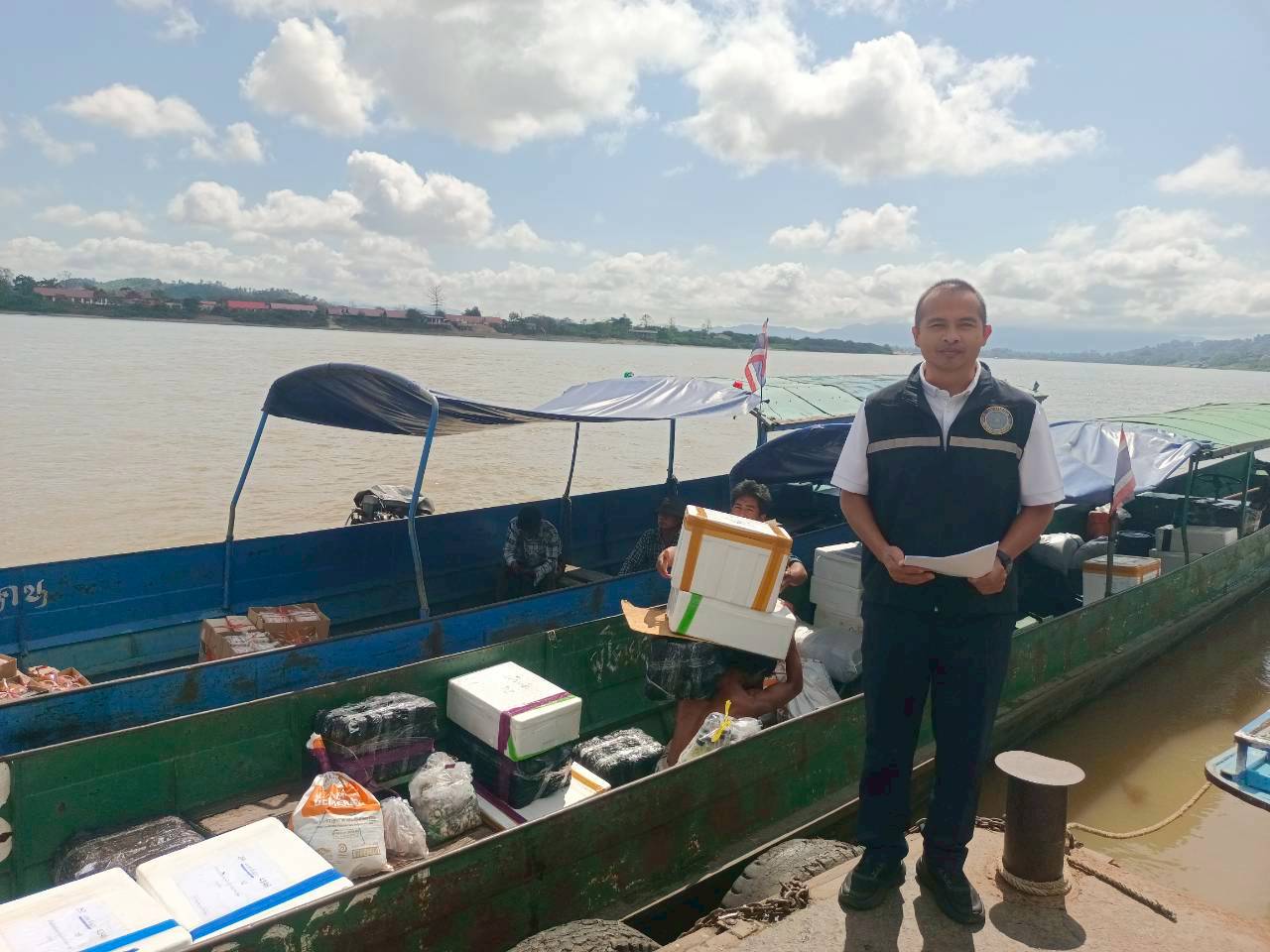 เจ้าหน้าที่ศูนย์บริหารจัดการด่านตรวจประมงเขต 1 (เชียงราย) ตรวจสอบสินค้าสัตว์น้ำส่งออกไปยังสาธารณรัฐประชาธิปไตยประชาชนลาว ผ่านทางด่านพรมแดนอำเภอเชียงแสน