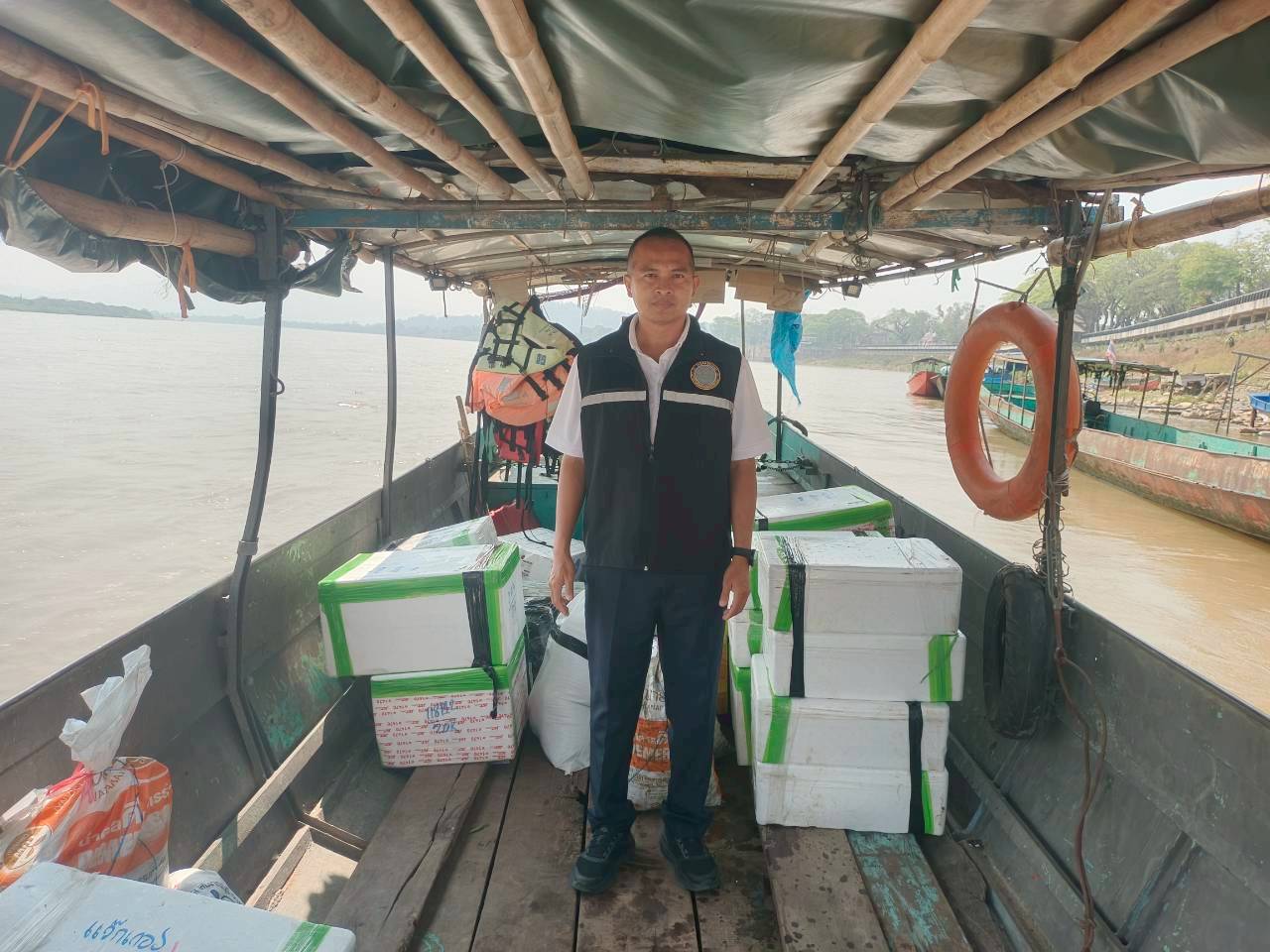 เจ้าหน้าที่ศูนย์บริหารจัดการด่านตรวจประมงเขต 1 (เชียงราย) ตรวจสอบสินค้าประมงส่งออกไปยังสาธารณรัฐประชาธิปไตยประชาชนลาว และสาธารณรัฐแห่งสหภาพเมียนมา
