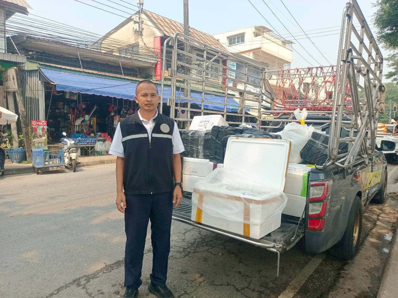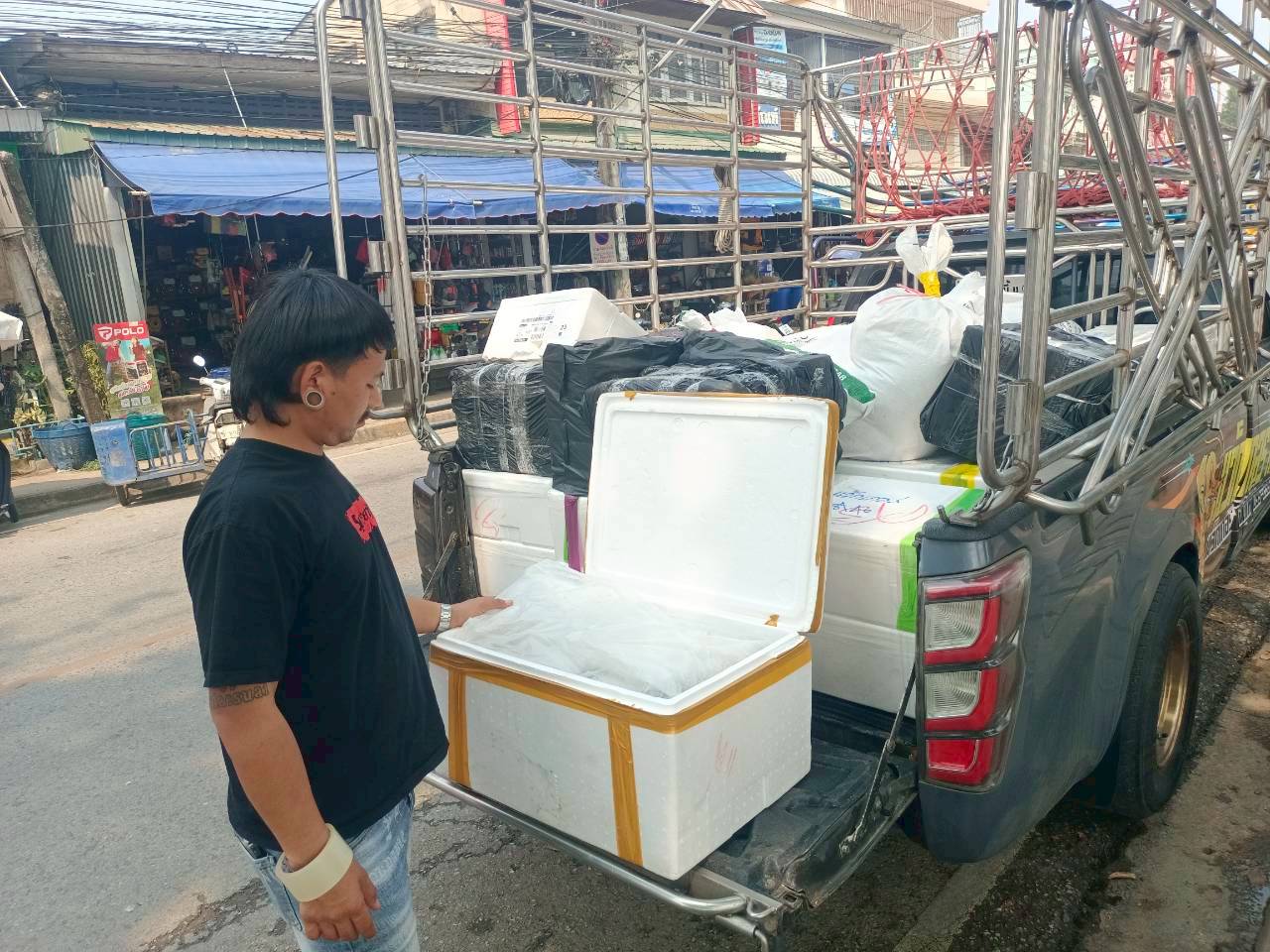 เจ้าหน้าที่ศูนย์บริหารจัดการด่านตรวจประมงเขต 1 (เชียงราย) ตรวจสอบสินค้าประมงส่งออกไปยังสาธารณรัฐประชาธิปไตยประชาชนลาว ทางด่านพรมแดนอำเภอเชียงแสน