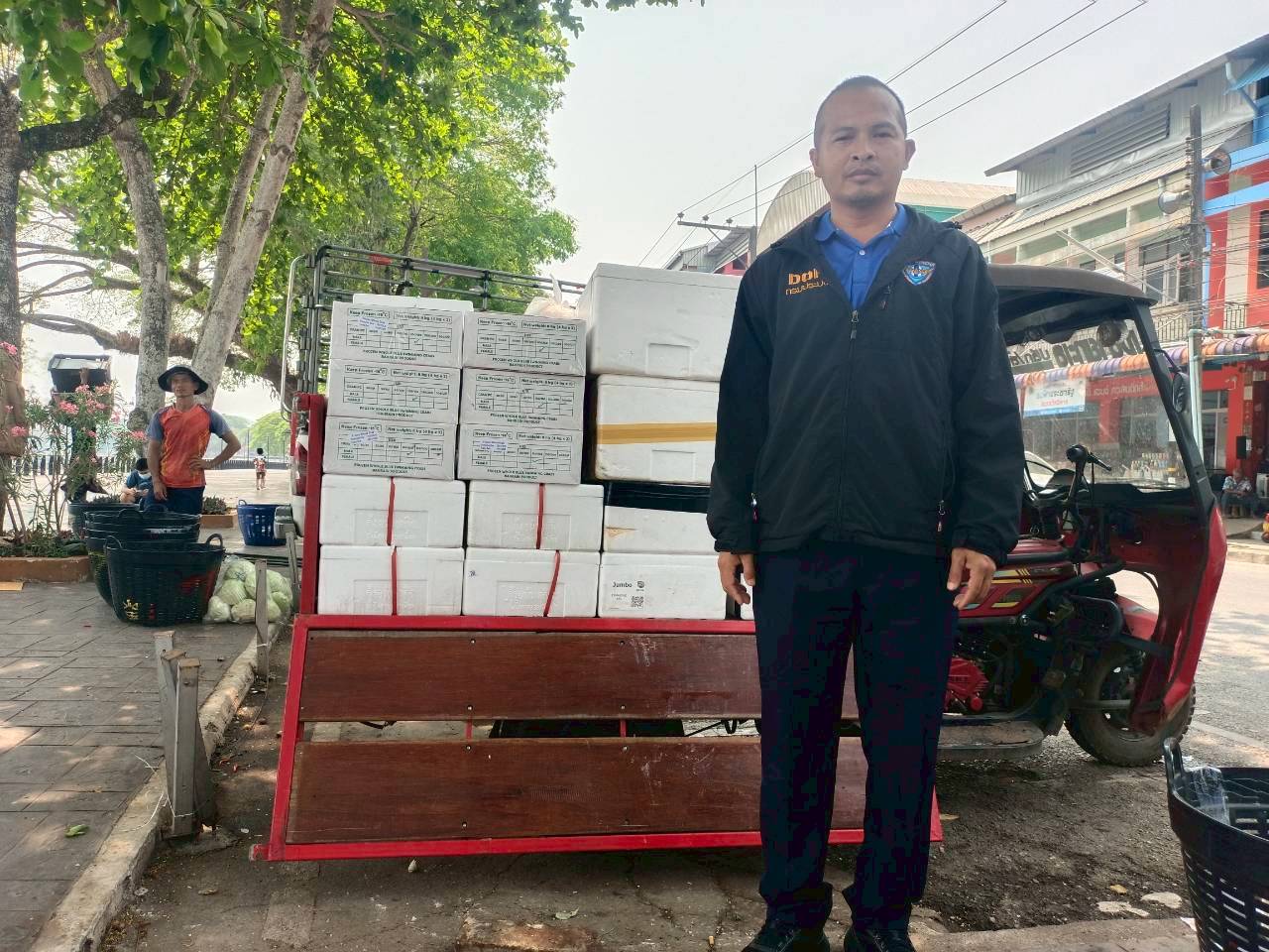 เจ้าหน้าที่ศูนย์บริหารจัดการด่านตรวจประมงเขต 1 (เชียงราย) ตรวจสอบสินค้าประมงส่งออกไปยังสาธารณรัฐประชาธิปไตยประชาชนลาว ผ่านทางด่านพรมแดนอำเภอเชียงแสน