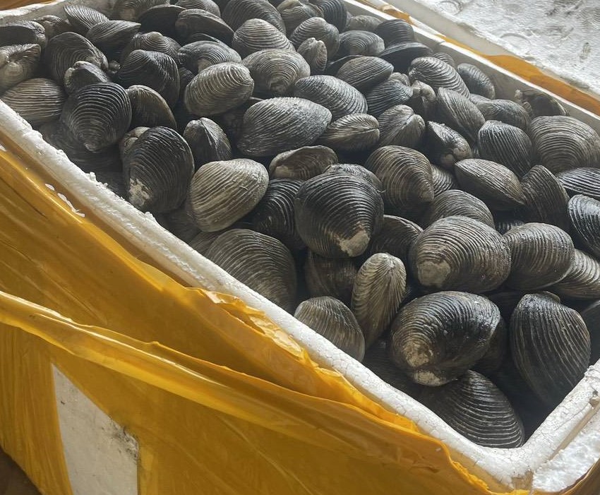 2.หอยตลับ มีชีวิต ปริมาณ 1,120 กิโลกรัม มูลค่าแจ้งส่งออก 39,200 บาท