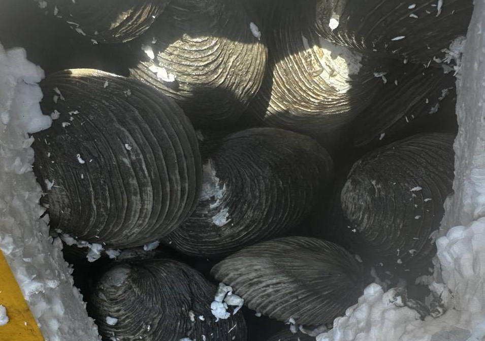 2.หอยตลับ มีชีวิต ปริมาณ 1,960 กิโลกรัม มูลค่าแจ้งส่งออก 68,600 บาท