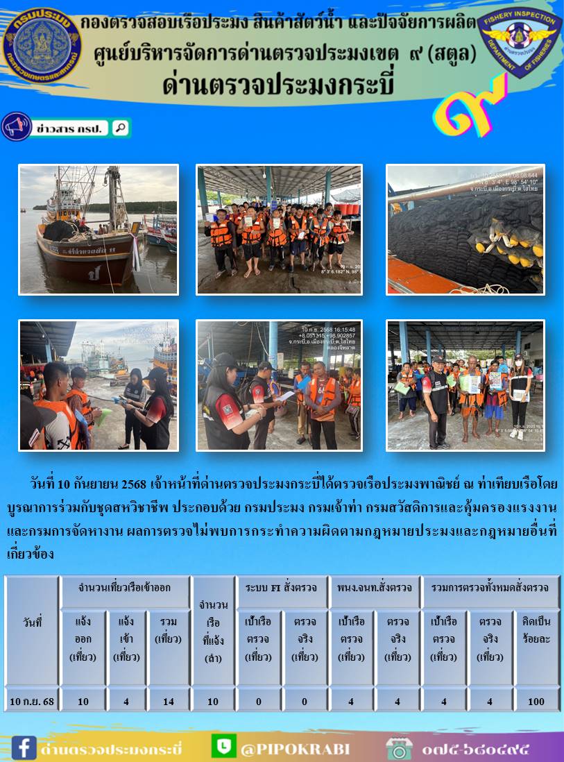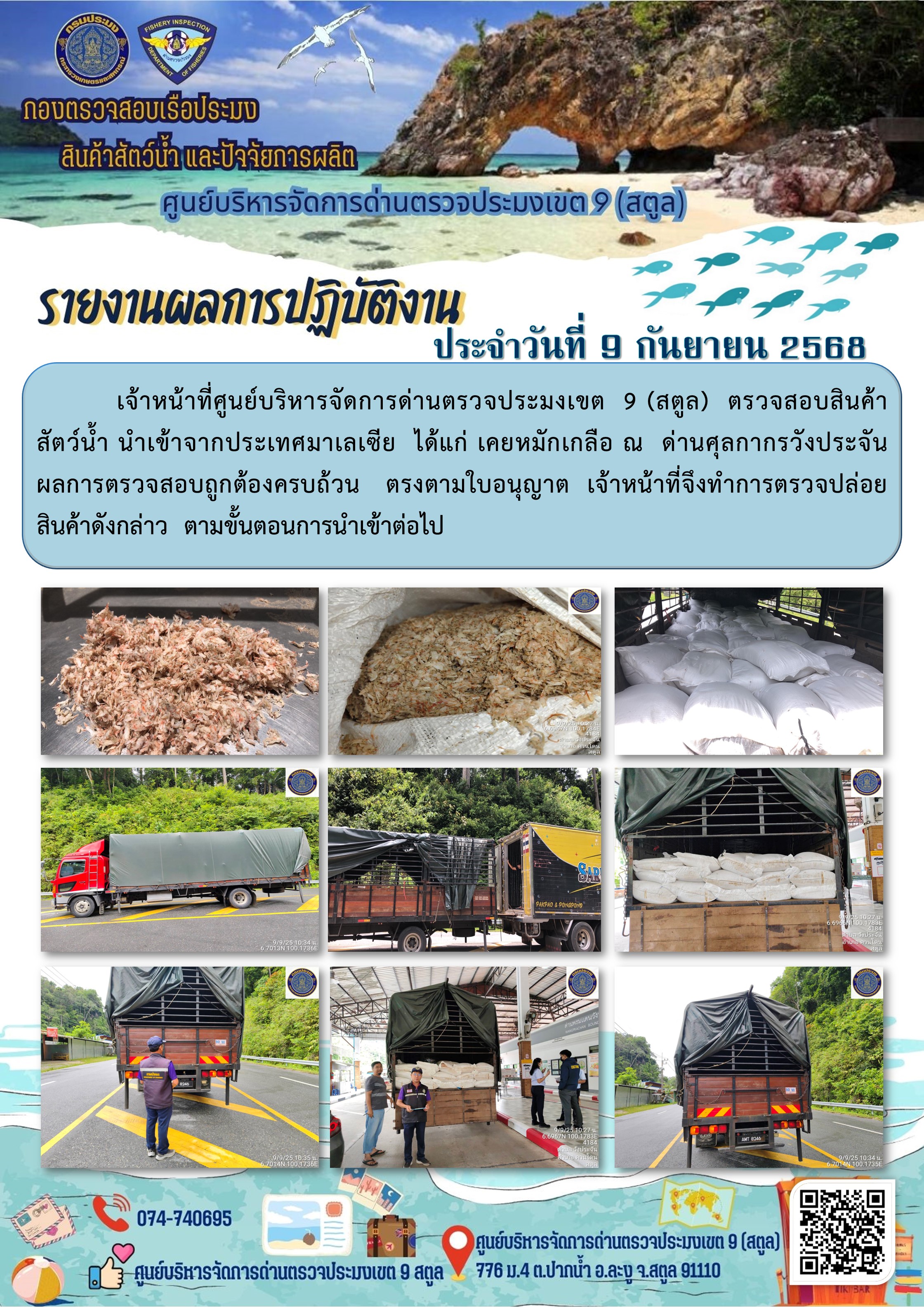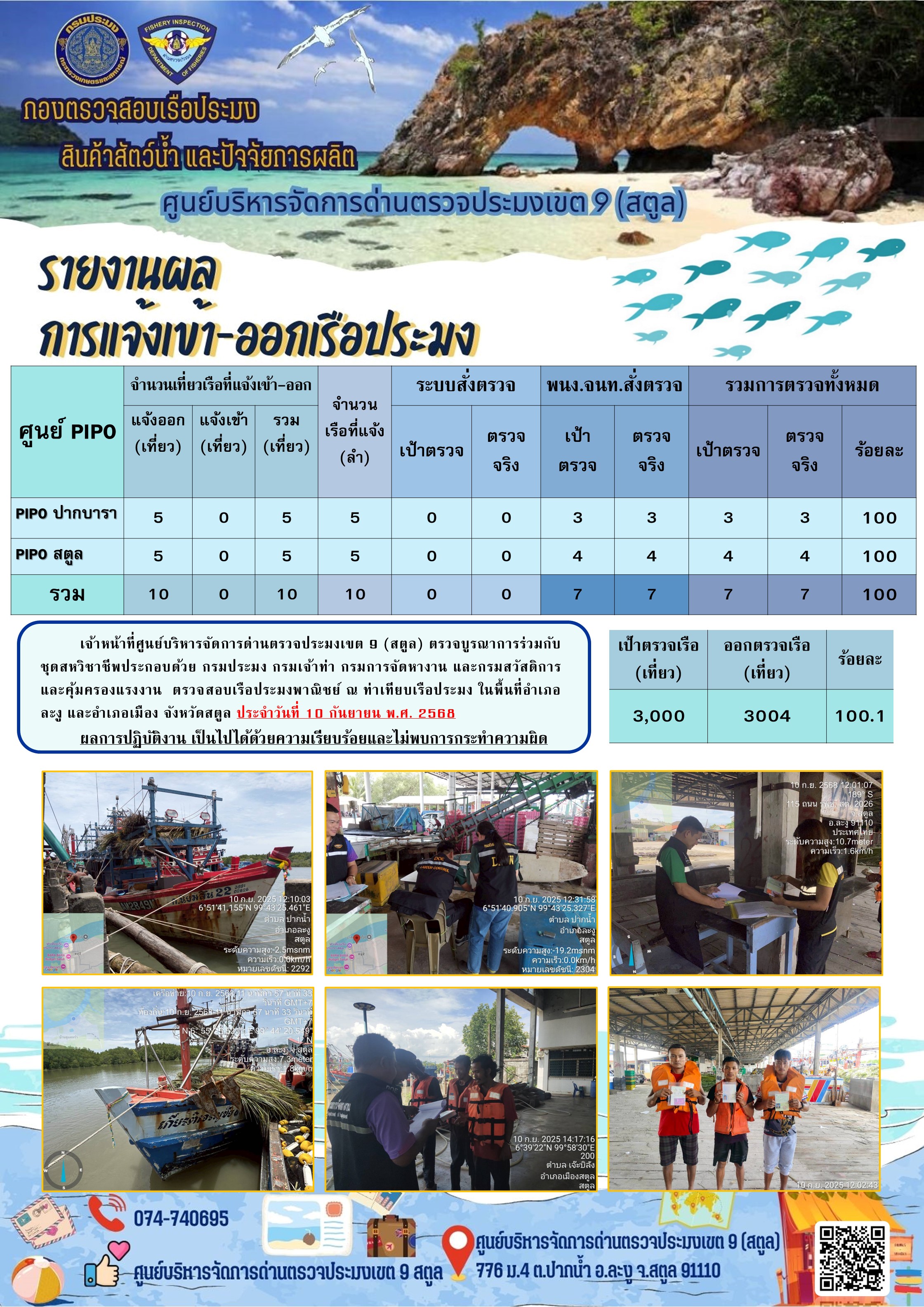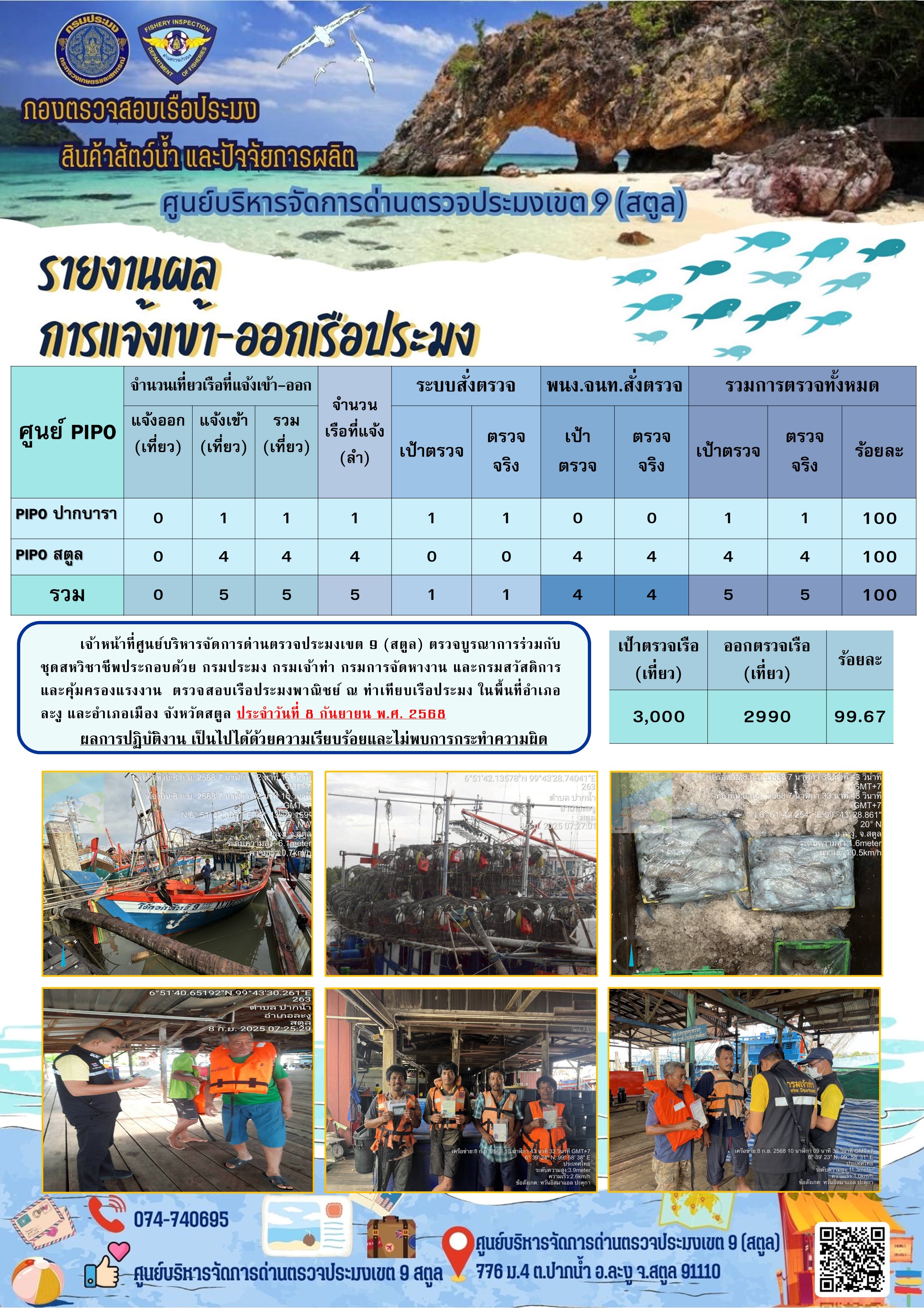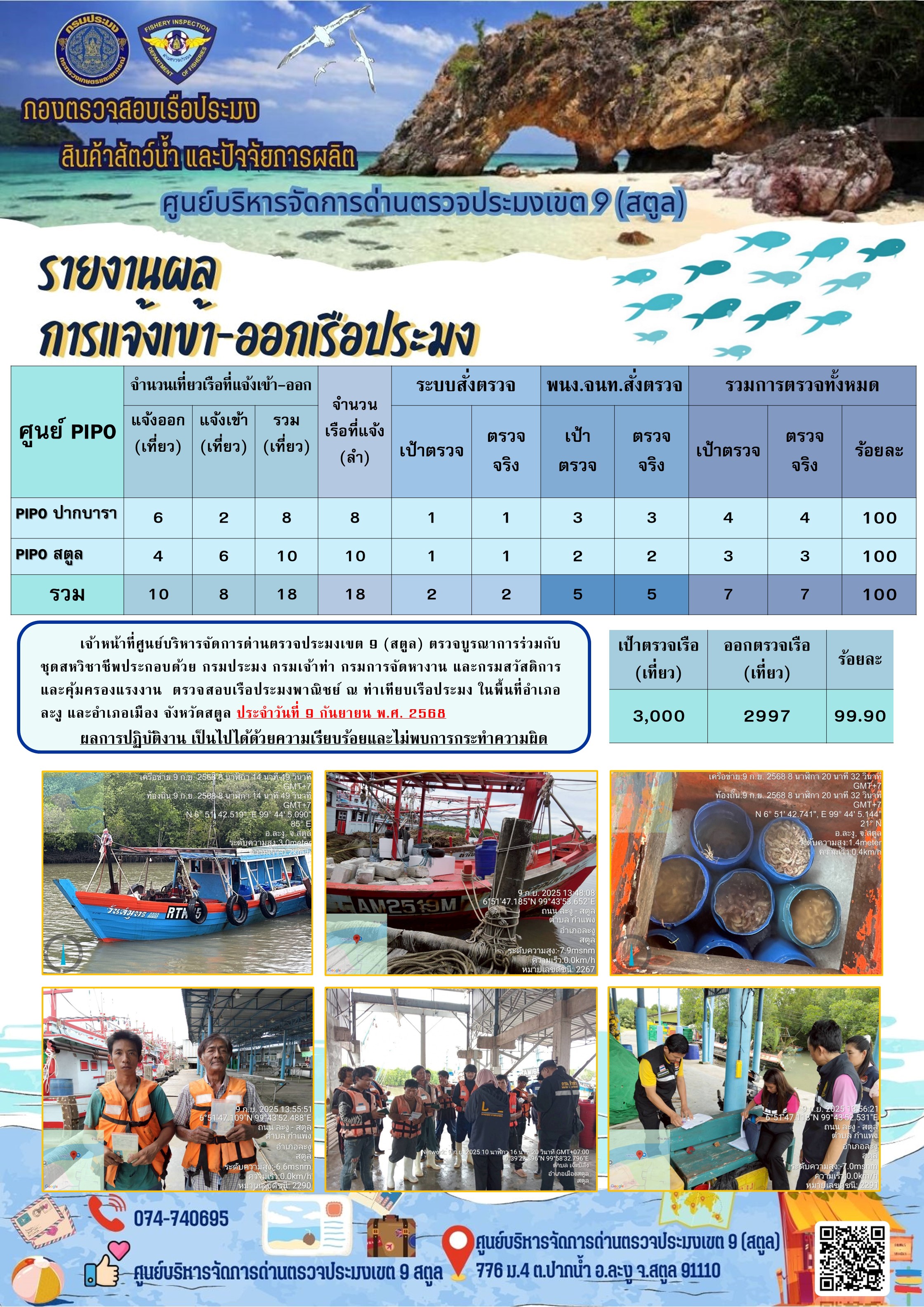 ประชาสัมพันธ์การปฏิบัติงานศูนย์บริหารจัดการด่านตรวจประมงเขต 9 (สตูล) ประจำวันที่ 6 - 10 กันยายน 2568