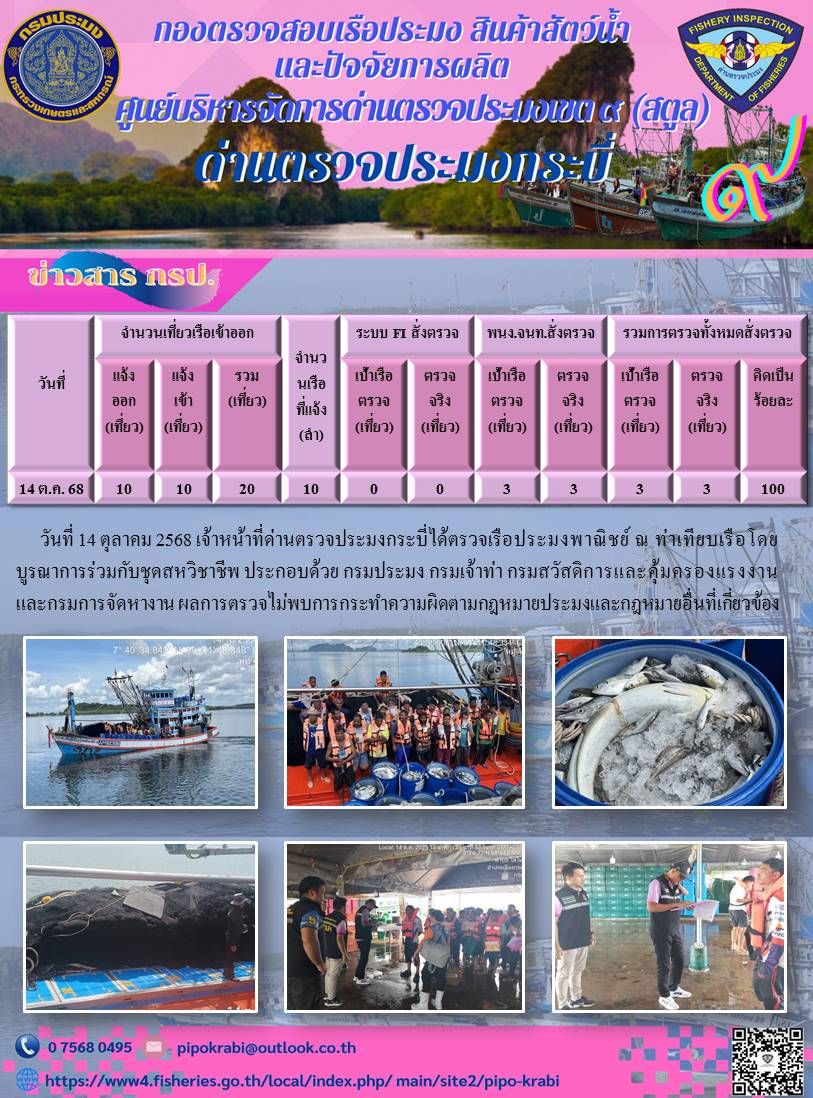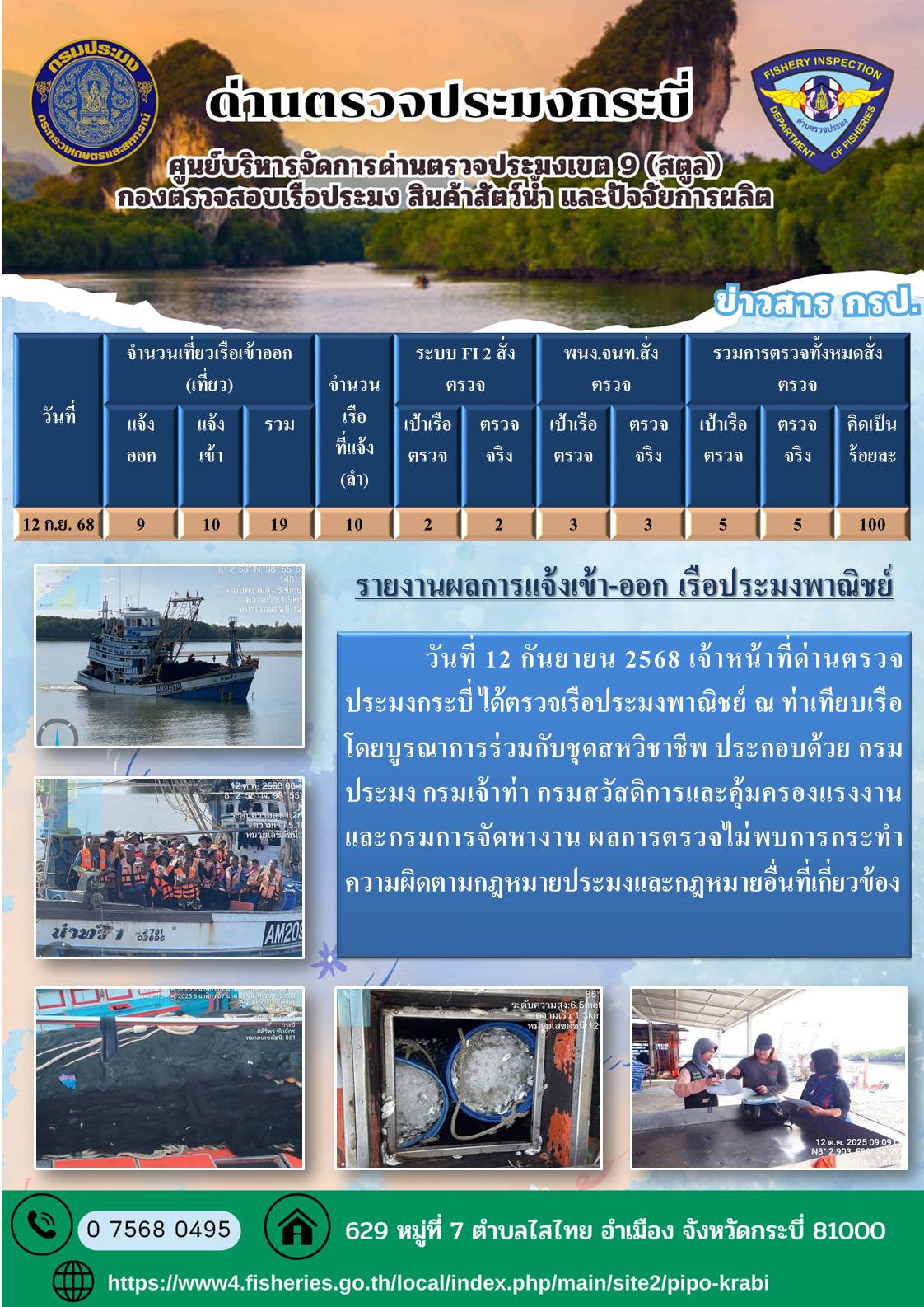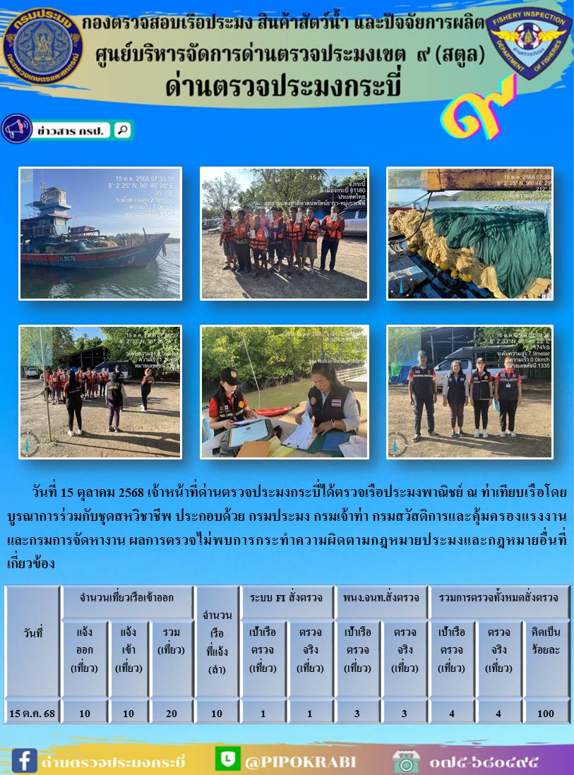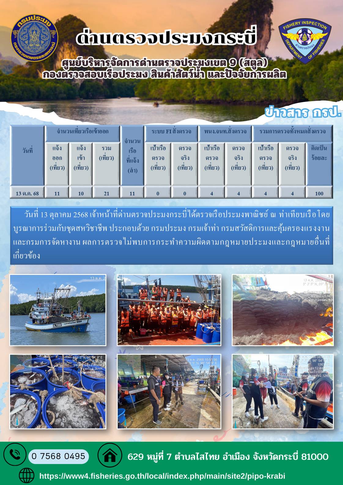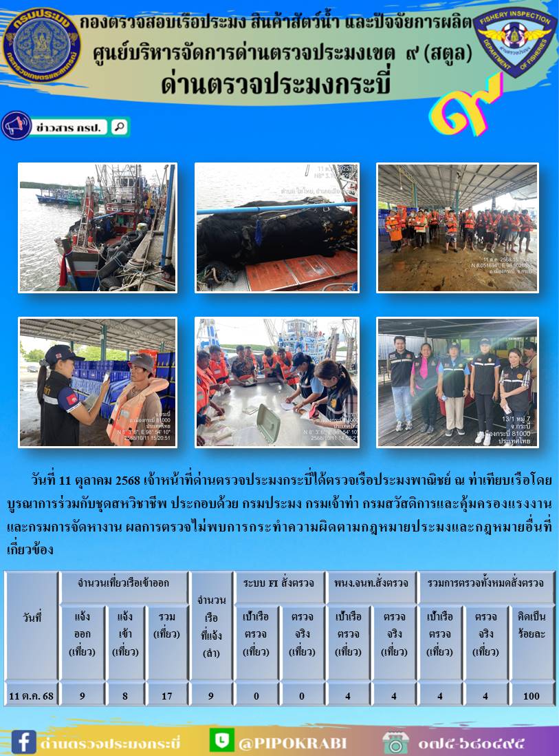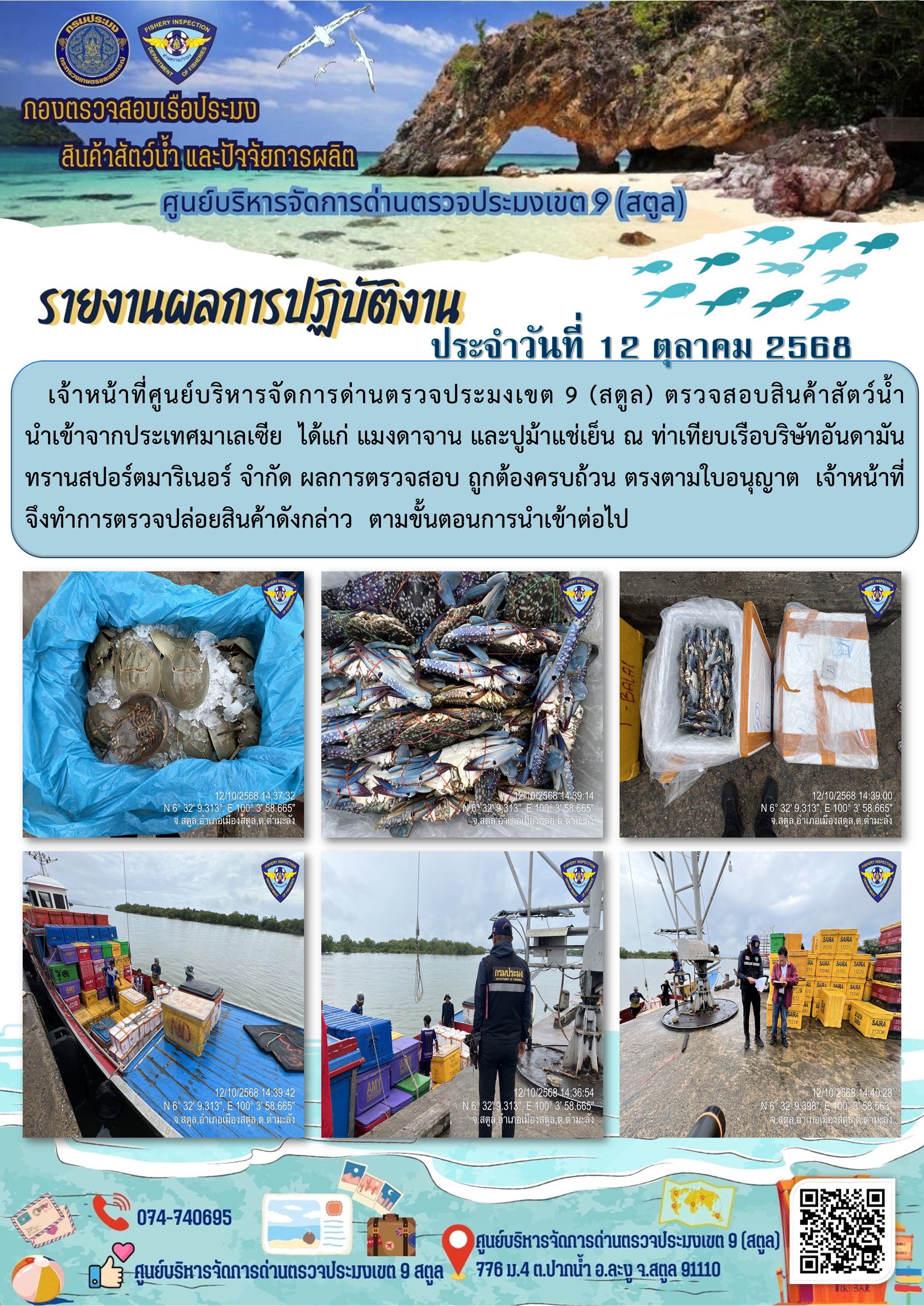 NEW ประชาสัมพันธ์การปฏิบัติงานศูนย์บริหารจัดการด่านตรวจประมงเขต 9 (สตูล) ประจำวันที่ 11 - 15 ตุลาคม 2568..คลิก