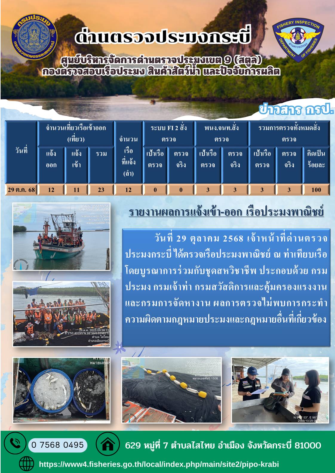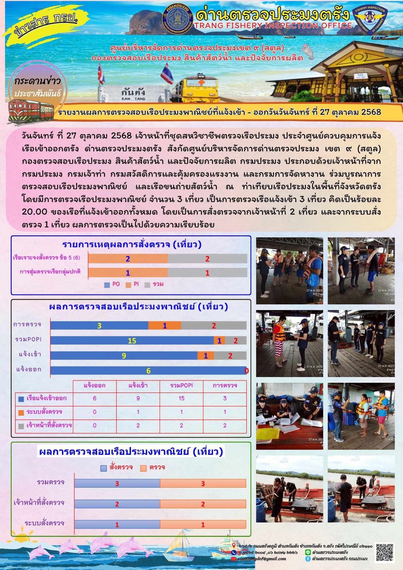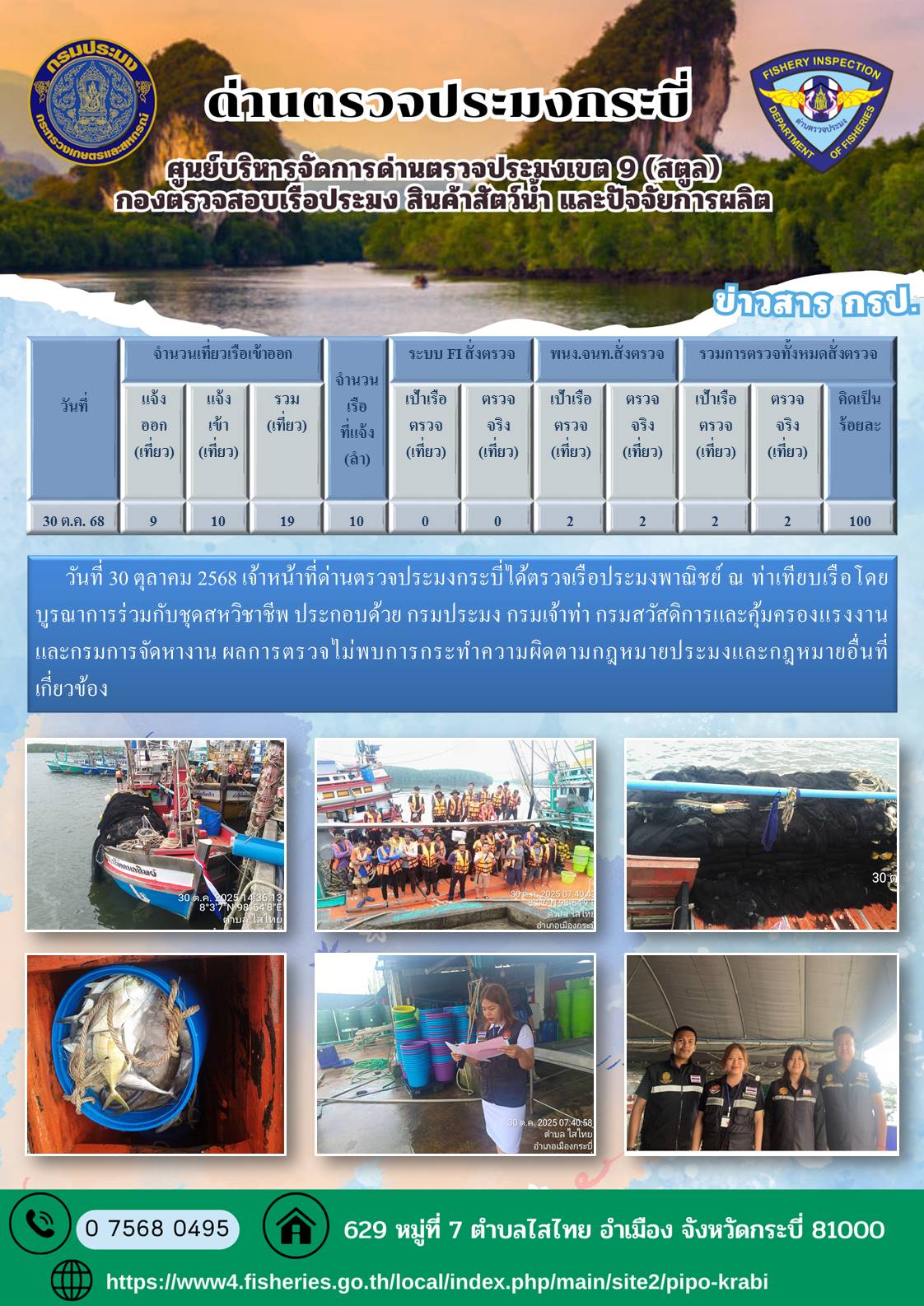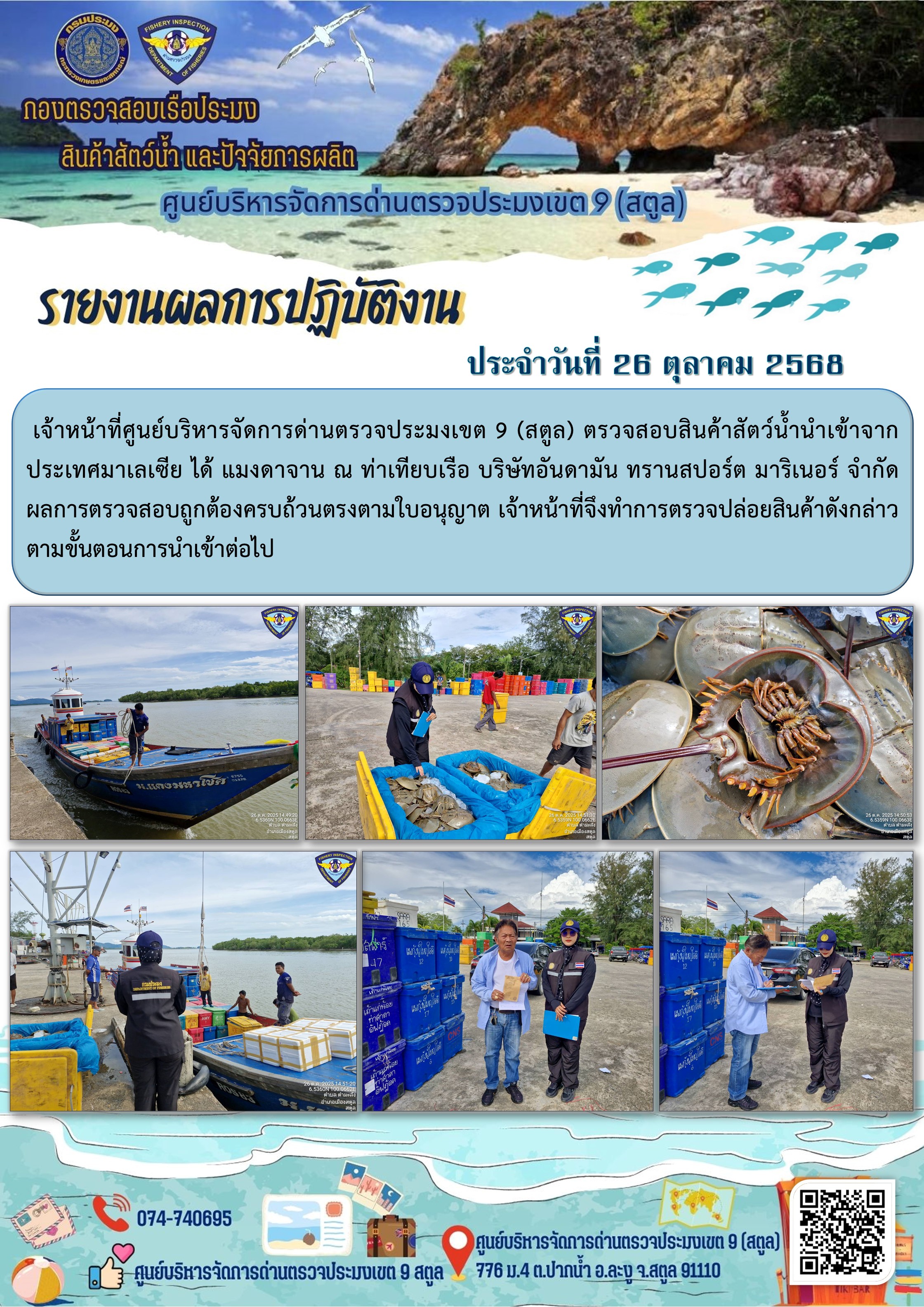 NEW ประชาสัมพันธ์การปฏิบัติงานศูนย์บริหารจัดการด่านตรวจประมงเขต 9 (สตูล) ประจำวันที่ 26 - 31 ตุลาคม 2568..คลิก