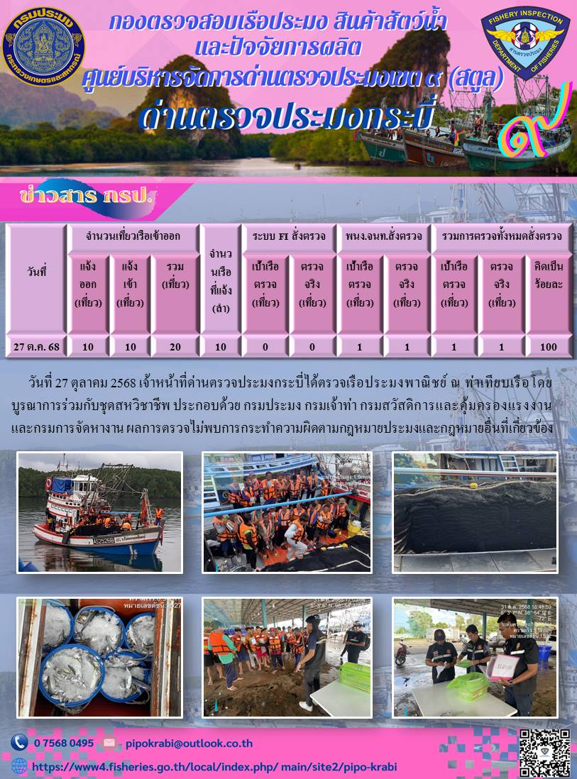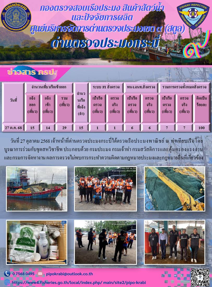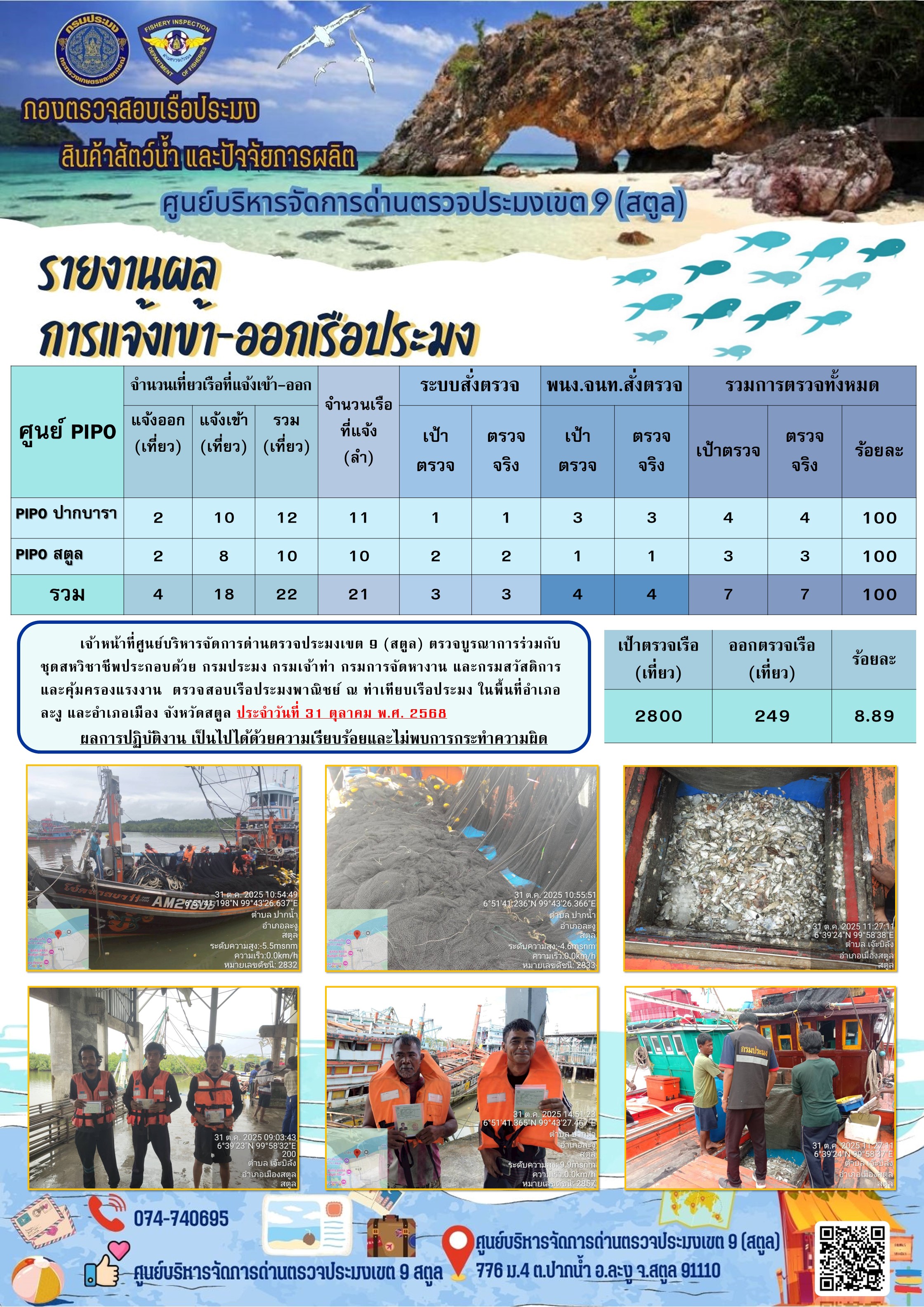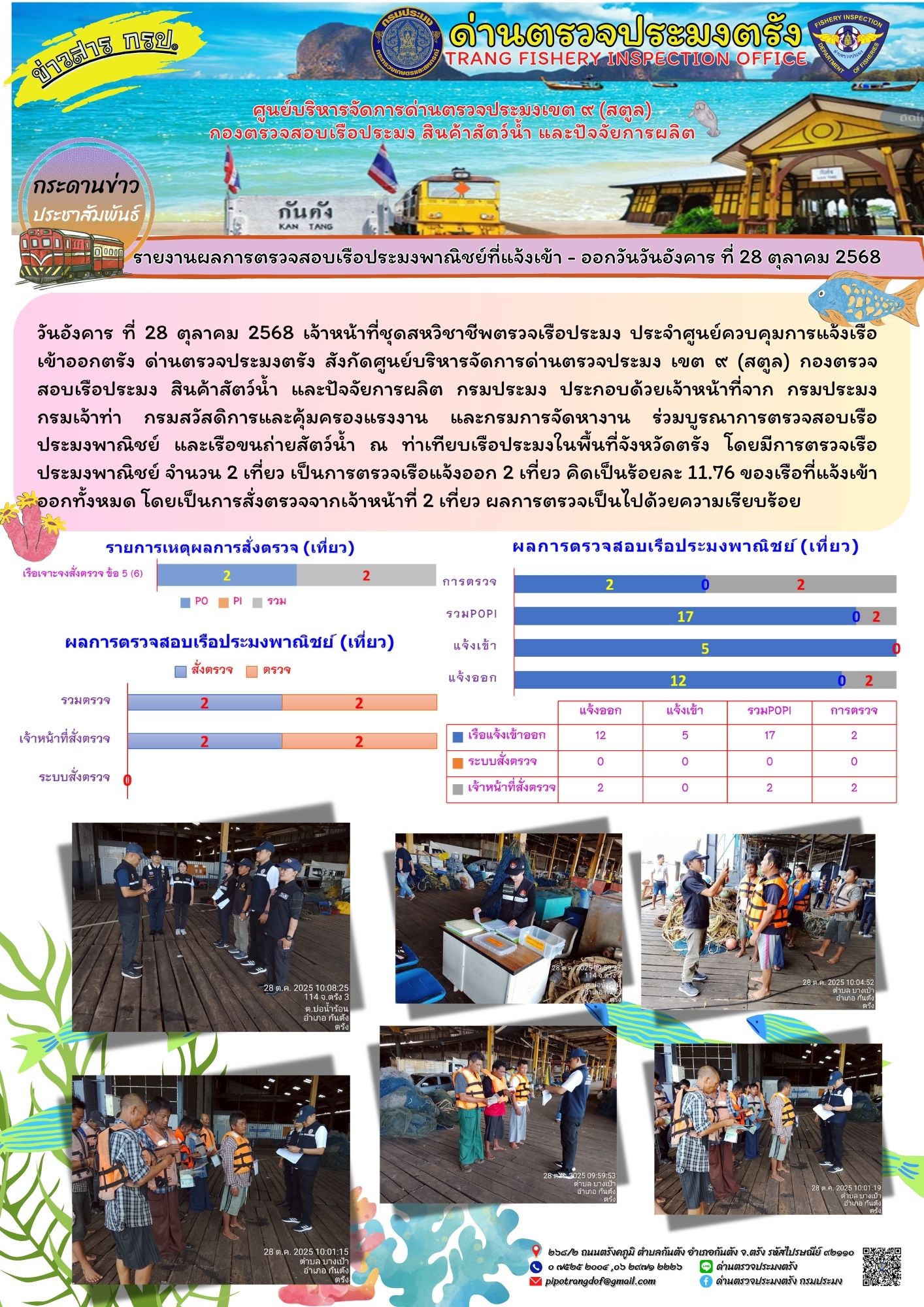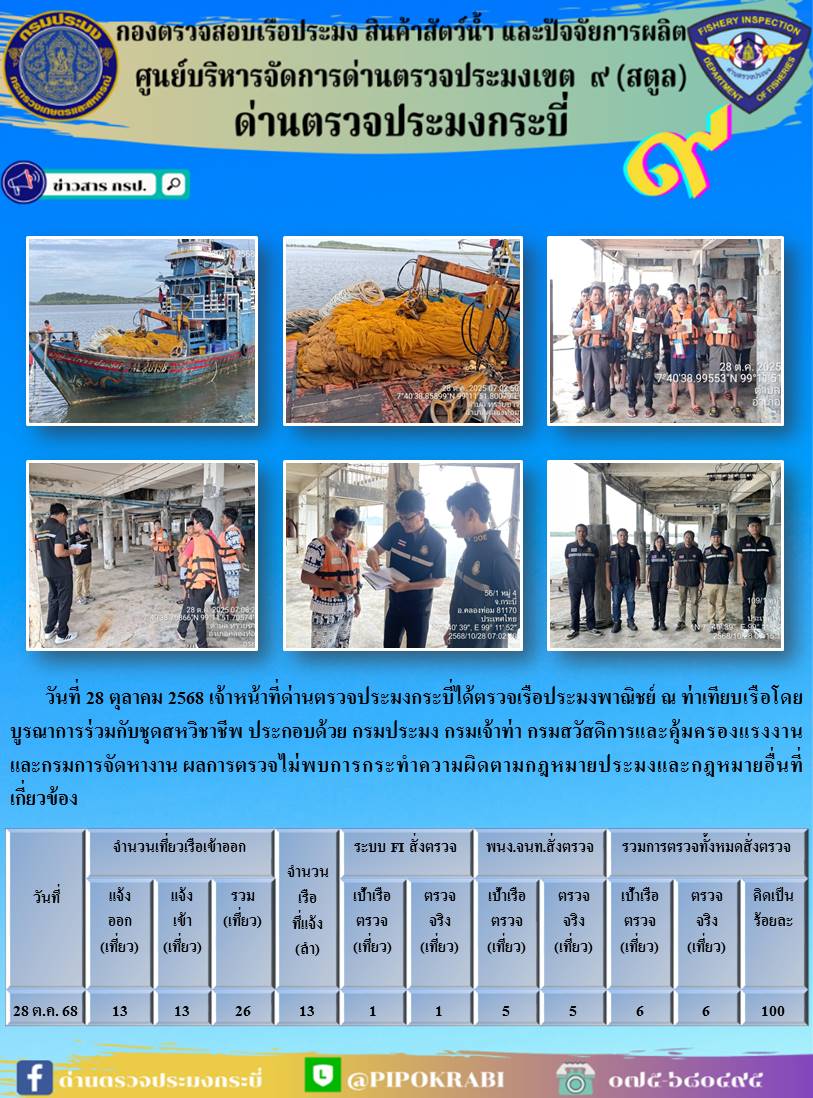 NEW ประชาสัมพันธ์การปฏิบัติงานศูนย์บริหารจัดการด่านตรวจประมงเขต 9 (สตูล) ประจำวันที่ 26 - 31 ตุลาคม 2568..คลิก
