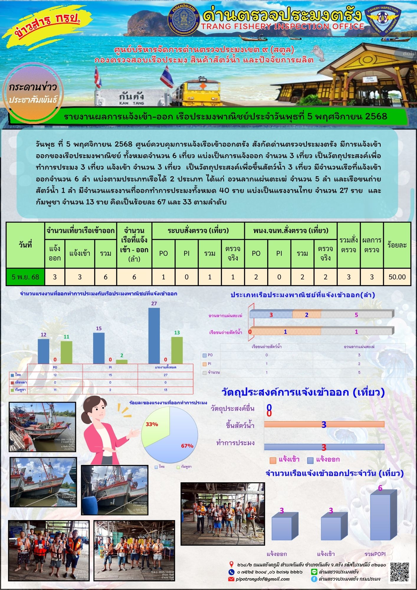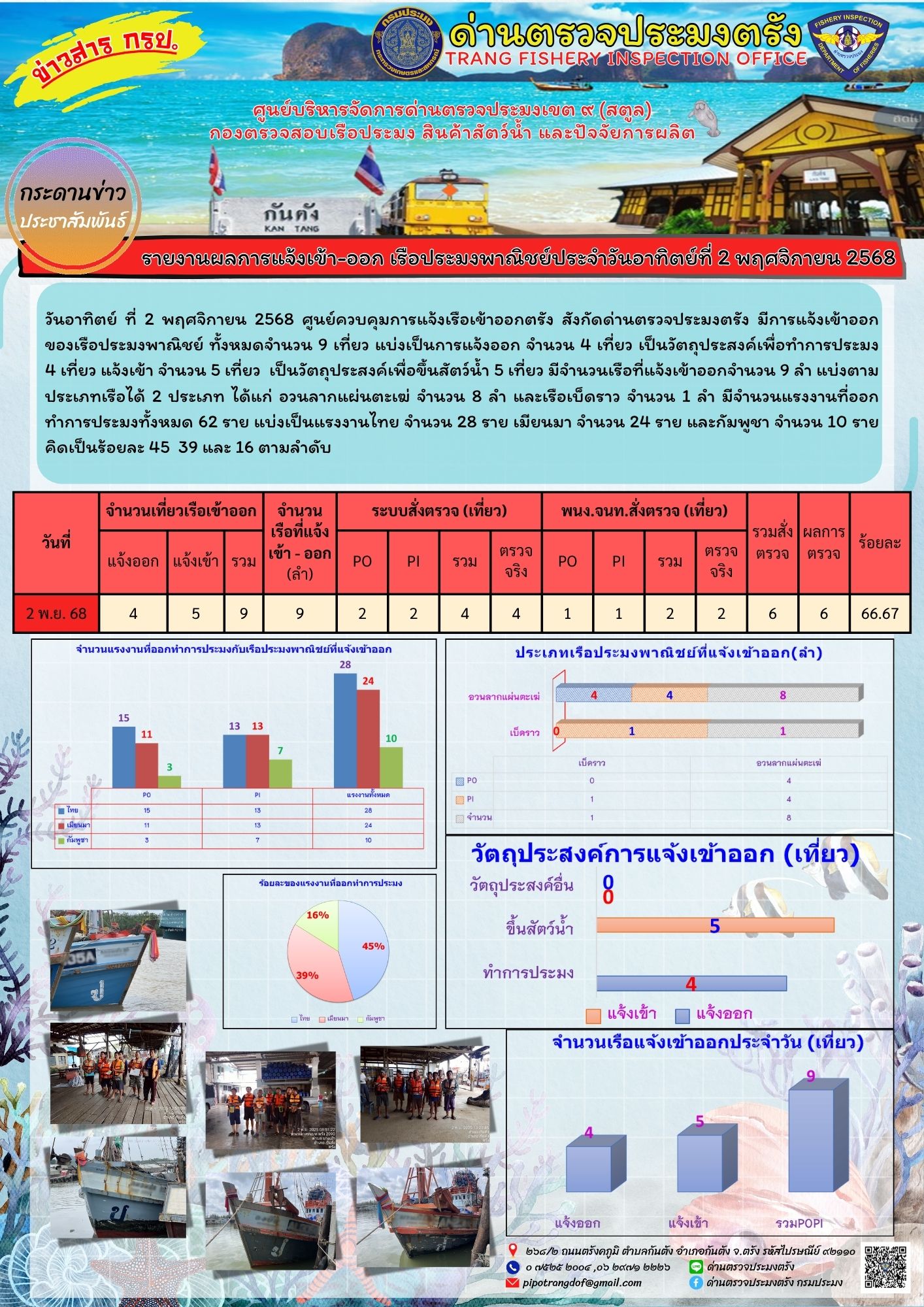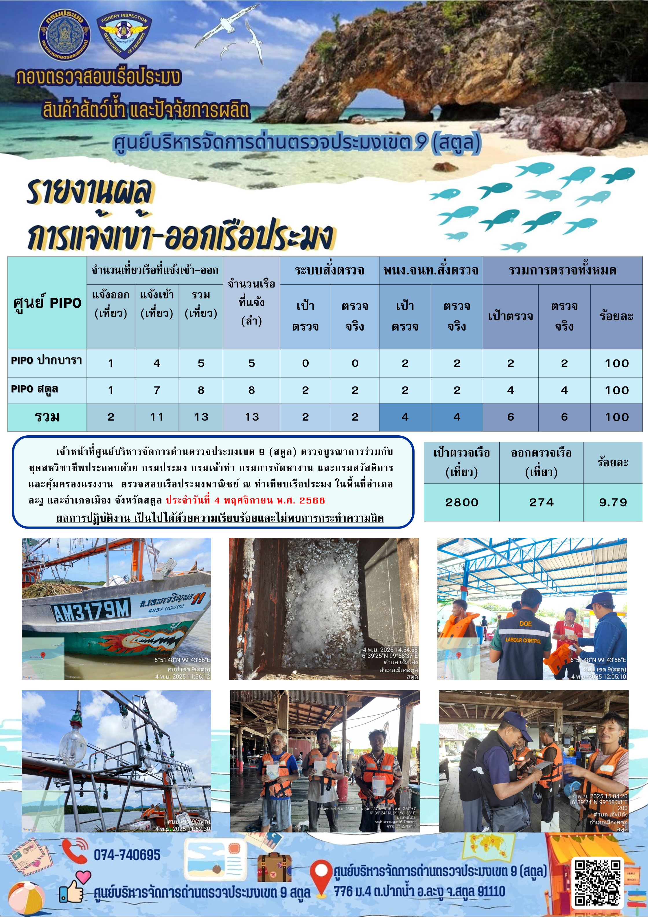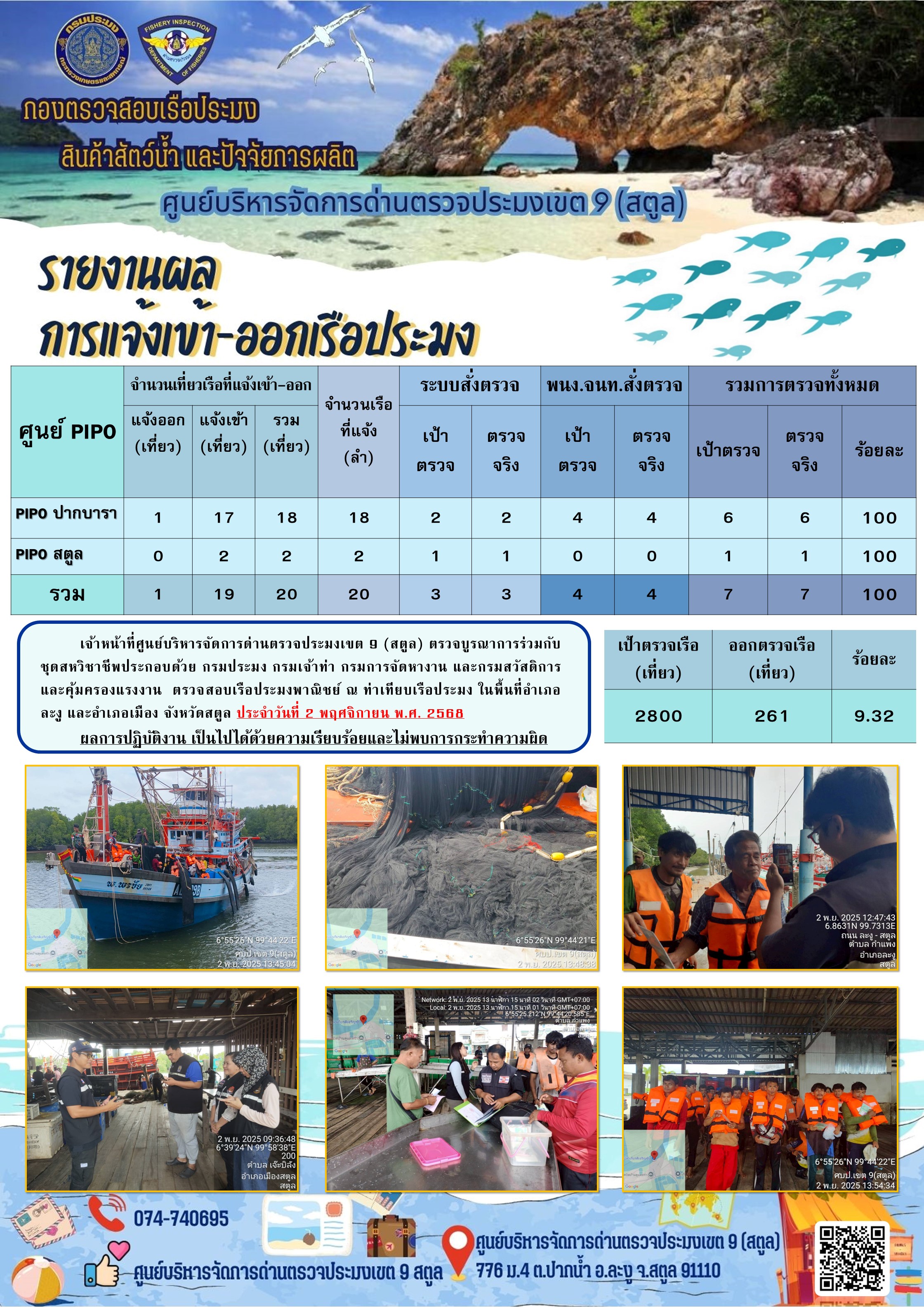 NEW ประชาสัมพันธ์การปฏิบัติงานศูนย์บริหารจัดการด่านตรวจประมงเขต 9 (สตูล) ประจำวันที่ 1-5 พฤศจิกายน 2568..คลิก