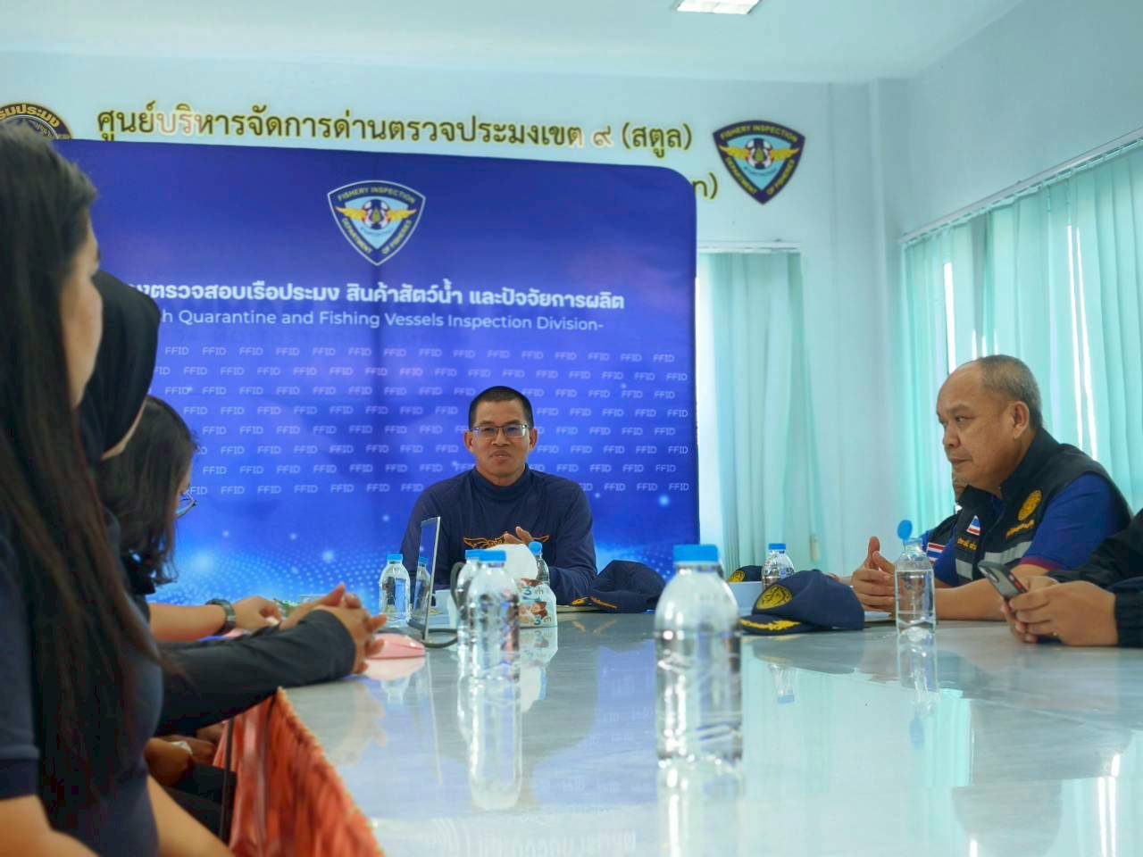 ผู้อำนวยการศูนย์บริหารจัดการด่านตรวจประมงเขต 9 (สตูล) นายประพัตร์ แก้วมณี ผู้อำนวยการศูนย์วิจัยและพัฒนาประมงทะเลสตูล นางณิชารินทร์ แก้วฤทธิ์ ผู้อำนวยการศูนย์วิจัยและพัฒนาประมงน้ำจืดสตูล และเจ้าหน้าที่ศูนย์บริหารจัดการด่านตรวจประมงเขต 9 (สตูล) ให้การต้อนรับ