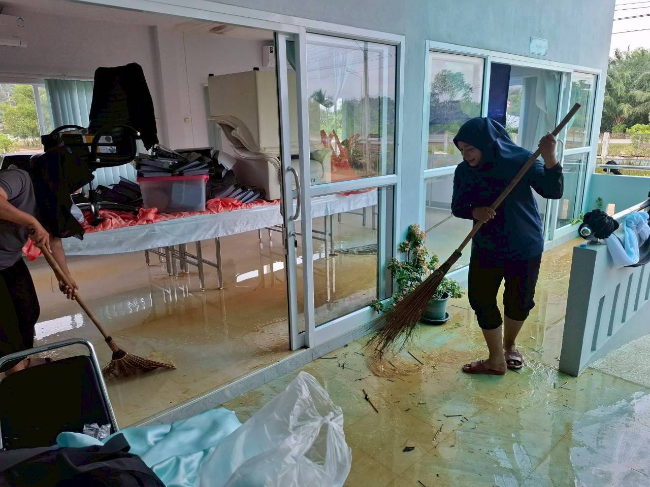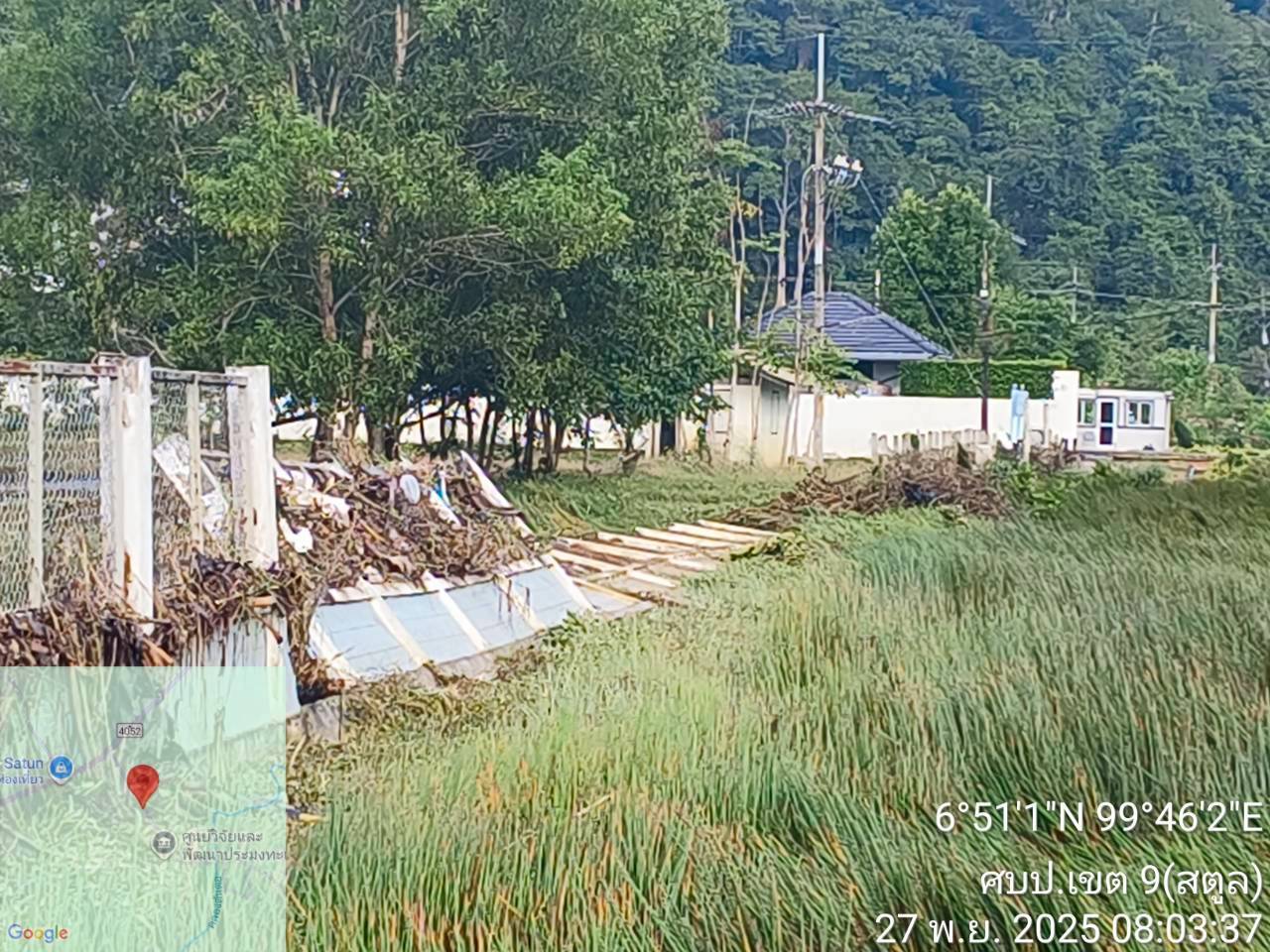 ซึ่งจากการตรวจสอบและลงพื้นที่สำรวจความเสียหาย พบว่าศูนย์บริหารจัดการด่านตรวจประมงเขต 9 (สตูล) ได้รับความเสียหายในส่วนของ รั้วสำนักงานที่ถูกกระแสน้ำพัดจนพังทลายและมวลน้ำที่เอ่อล้นเข้าท่วมภายในอาคารสำนักงานและบ้านพักเจ้าหน้าที่ และหลังสถานการณ์น้ำลดลง นายธีระชัย ทิพย์ดวง ผอ.ศบป.เขต 9 (สตูล) ได้นำทีมเจ้าหน้าที่ภายในศูนย์ฯ เร่งทำความสะอาดอาคารและสถานที่ทันที