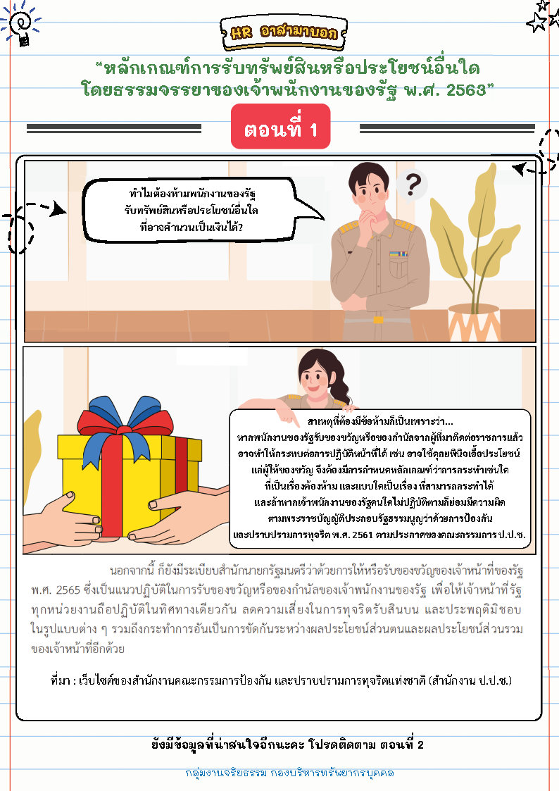 NEW จริยธรรม และ หลักเกณฑ์การรับทรัพย์สินหรือประโยชน์อื่นใด โดยธรรมจรรยาของเจ้าพนักงานของรัฐ พ.ศ. 2563..คลิก