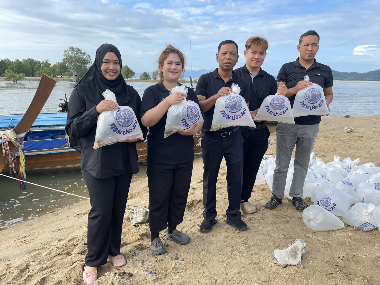วันที่ 19 ธันวาคม 2568 นายธีระชัย ทิพย์ดวง ผู้อำนวยการศูนย์บริหารจัดการด่านตรวจประมงเขต 9 (สตูล) เข้าร่วมกิจกรรมปล่อยพันธุ์สัตว์น้ำภายใต้กิจกรรมบริหารจัดการทรัพยากรประมง (เพิ่มผลผลิตสัตว์น้ำ) จำนวน 2 ชนิด คือ กุ้งแชบ๊วย จำนวน 500,000 ตัว พ่อแม่พันธุ์ปูไข่นอกกระดอง จำนวน 11 ตัว และลูกปูระยะแรกฟัก จำนวน 3,500,000 ตัว เพื่อเพิ่มจำนวนสัตว์น้ำในแหล่งน้ำธรรมชาติ และส่งเสริมการมีส่วนร่วมของประชาชนในการอนุรักษ์ทรัพยากรธรรมชาติ พร้อมเจ้าหน้าที่ศูนย์วิจัยและพัฒนาประมงทะเลสตูลและเจ้าหน้าที่ภายในจังหวัดสตูล องค์การบริหารส่วนตำบลละงู ชาวบ้าน และนักเรียนโรงเรียนท่าชะมวง เข้าร่วมกิจกรรม ณ บ้านหัวหิน ตำบลละงู อำเภอละงู จังหวัดสตูล