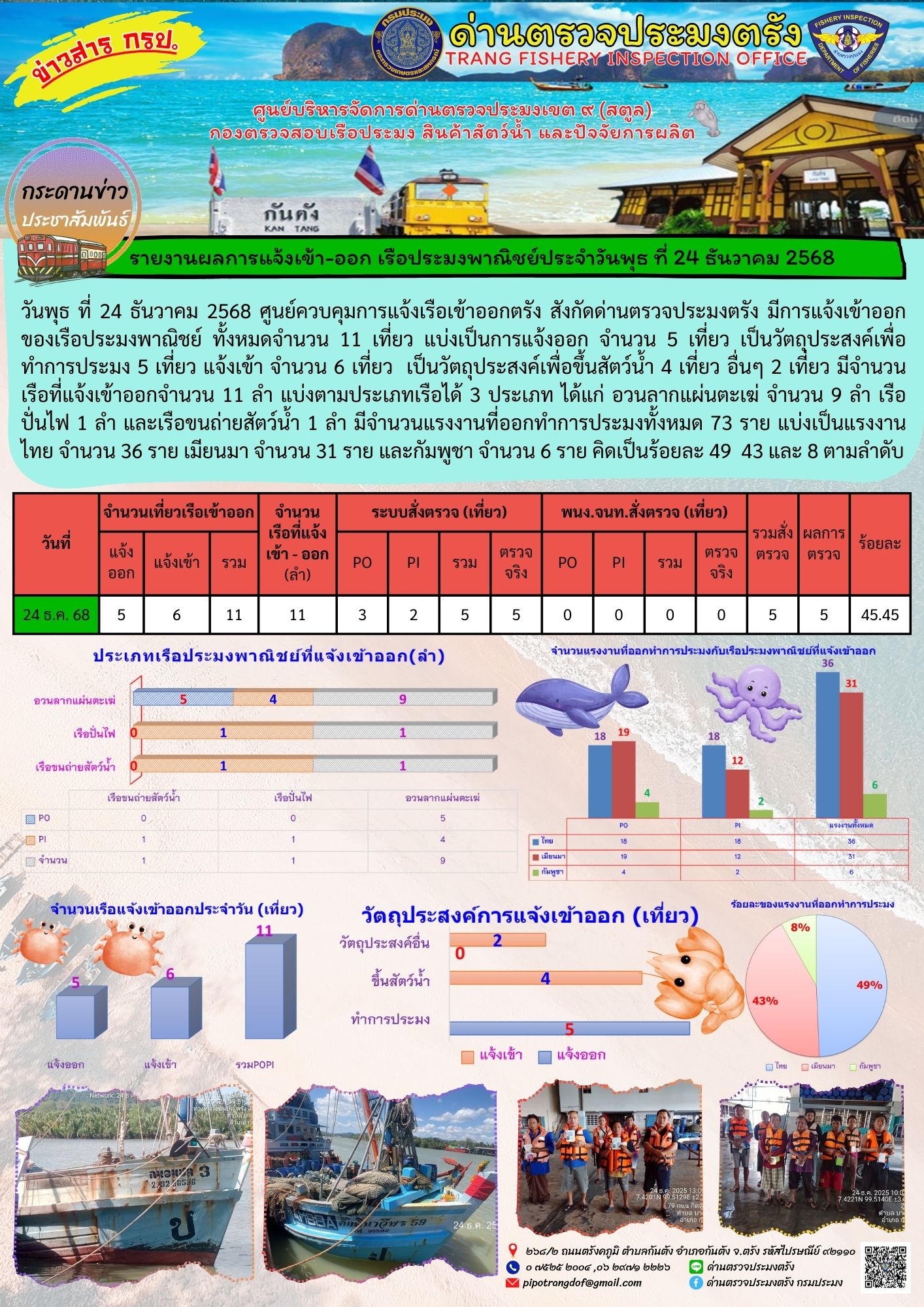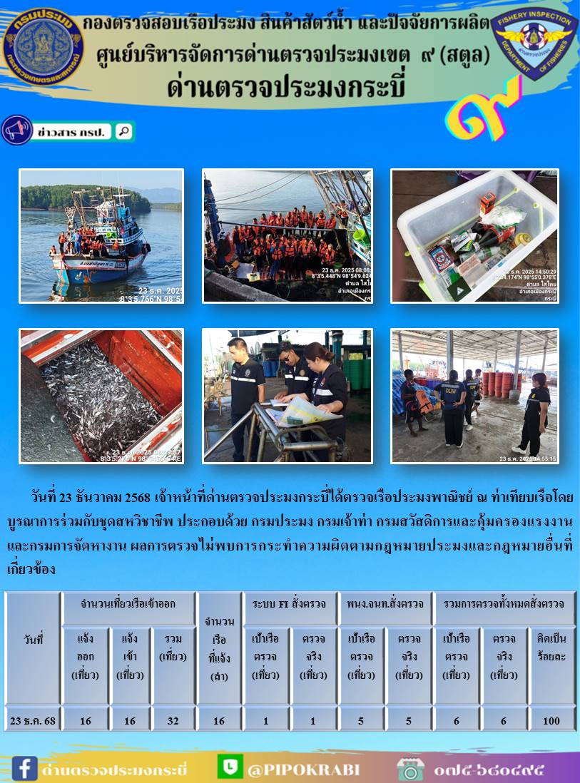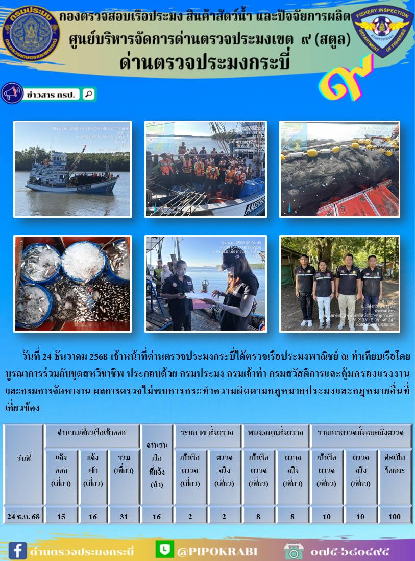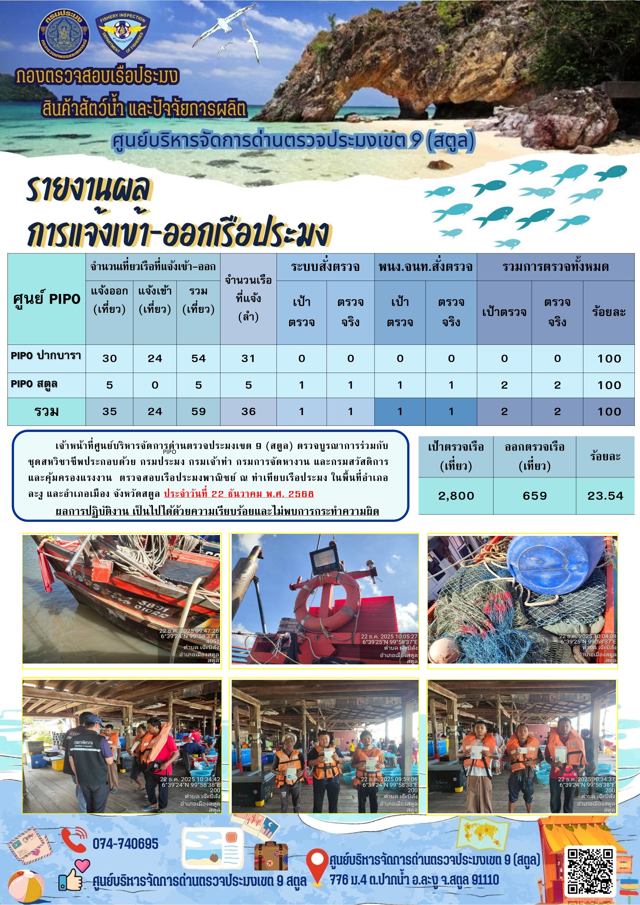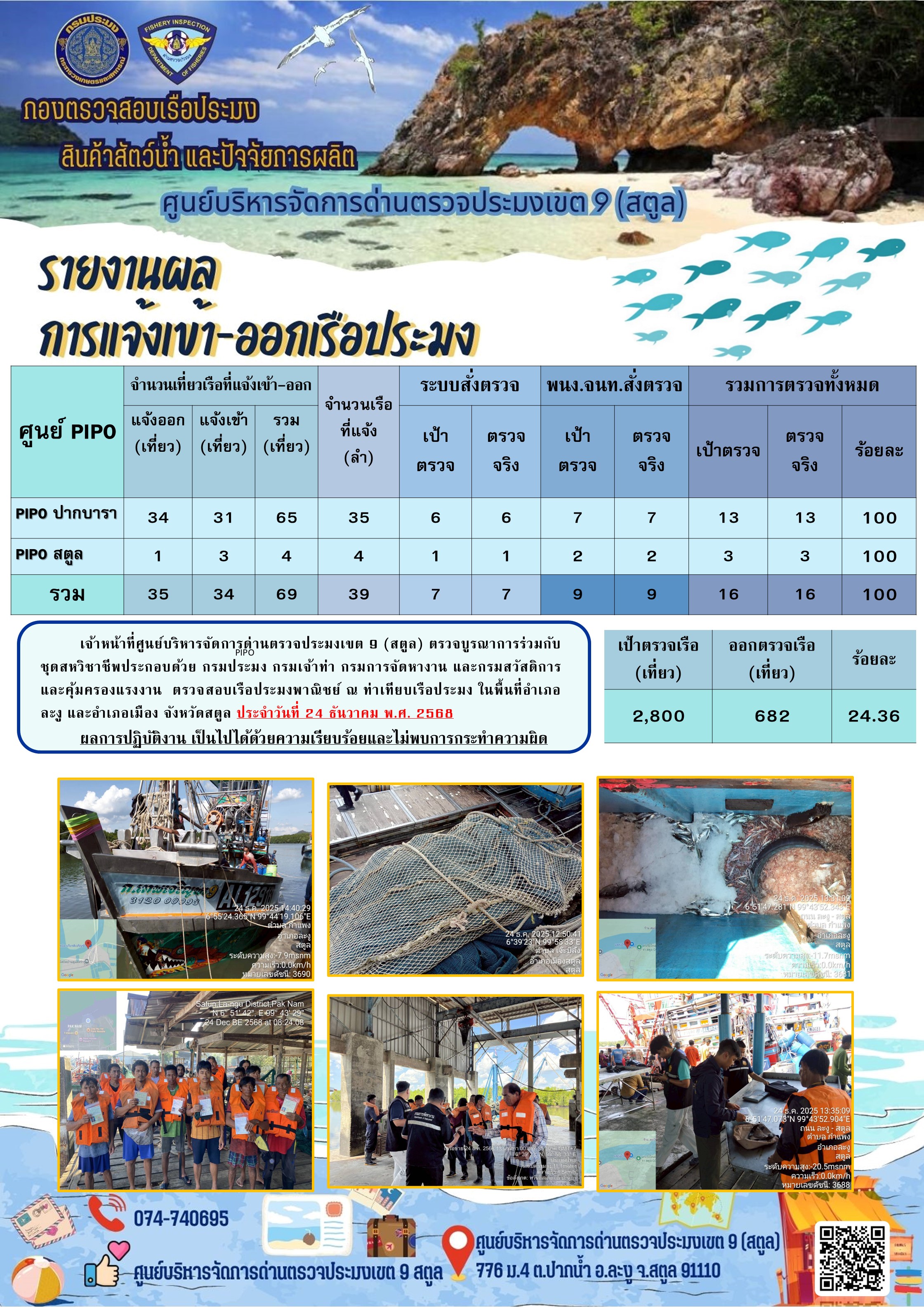 ประชาสัมพันธ์การปฏิบัติงานศูนย์บริหารจัดการด่านตรวจประมงเขต 9 (สตูล) ประจำวันที่ 21-25 ธันวาคม 2568