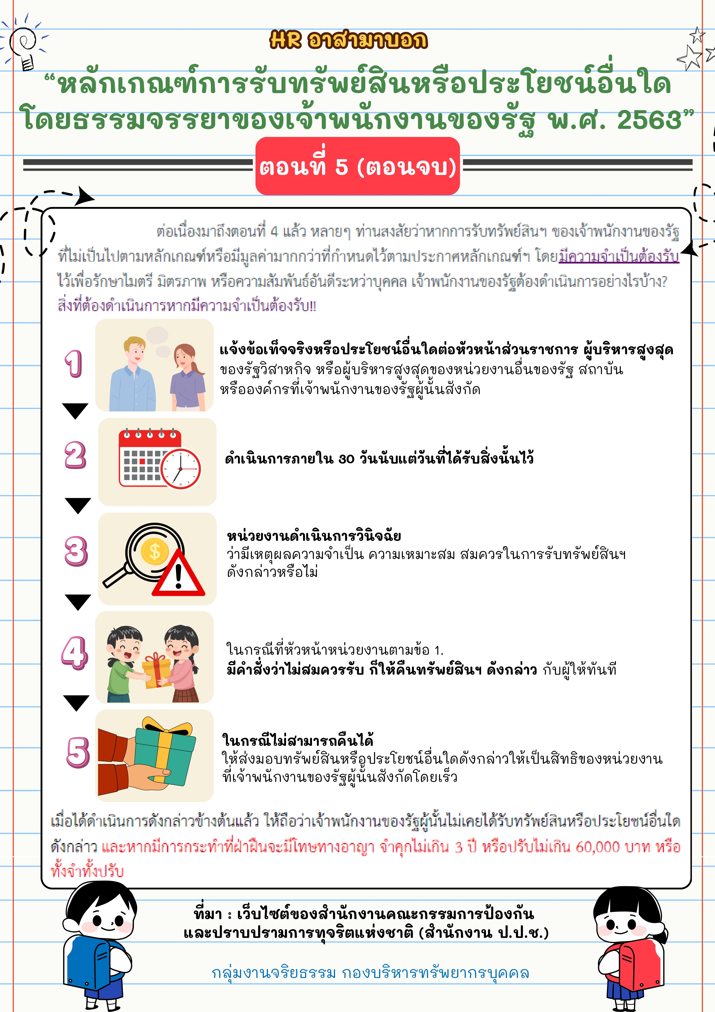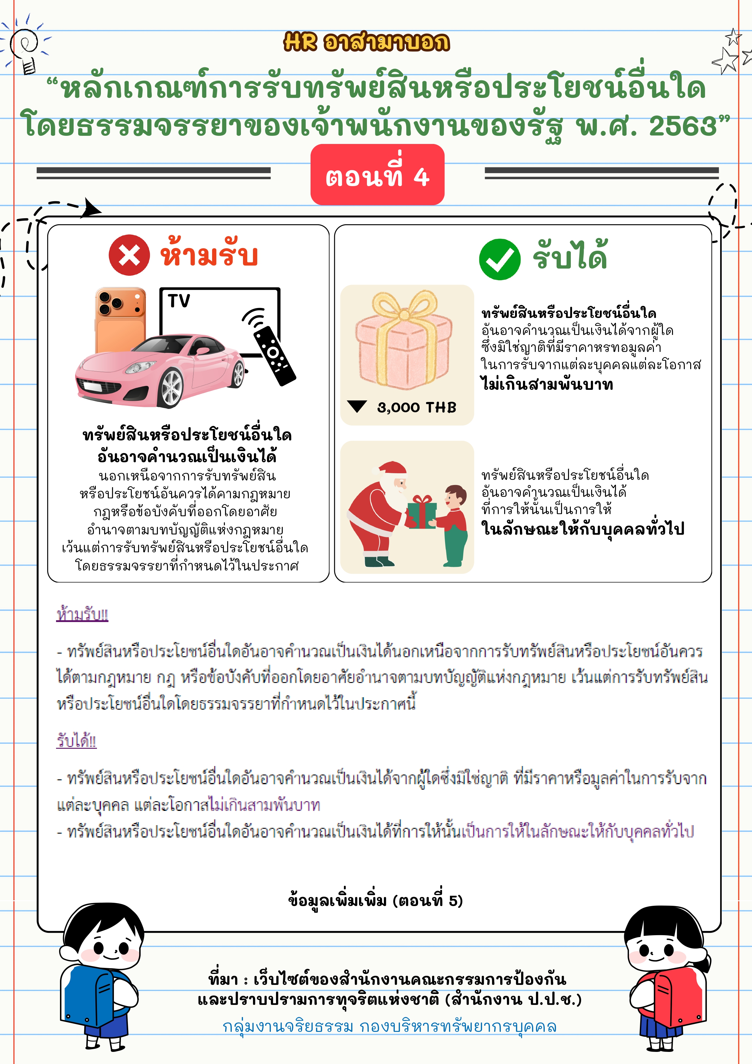 NEW การส่งเสริมคุณธรรมจริยธรรม หลักเกณฑ์การรับทรัพย์สินหรือประโยชน์อื่นใดโดยธรรมจรรยาของเจ้าพนักงานของรัฐ พ.ศ. 2563..คลิก