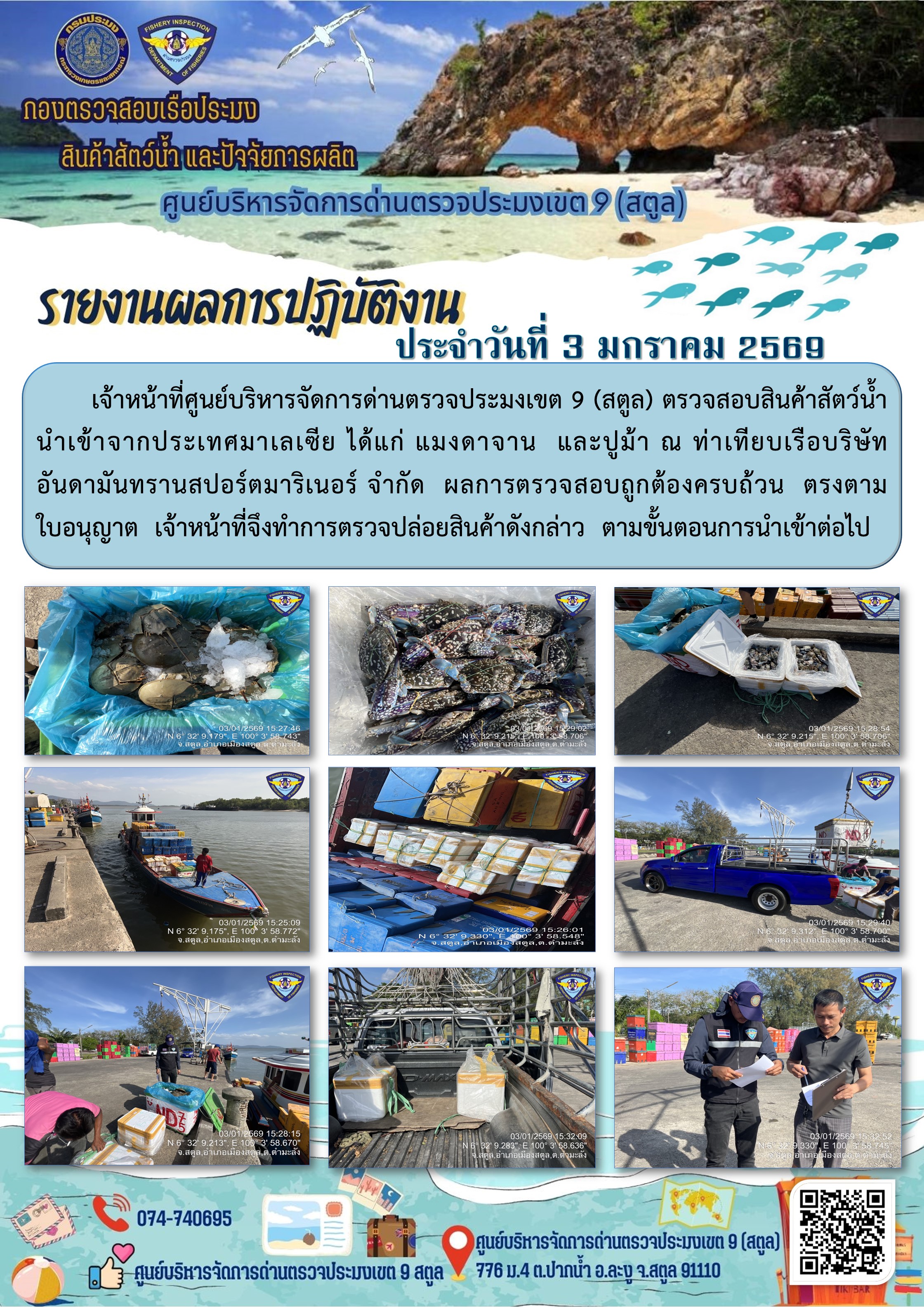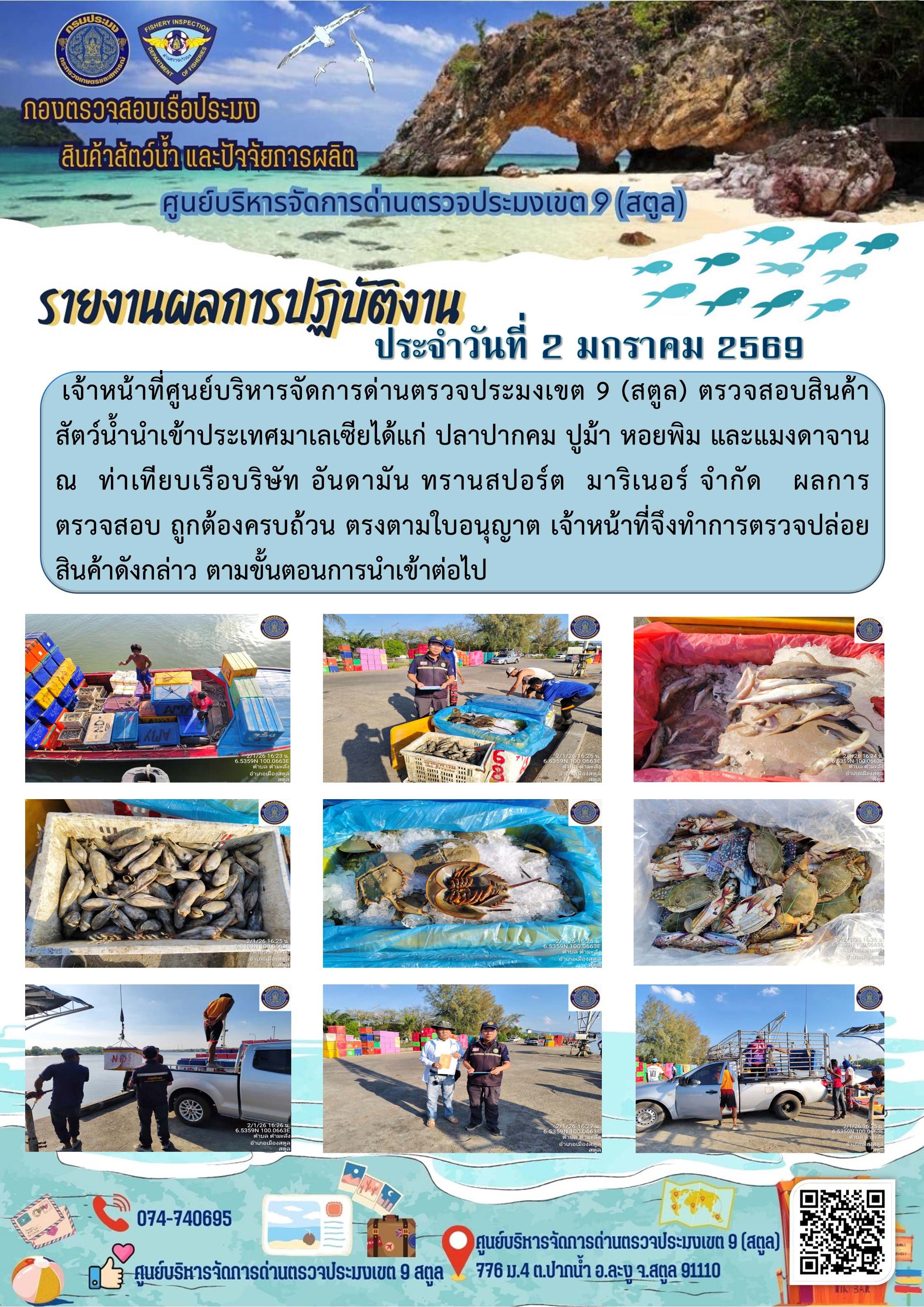 NEW ประชาสัมพันธ์การปฏิบัติงานศูนย์บริหารจัดการด่านตรวจประมงเขต 9 (สตูล) ประจำวันที่ 1 - 5 มกราคม 2569..คลิก
