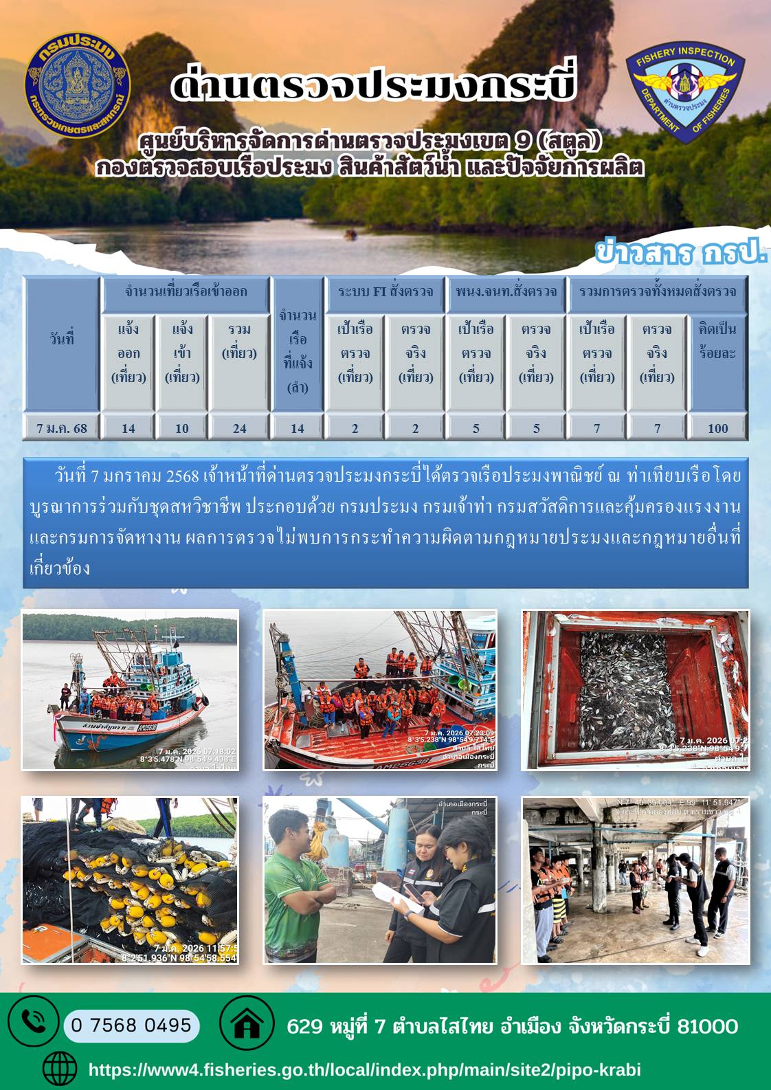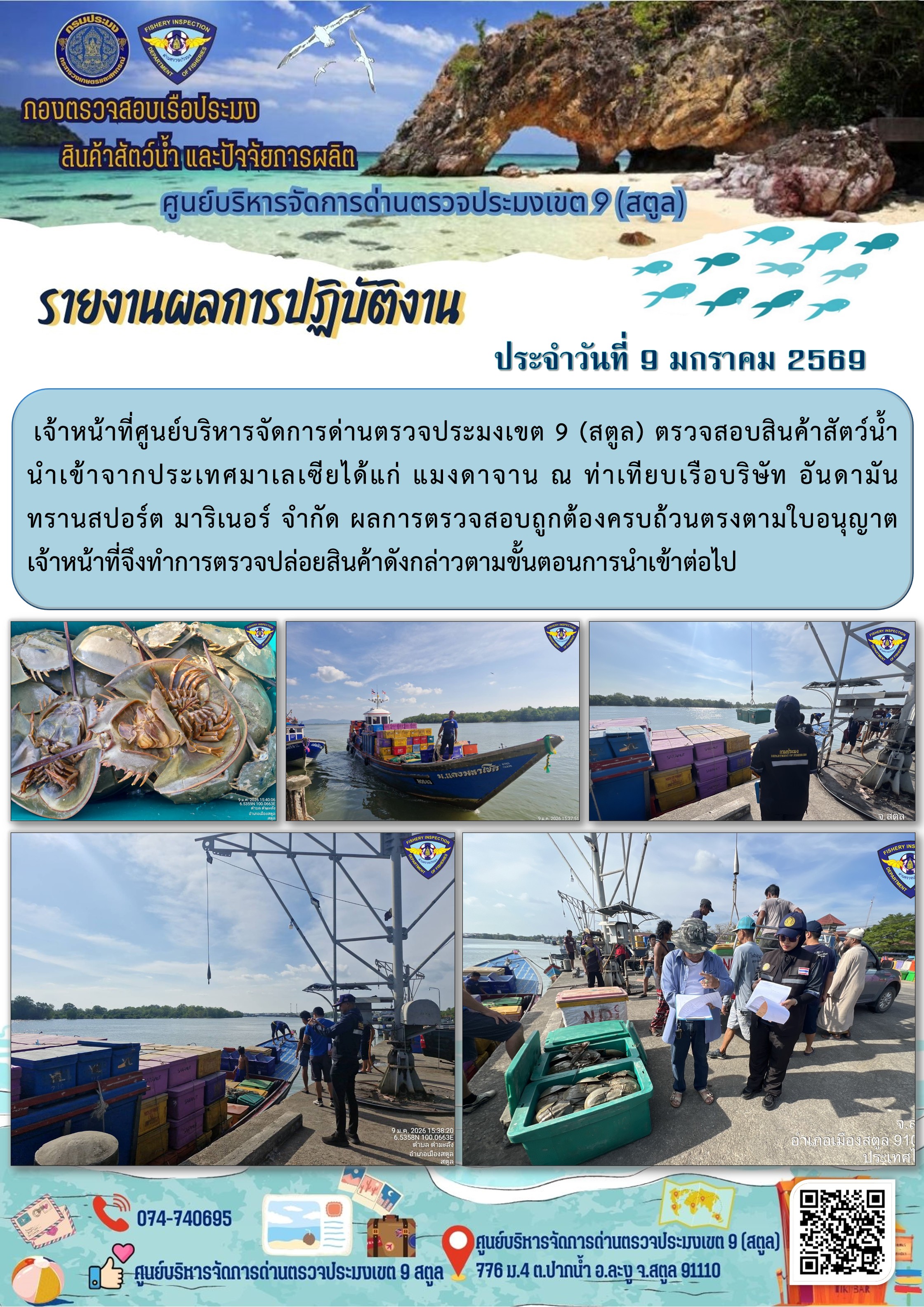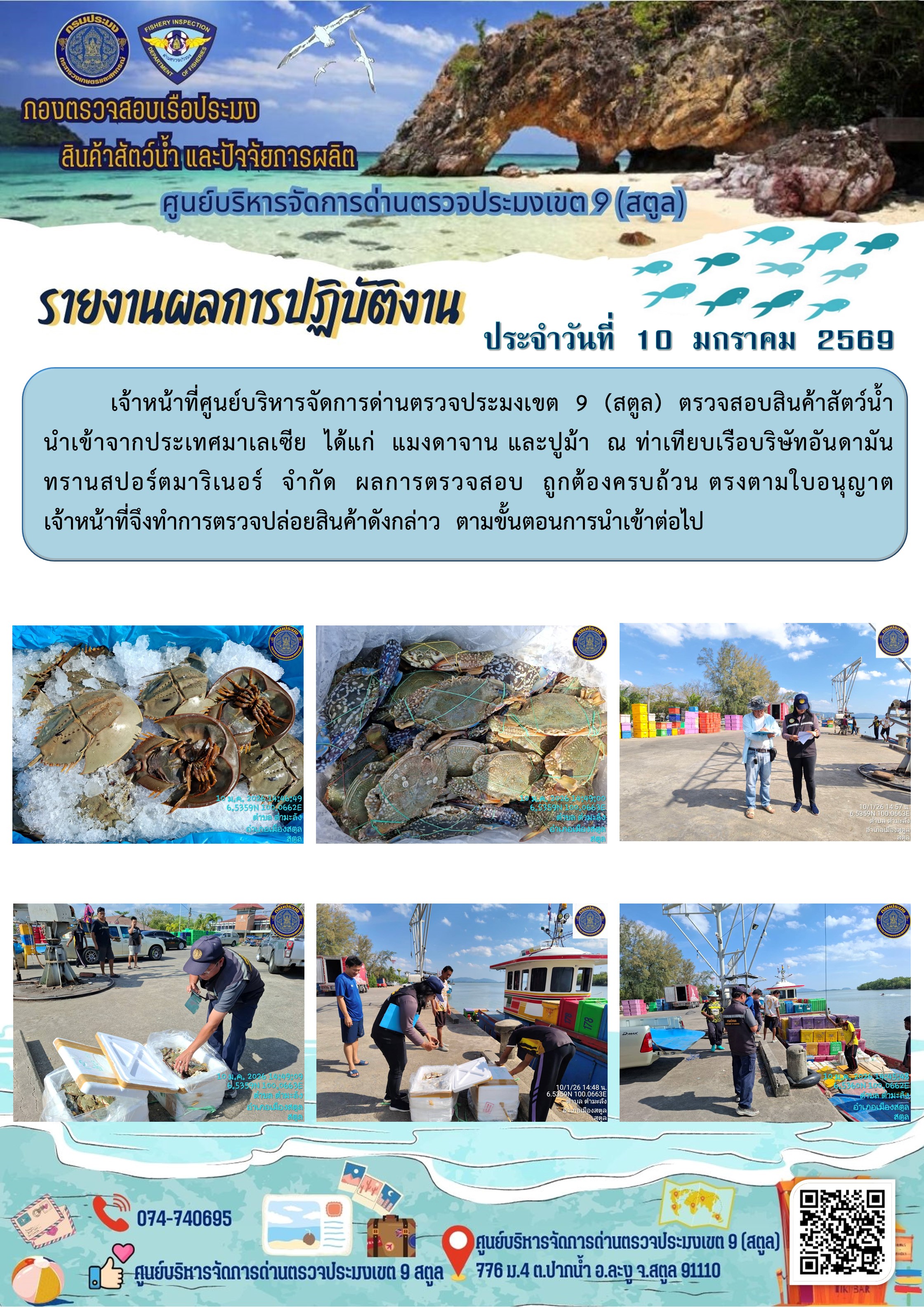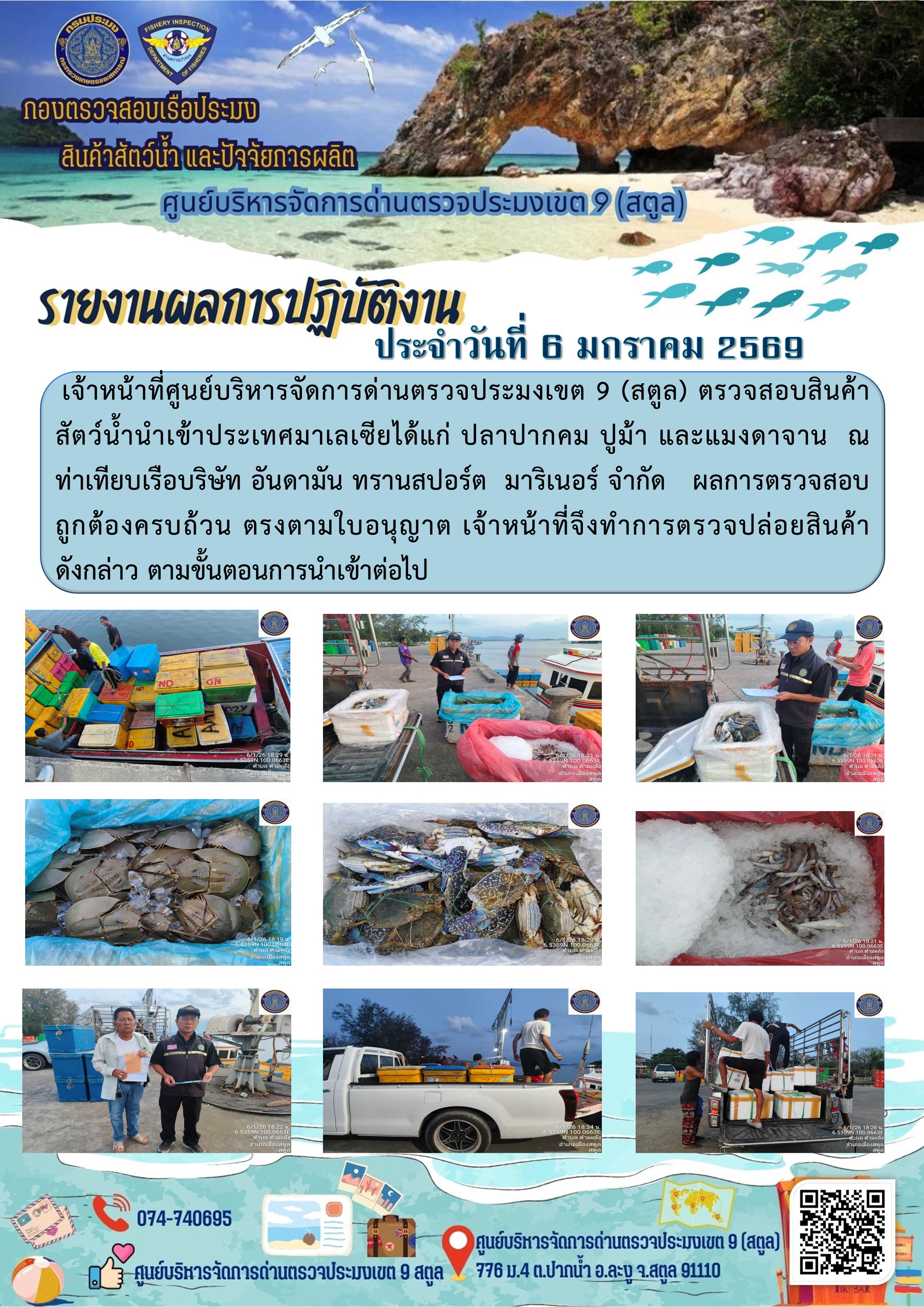 NEW ประชาสัมพันธ์การปฏิบัติงานศูนย์บริหารจัดการด่านตรวจประมงเขต 9 (สตูล) ประจำวันที่ 6 - 10 มกราคม 2569..คลิก