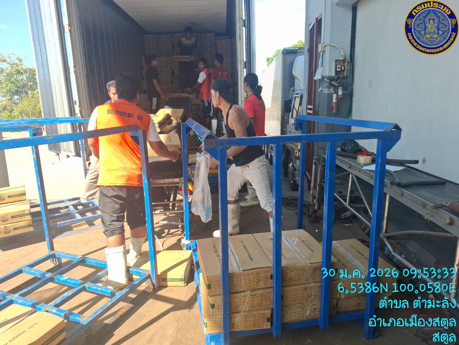 วันศุกร์ที่ 30 มกราคม 2569 นายตะวัน  คงสี ผู้อำนวยการศูนย์บริหารจัดการด่านตรวจประมงเขต 9 (สตูล) มอบหมายให้เจ้าหน้าที่สำนักงานตรวจประมงสตูล ศูนย์บริหารจัดการด่านตรวจประมงเขต 9 (สตูล) ได้ดำเนินการตรวจสอบการนำเข้าสินค้าสัตว์น้ำทางตู้คอนเทนเนอร์ ณ ปลายทาง จำนวน 1 แห่ง เพื่อดูการขนถ่ายสินค้าออกจากตู้คอนเทนเนอร์และเปิดตรวจสอบความถูกต้องของชนิดและปริมาณที่ขออนุญาตนำเข้า ซึ่งมีสินค้า ได้แก่ ปลาหางแข็ง ทั้งตัวแช่แข็ง ปริมาณ 27,000 กิโลกรัม