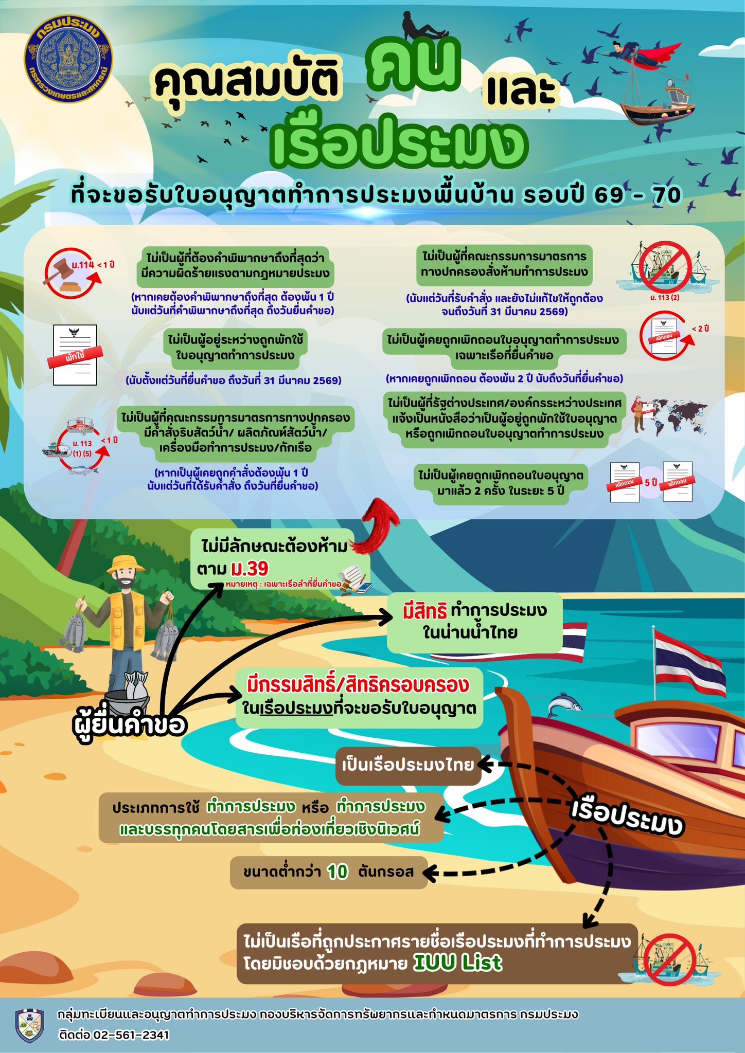 NEW ขอประชาสัมพันธ์เพิ่มเติมการขอรับใบอนุญาตทำการประมงพื้นบ้าน รอบปีการประมง 2569 - 2570..คลิก