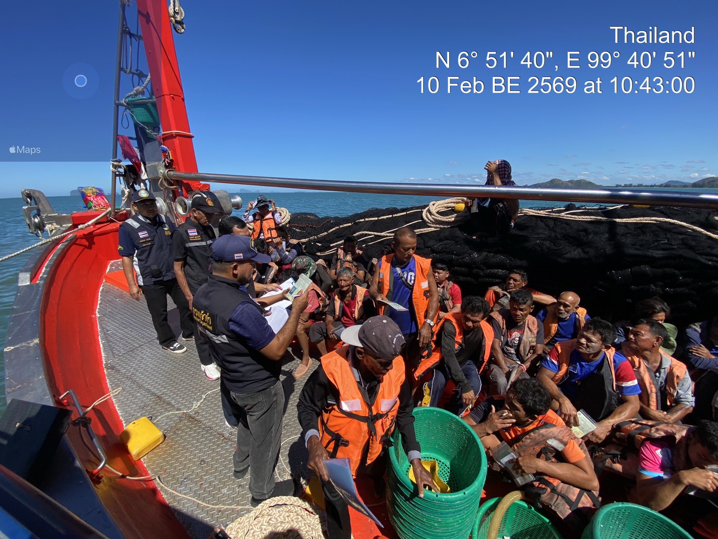 ผลการปฏิบัติงานตรวจเรือประมง จำนวน 4 ลำ ตรวจแรงงานทั้งสิ้น 81 คน ไม่พบการกระทำความผิดกฎหมายแรงงาน พร้อมทั้งมีการตรวจสอบทะเบียนเรือ ใบอนุญาตใช้เรือ ใบอนุญาตประมงพาณิชย์ การใช้เครื่องมือจับสัตว์น้ำ และที่เกี่ยวข้อง ซึ่งเรือประมงทุกลำได้ปฏิบัติตามที่กฎหมายกำหนด พร้อมกันนี้ได้ชี้แจงและประชาสัมพันธ์ การต่ออายุใบประมงพาณิชย์ประจำปี 2569 ซึ่งสามารถยื่นต่ออายุได้ตั้งแต่วันที่ 1-28 กุมภาพันธ์ 2569 นี้ รวมถึงกฎหมายอื่นที่เกี่ยวข้อง ให้กับไต๋เรือและลูกเรือทราบ เพื่อป้องกันการกระทำผิดกฎหมายในอนาคต