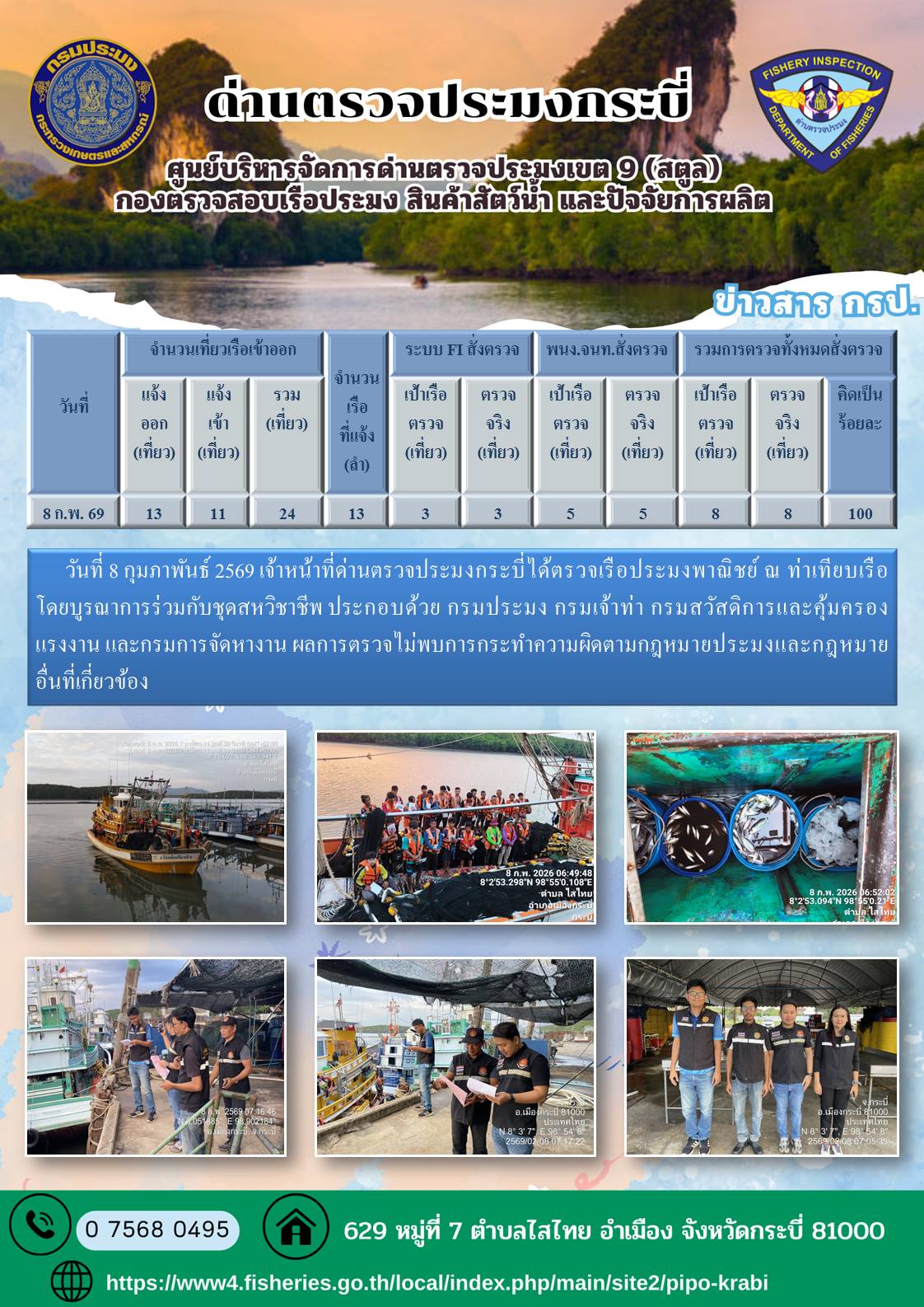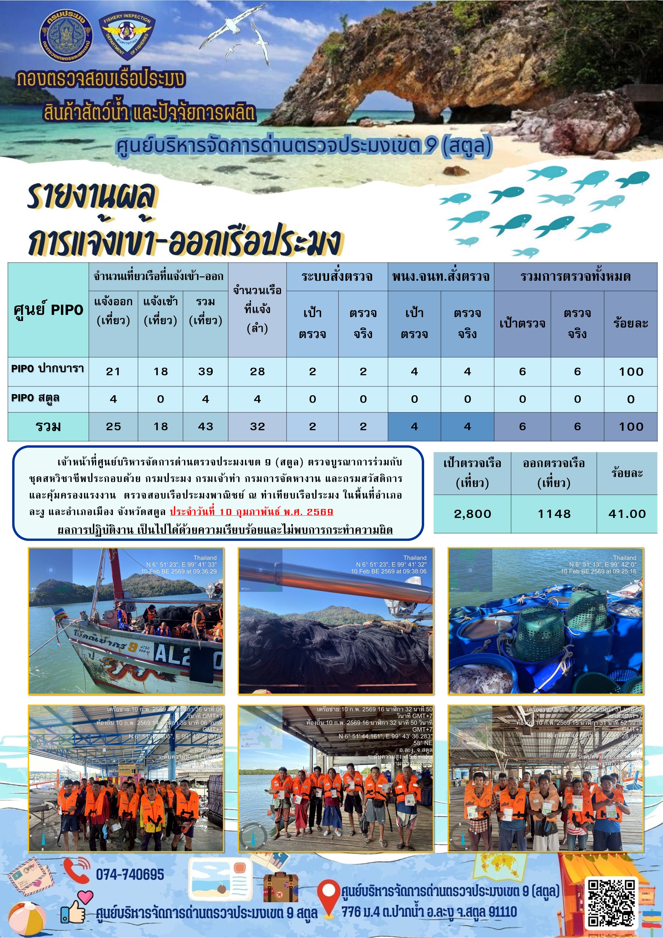 NEW ประชาสัมพันธ์การปฏิบัติงานศูนย์บริหารจัดการด่านตรวจประมงเขต 9 (สตูล) ประจำวันที่ 6 - 10 กุมภาพันธ์ 2569..คลิก