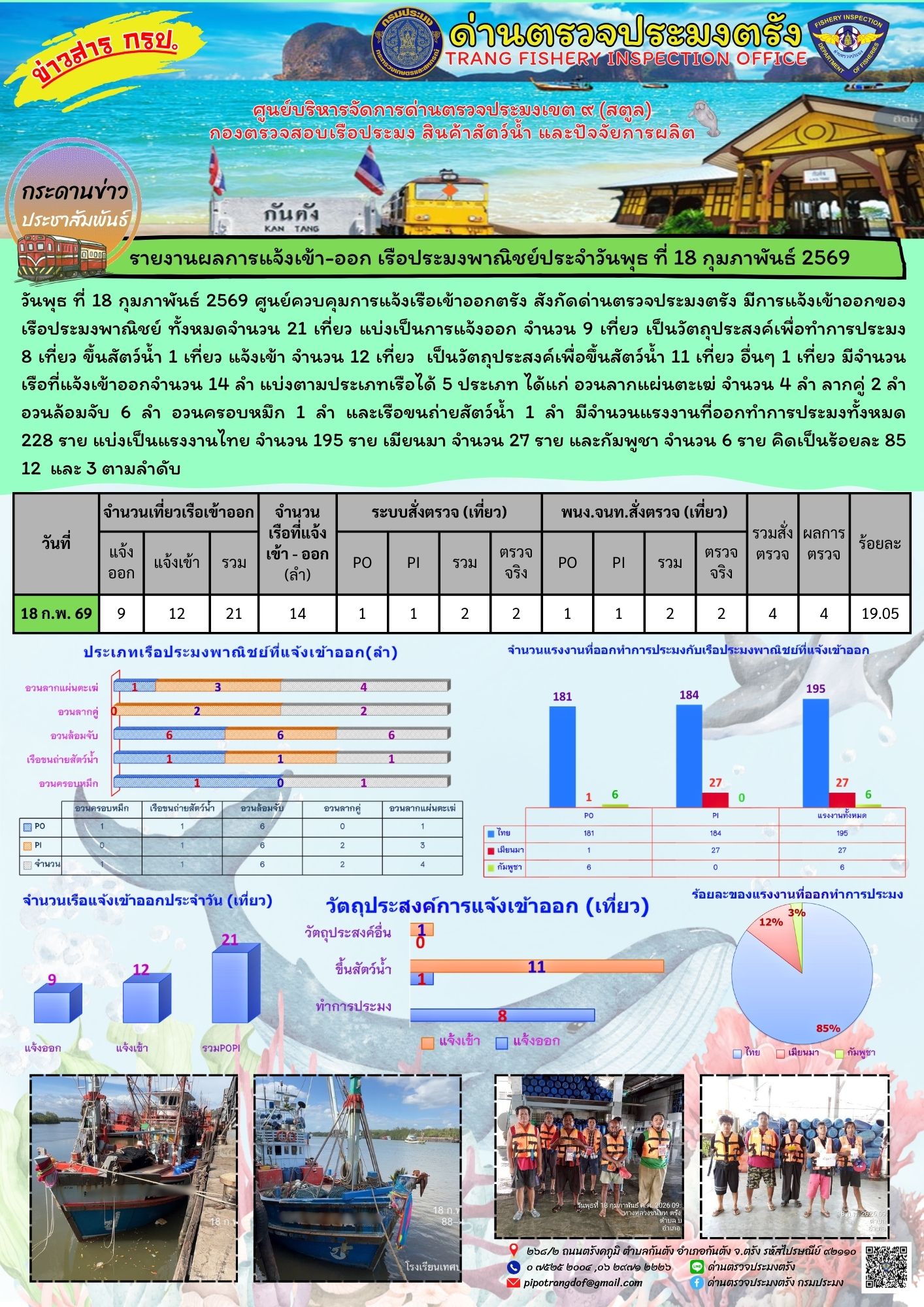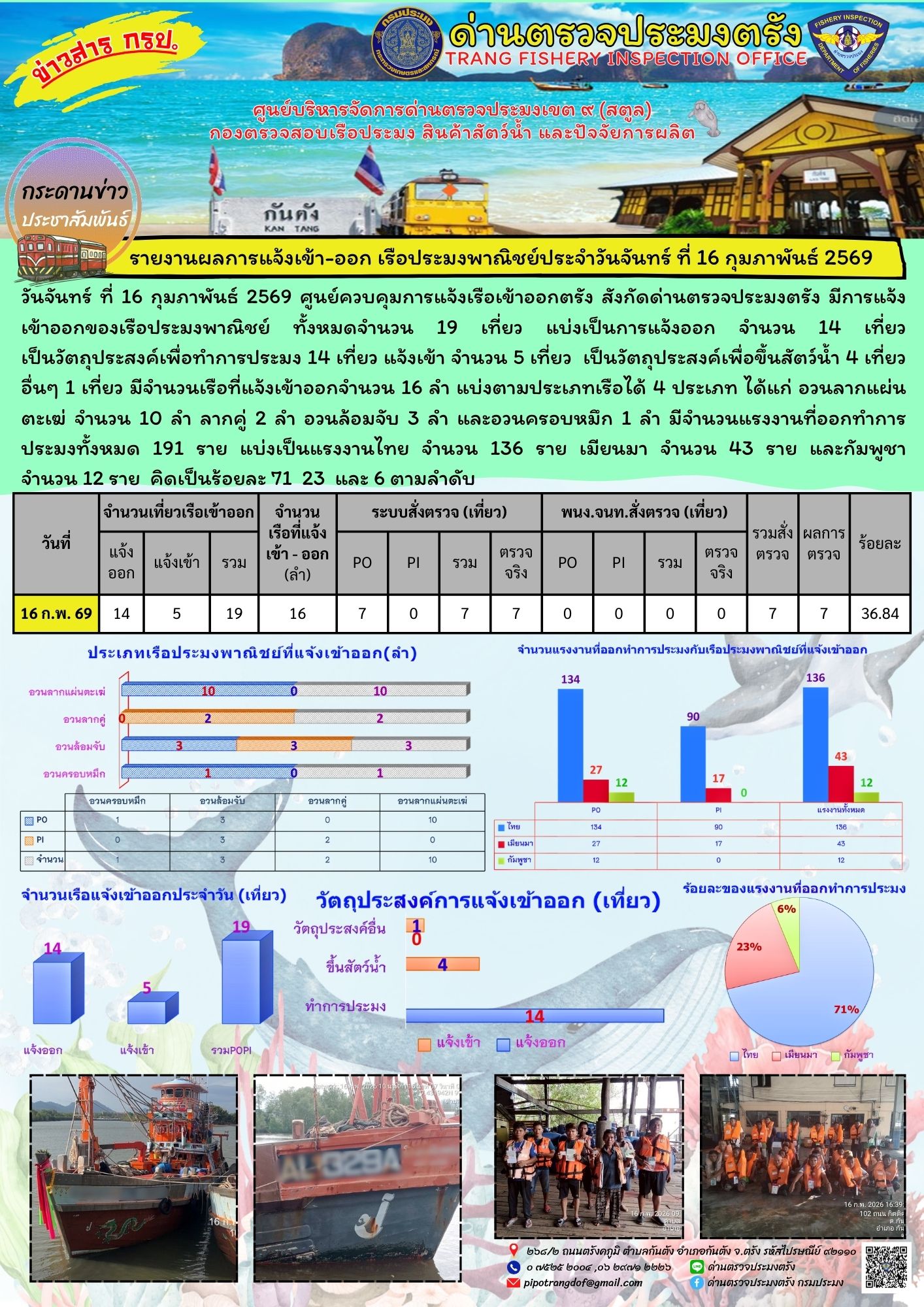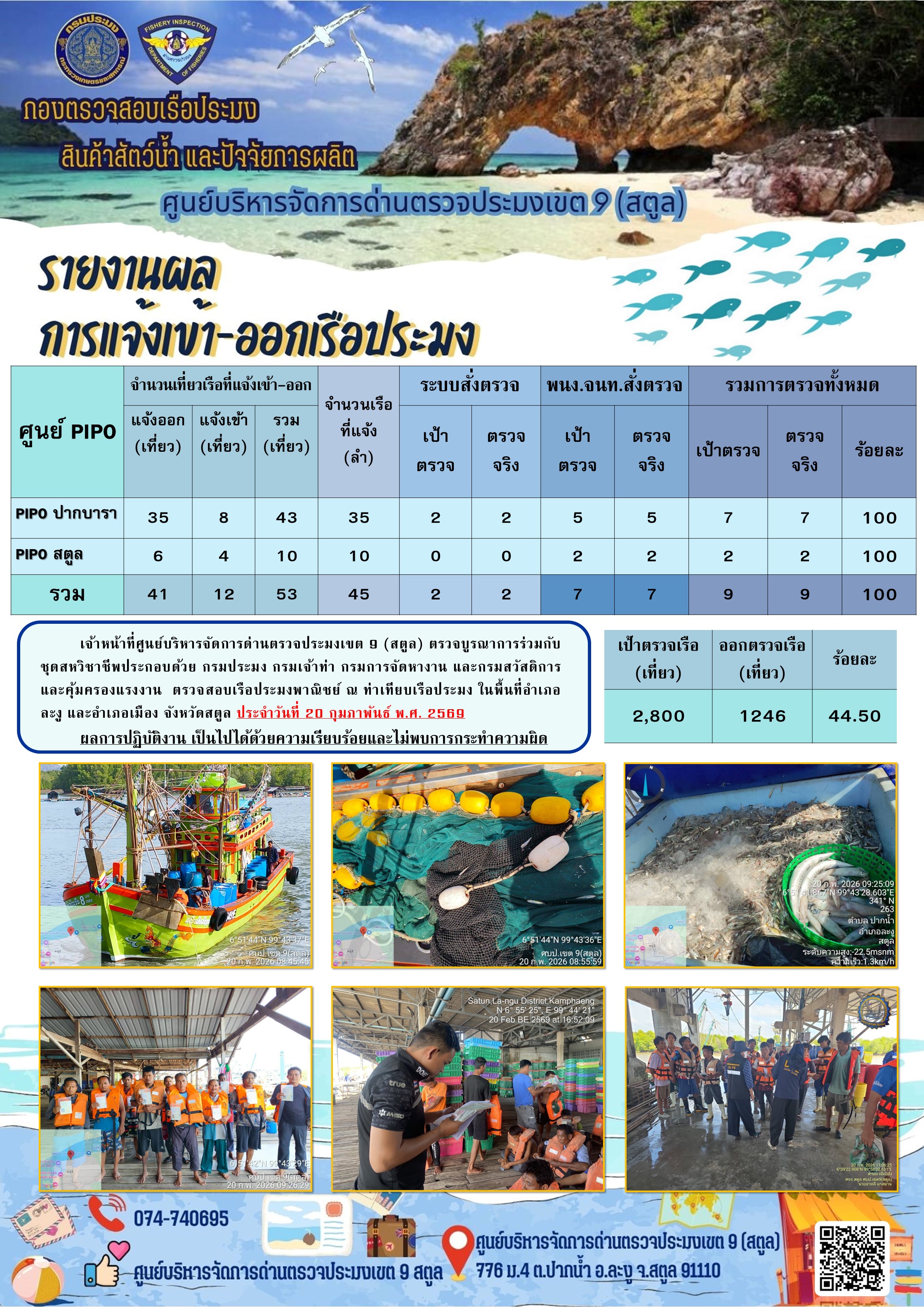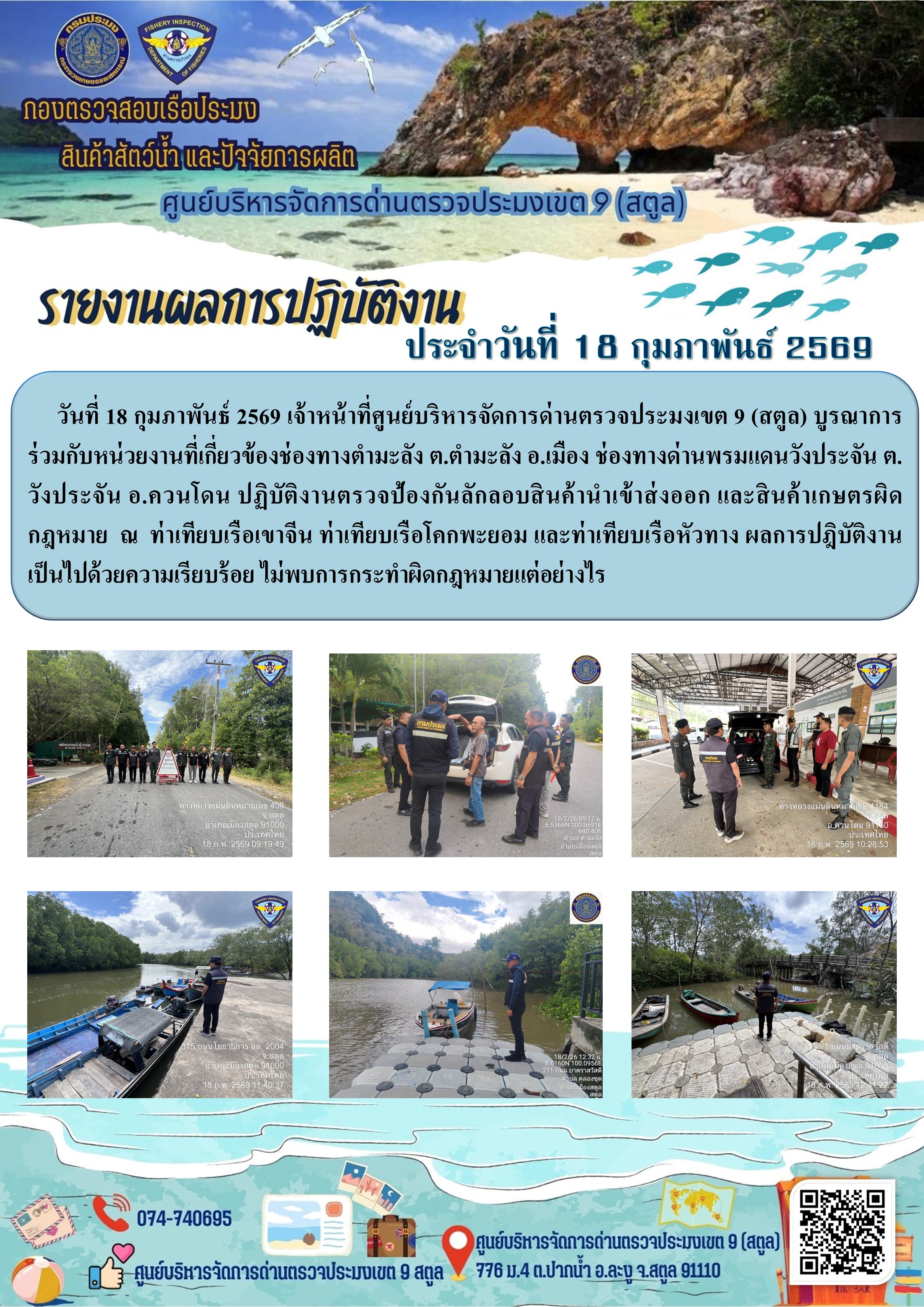 NEW ประชาสัมพันธ์การปฏิบัติงานศูนย์บริหารจัดการด่านตรวจประมงเขต 9 (สตูล) ประจำวันที่ 16 - 20 กุมภาพันธ์ 2569..คลิก