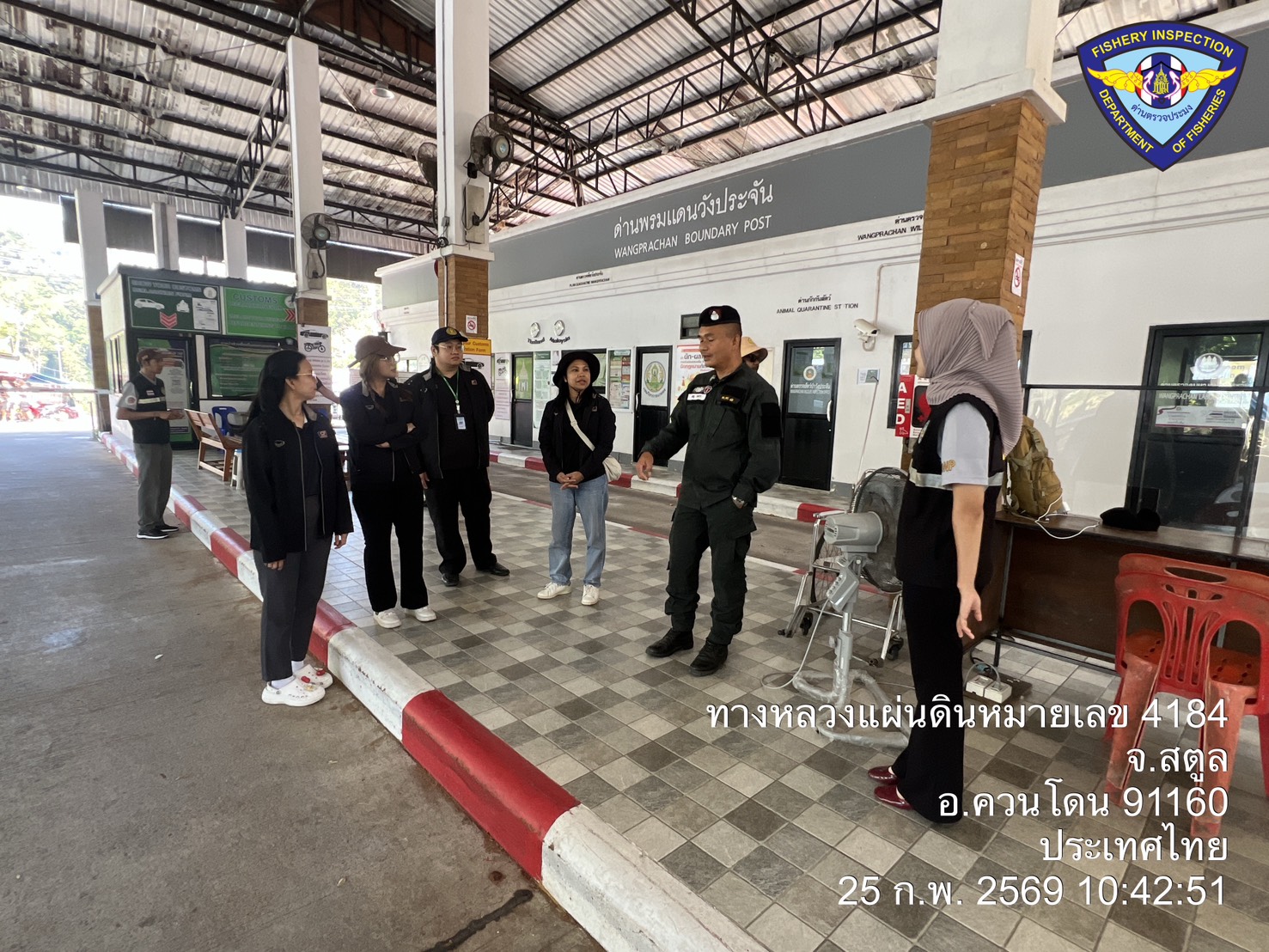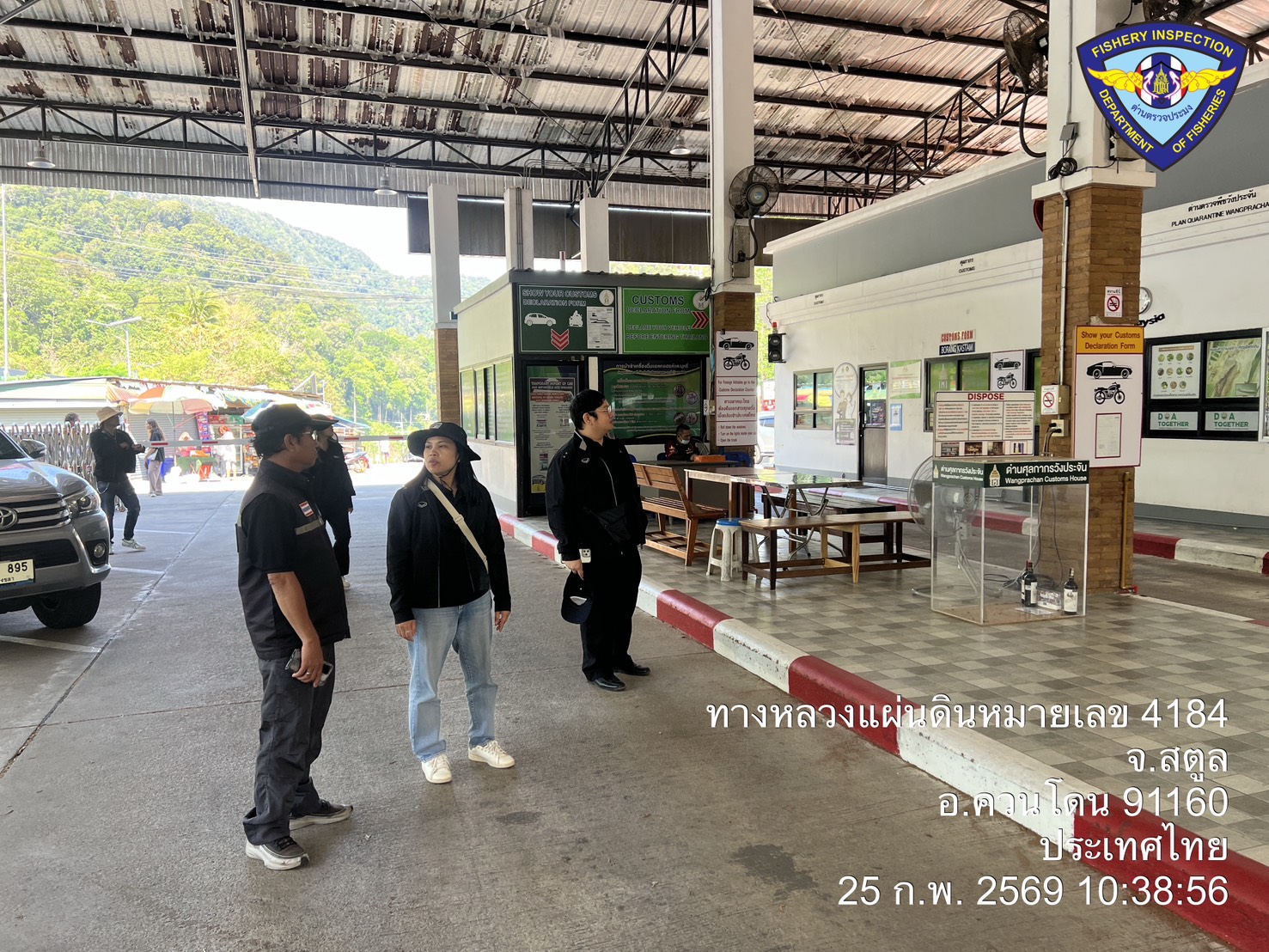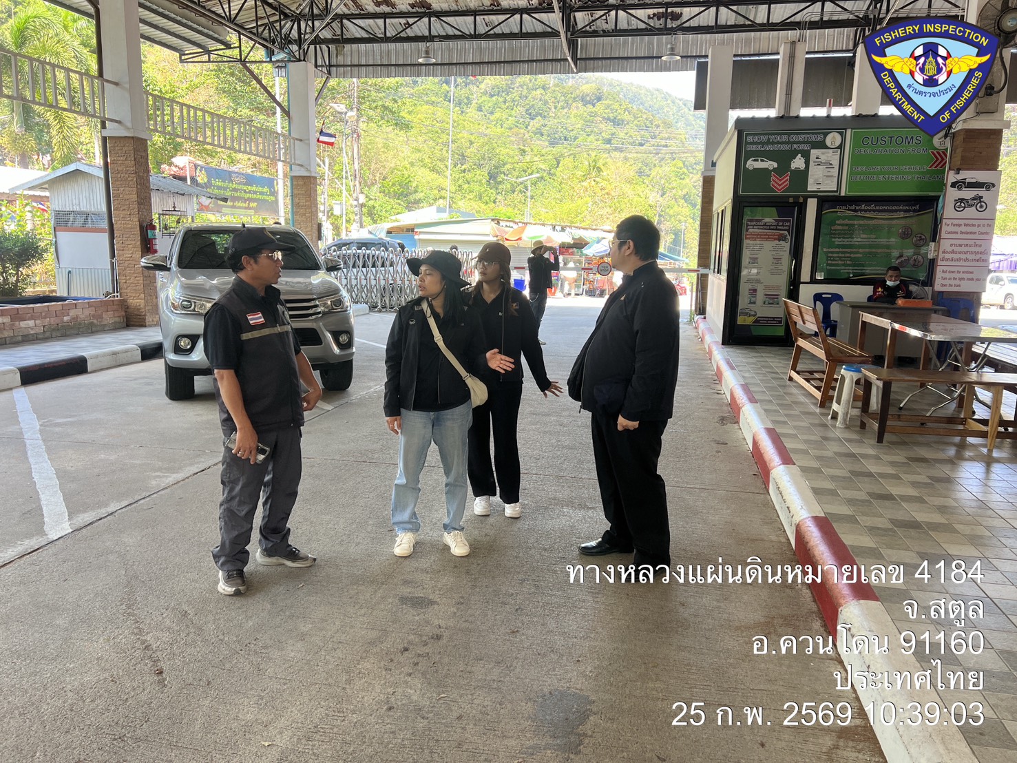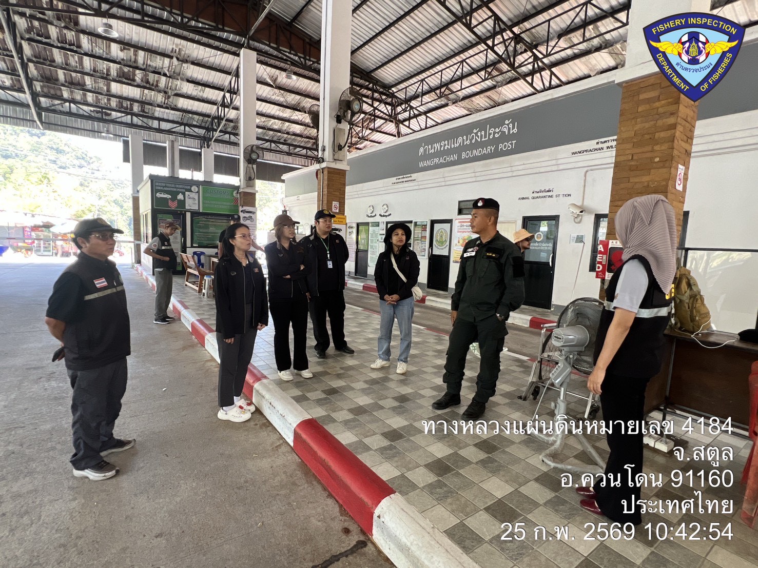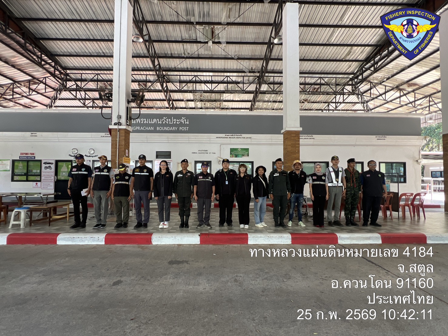 วันที่  25-26 กุมภาพันธ์ 2569 นายตะวัน คงสี ผู้อำนวยการศูนย์บริหารจัดการด่านตรวจประมงเขต 9 (สตูล) พร้อมด้วยเจ้าหน้าที่ศูนย์ ฯ ร่วมต้อนรับเจ้าหน้าที่ประจำศูนย์ปฏิบัติการต่อต้านการนำเข้าส่งออกสินค้าประมงผิดกฎหมาย กองตรวจสอบเรือประมง สินค้าสัตว์น้ำ และปัจจัยการผลิต กรมประมง และคณะลงพื้นที่ตรวจเยี่ยมศูนย์ ฯ เพื่อรับฟังการรายงานผลการปฏิบัติงาน ปัญหาอุปสรรคในการทำงาน โดยมุ่งเน้นการปฏิบัติงานตามที่ศูนย์ฯ ได้จัดตั้งขึ้นเพื่อให้การแก้ไขและป้องกันปัญหาการนำเข้าส่งออกสินค้าสัตว์น้ำผิดกฎหมายนั้น และเป็นไปด้วยความรวดเร็วและมีประสิทธิภาพ โดยให้มีหน้าที่และอำนาจในการกำหนดแนวทางการดำเนินคดีตามกฎหมายกับผู้ที่กระทำความผิด และกำหนดแนวทางหรือมาตรการแก้ปัญหา และป้องกันการนำเข้าส่งออกสินค้าประมงผิดกฎหมาย พร้อมทั้งได้ลงพื้นที่จุดปฏิบัติงาน ทางท่าเทียบเรือและช่องทางจุดผ่านแดนทางบก ได้แก่
