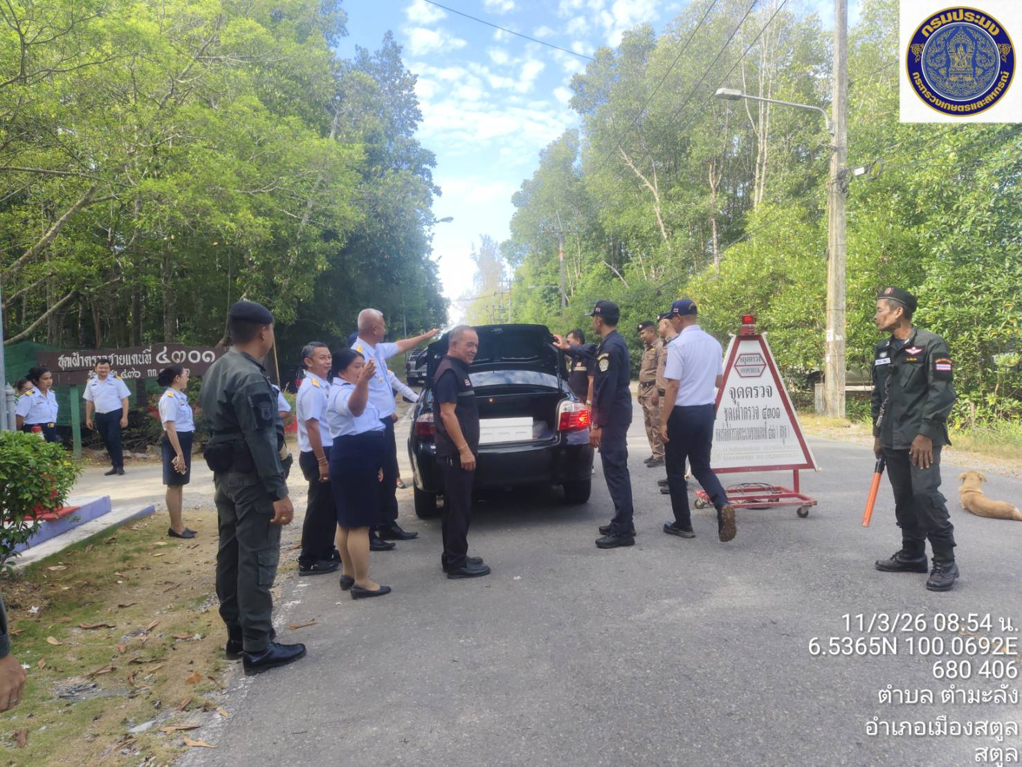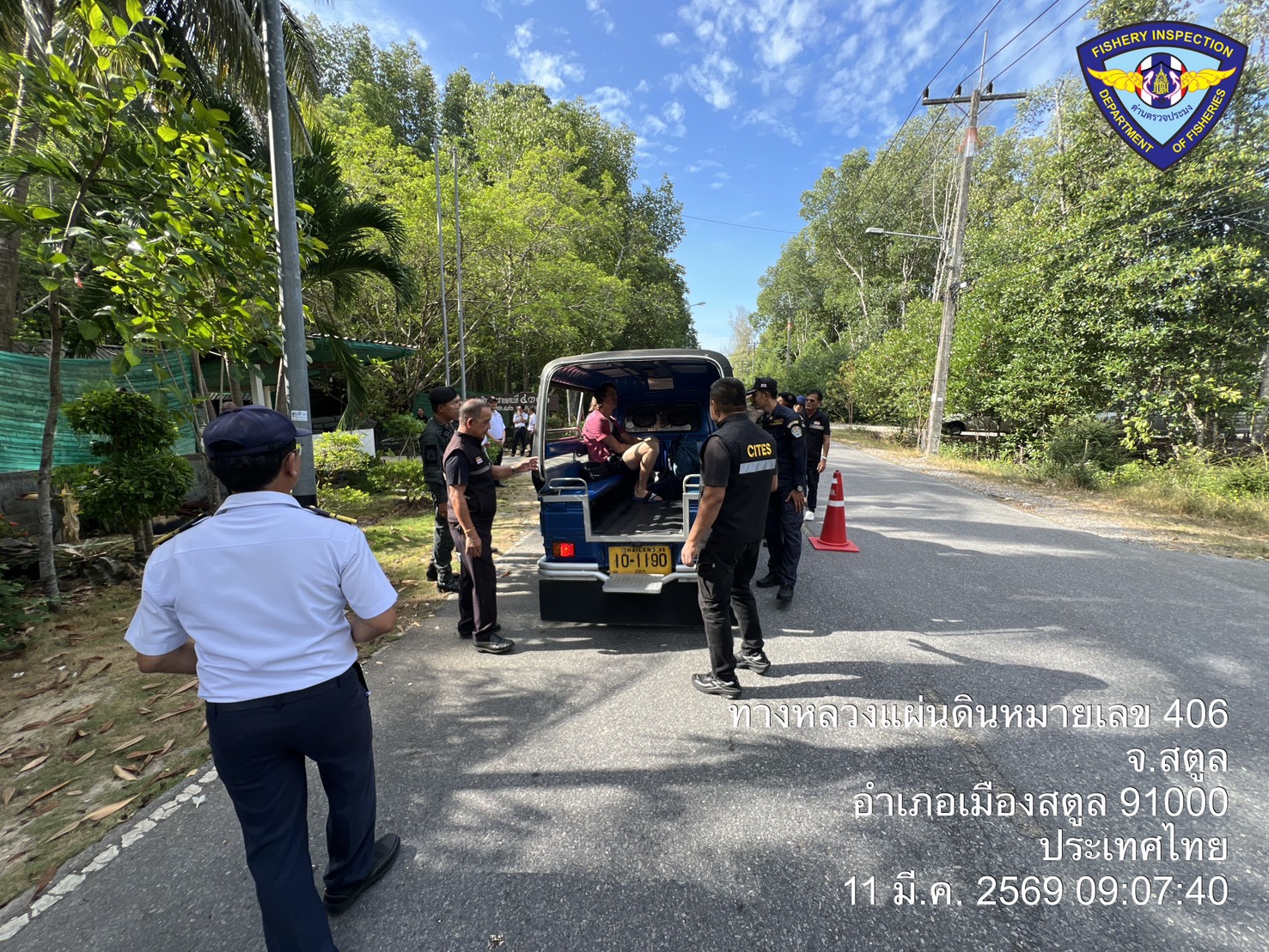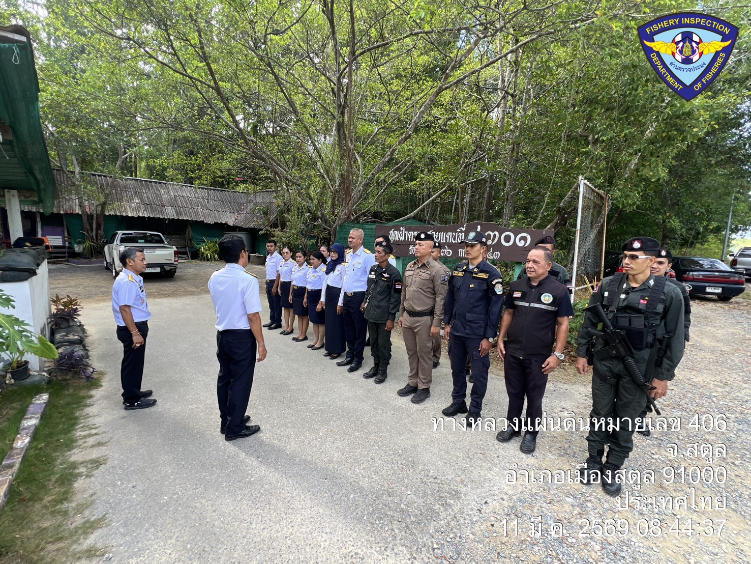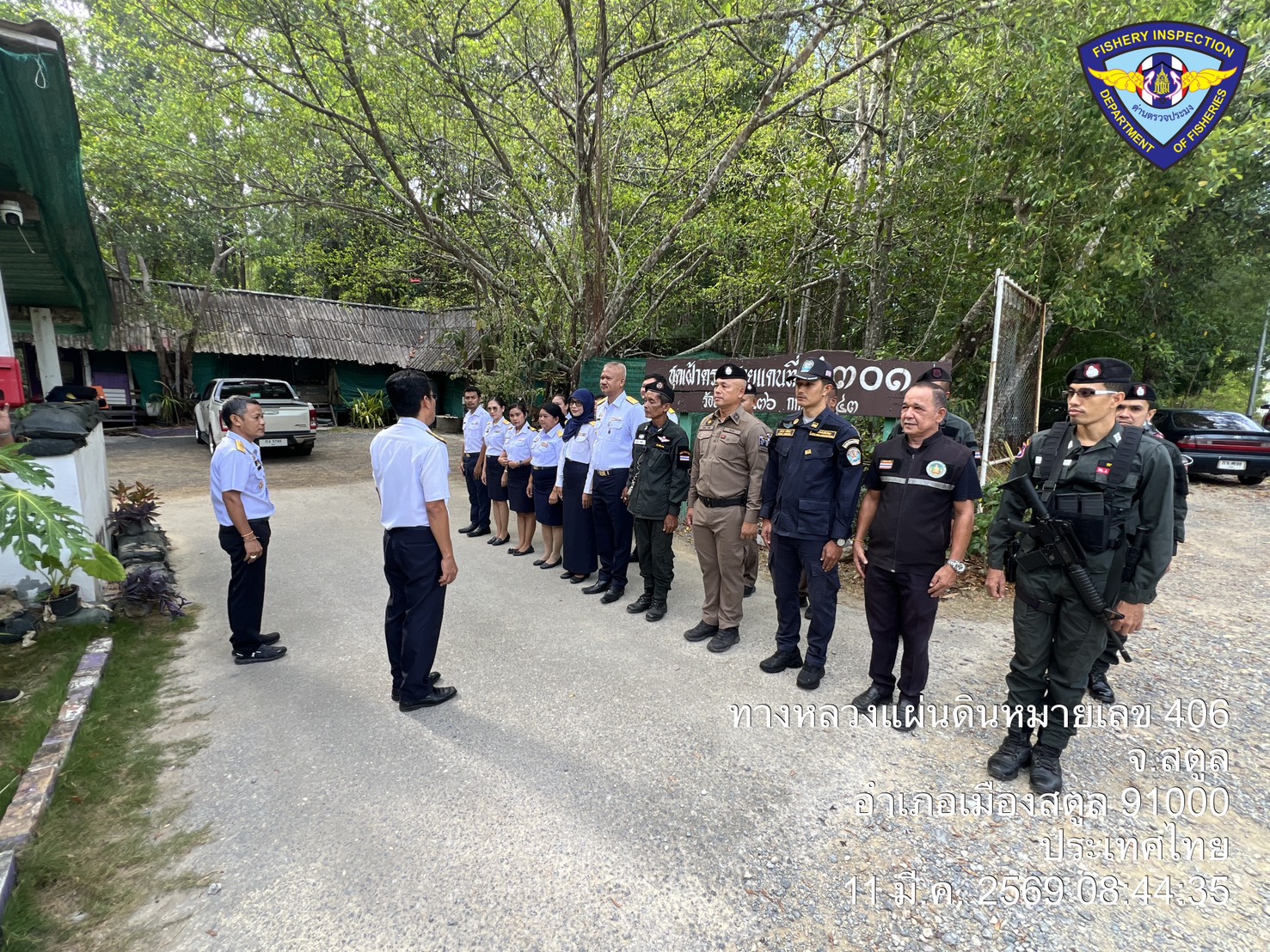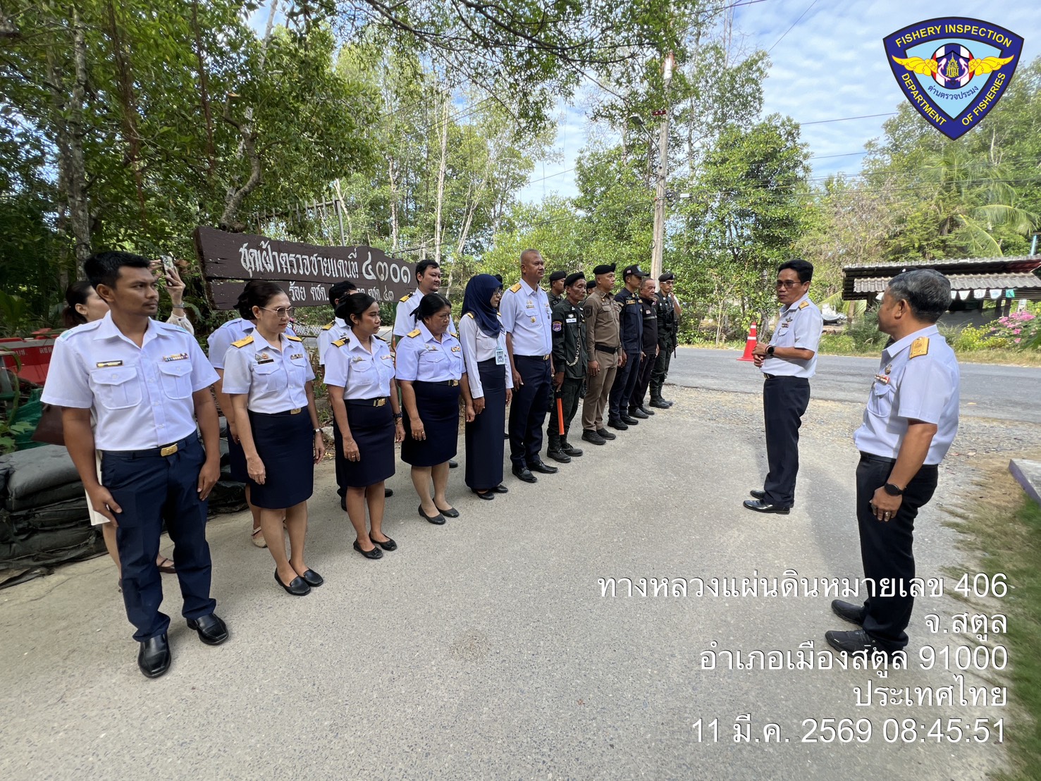 วันพุธ ที่ 11  มีนาคม 2569 นายตะวัน  คงสี ผู้อำนวยการศูนย์บริหารจัดการด่านตรวจประมงเขต 9 (สตูล) บูรณาการกับคณะกรรมการขับเคลื่อนนโยบายของกรมประมง (FC) จังหวัดสตูล และหน่วยงานทีเกี่ยวข้องร่วมกันตั้งด่านตรวจป้องกันการลักลอบนำเข้า - ส่งออก สัตว์น้ำผิดกฎหมาย ณ จุดเฝ้าตรวจที่ 4301 ตชด. 436 (สตูล) และพื้นที่ท่าเทียบเรือในพื้นที่ตำบลตำมะลัง อำเภอเมืองสตูล จังหวัดสตูล โดยมีนายนิพนธ์ เสนอินทร์ ประมงจังหวัดสตูล เป็นประธานปล่อยแถวตรวจบูรณาการ