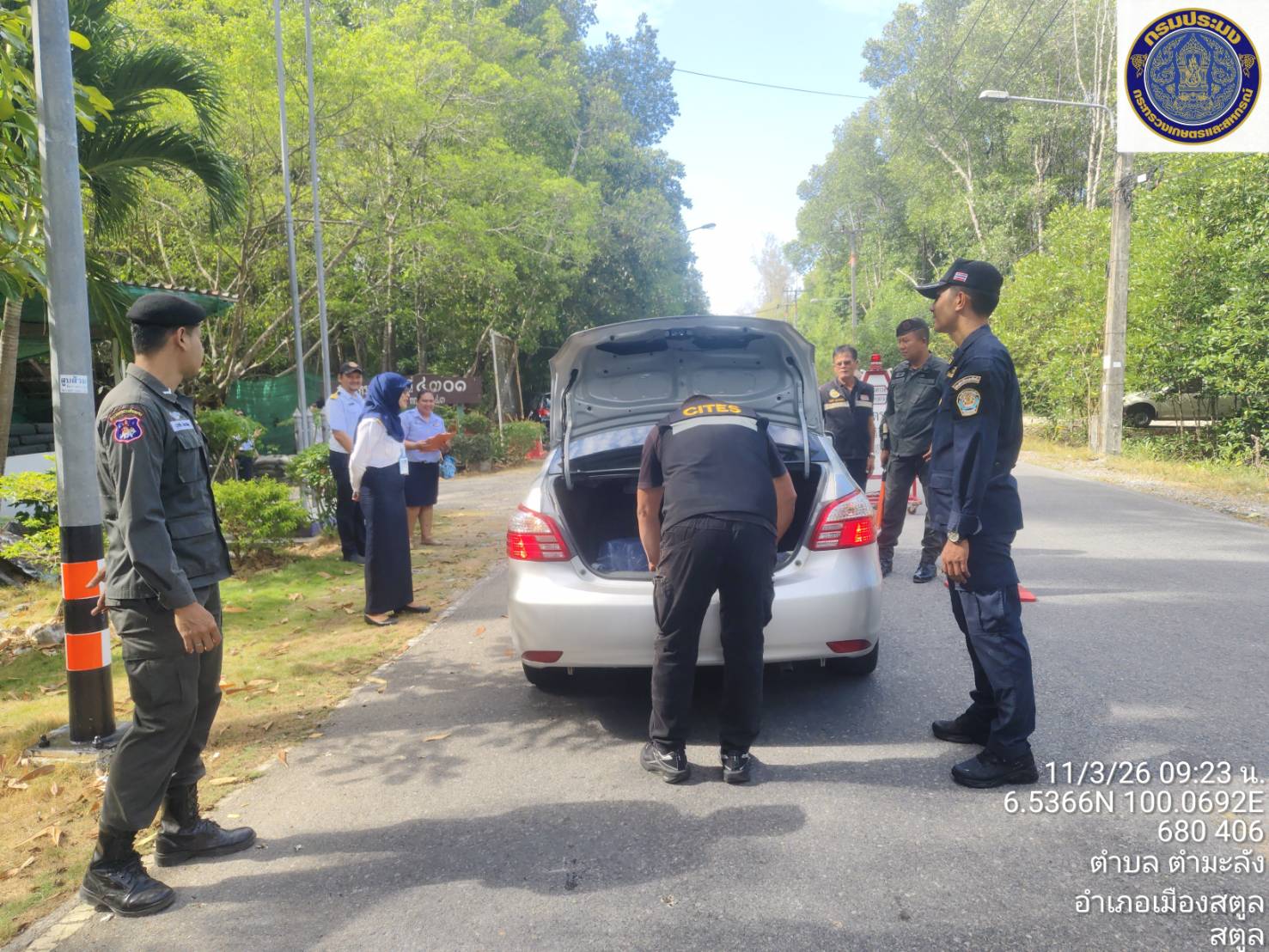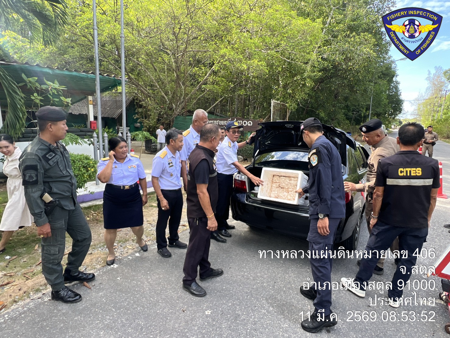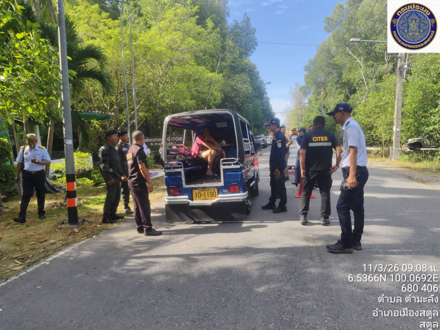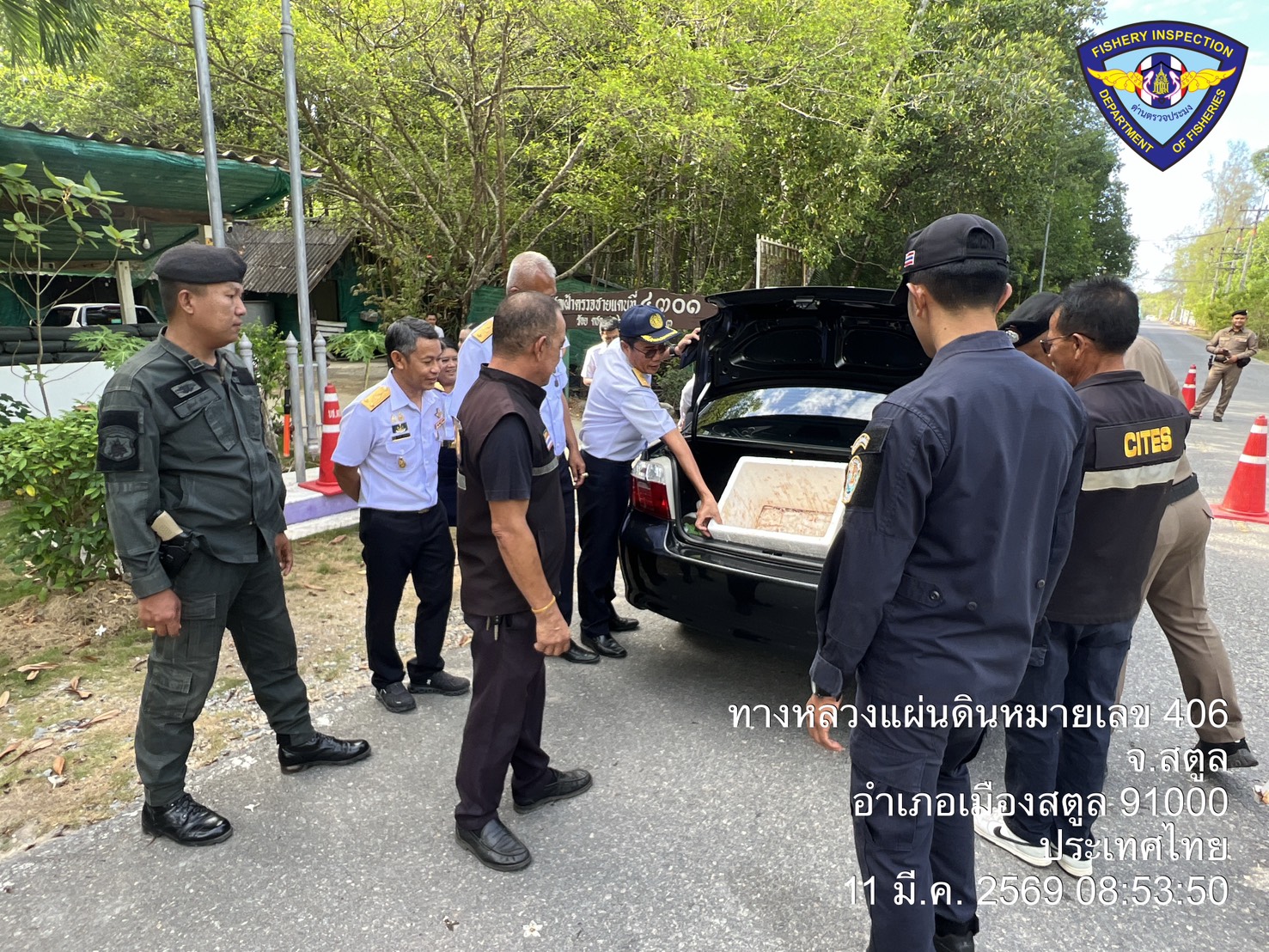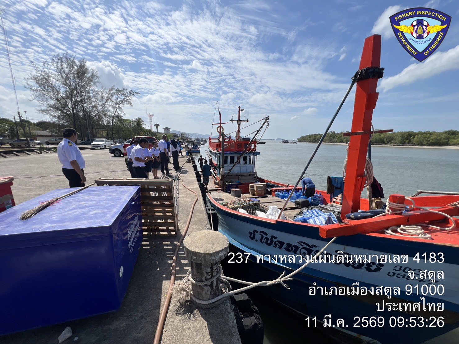 วันพุธ ที่ 11  มีนาคม 2569 นายตะวัน  คงสี ผู้อำนวยการศูนย์บริหารจัดการด่านตรวจประมงเขต 9 (สตูล) บูรณาการกับคณะกรรมการขับเคลื่อนนโยบายของกรมประมง (FC) จังหวัดสตูล และหน่วยงานทีเกี่ยวข้องร่วมกันตั้งด่านตรวจป้องกันการลักลอบนำเข้า - ส่งออก สัตว์น้ำผิดกฎหมาย ณ จุดเฝ้าตรวจที่ 4301 ตชด. 436 (สตูล) และพื้นที่ท่าเทียบเรือในพื้นที่ตำบลตำมะลัง อำเภอเมืองสตูล จังหวัดสตูล โดยมีนายนิพนธ์ เสนอินทร์ ประมงจังหวัดสตูล เป็นประธานปล่อยแถวตรวจบูรณาการ