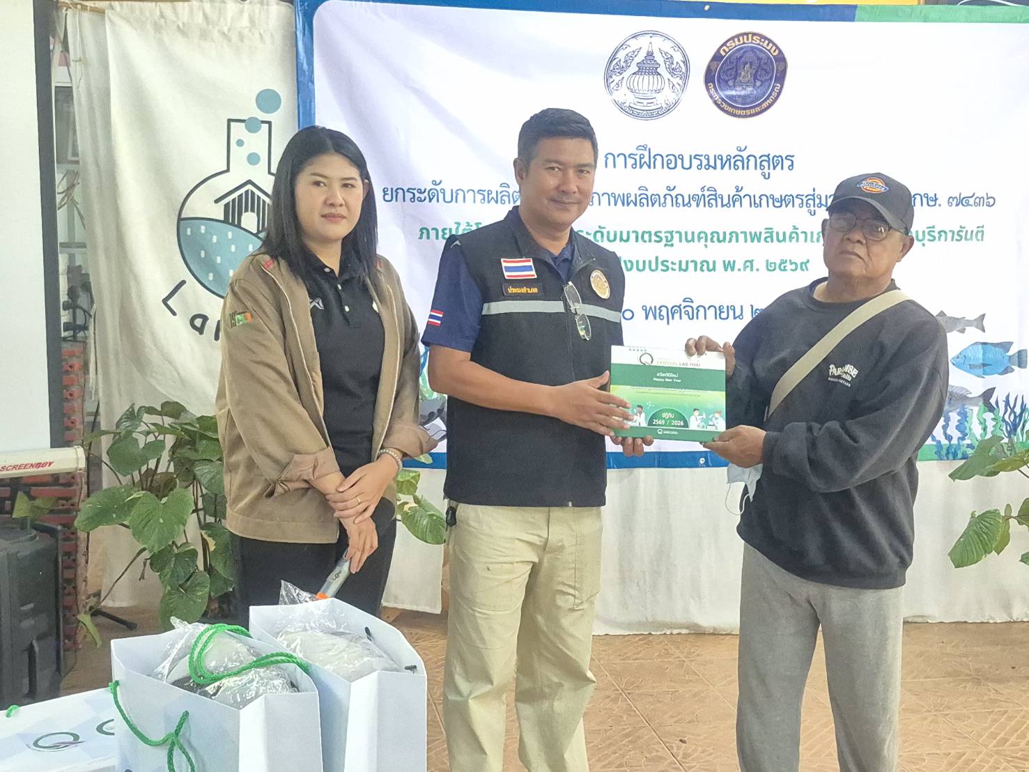 นางนิตยา  รักษาราษฎร์ หัวหน้ากลุ่มบริหารจัดการด้านการประมง รักษาราชการแทนประมงจังหวัดนนทบุรี มอบหมายนายเรวัตร  ยอดสุรางค์ หัวหน้ากลุ่มพัฒนาและส่งเสริมอาชีพการประมง พร้อมด้วยประมงอำเภอไทรน้อย ประมงอำเภอบางใหญ่ ประมงอำเภอบางบัวทอง และเจ้าหน้าที่สำนักงานประมงจังหวัดนนทบุรี จัดฝึกอบรมเกษตรกร หลักสูตร ยกระดับการผลิตและคุณภาพผลิตภัณฑ์สินค้าเกษตรสู่มาตรฐาน มกษ.7436 ตามแผนปฏิบัติราชการจังหวัดนนทบุรี ประจำปีงบประมาณ 2569 เกษตรกรเป้าหมาย 30 ราย ณ ศพก.เครือข่ายด้านการประมง บ้านคลองสอง ตำบลทวีวัฒนา อำเภอไทรน้อย จังหวัดนนทบุรี โดยเชิญวิทยากรจาก บริษัท ห้องปฏิบัติการกลาง (ประเทศไทย) จำกัด เพื่อเตรียมความพร้อมและแนะนำให้ความรู้การดำเนินการตามมาตรฐานฟาร์ม มกษ.7436 รวมทั้งแนวทางการเก็บตัวอย่างสัตว์น้ำ สำหรับการตรวจรับรองมาตรฐานฟาร์มต่อไป
