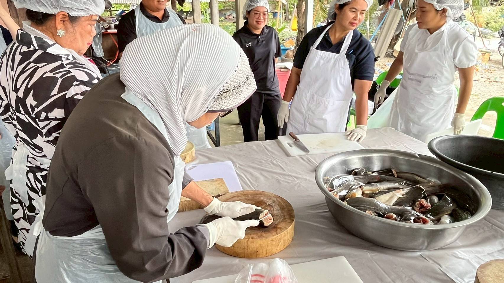 นางนิตยา  รักษาราษฎร์ หัวหน้ากลุ่มบริหารจัดการด้านการประมงรักษาราชการแทนประมงจังหวัดนนทบุรี มอบหมายกลุ่มพัฒนาและส่งเสริมอาชีพการประมง พร้อมด้วยประมงอำเภอบางบวทอง จัดฝึกอบรม หลักสูตรแปรรูปสัตว์น้ำ ภายใต้โครงการยกระดับมาตรฐานสินค้าเกษตรสู่นนทบุรีการันตี ตามแผนปฏิบัติราการจังหวัดนนทบุรี ประจำปีงบประมาณ พ.ศ. 2569 ณ ที่ทำการผู้ใหญ่บ้าน หมู่ 8 ตำบลละหาร อำเภอบางบัวทอง จังหวัดนนทบุรี โดยได้รับการสนับสนุนวิทยากรจากกองวิจัยและพัฒนาอุตสาหกรรมสัตว์น้ำ กรมประมง