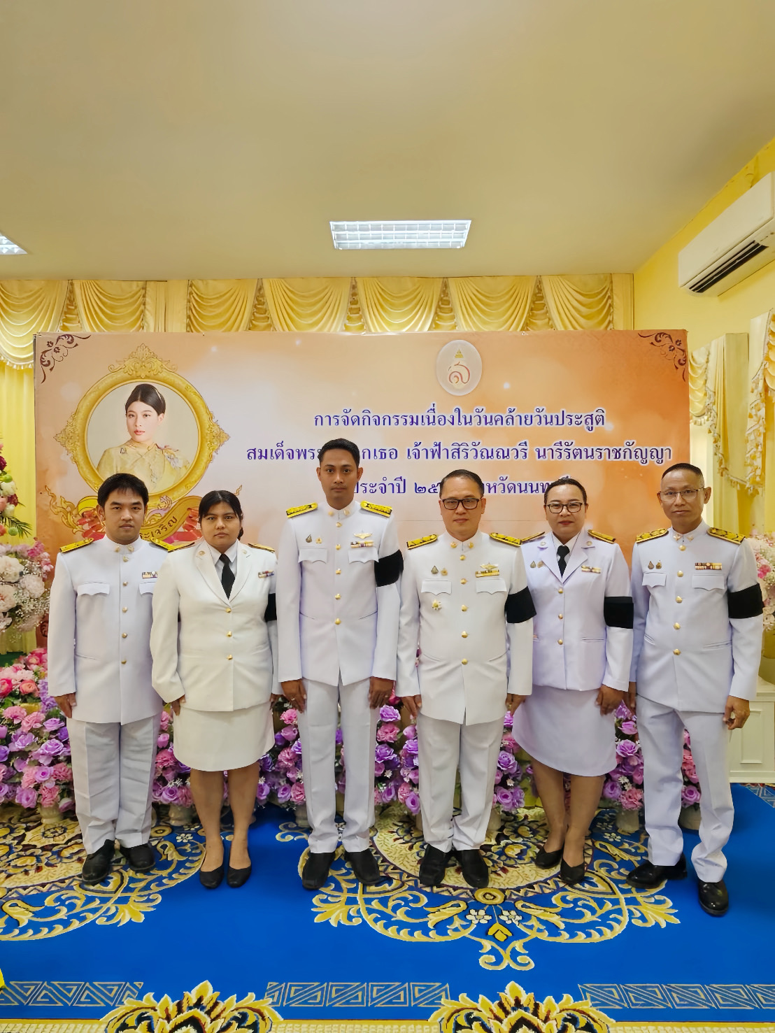 นางนิตยา รักษาราษฎร์ หัวหน้ากลุ่มบริหารจัดการด้านการประมง รักษาราชการแทนประมงจังหวัดนนทบุรี และนางสาววษวรรณ สุวรรณรักษ์ ประมงอำเภอบางกรวย เข้าร่วมพิธีเจริญพระพุทธมนต์ถวายพระราชกุศล และลงนามถวายพระพรชัยมงคลเนื่องในวันคล้ายวันประสูติ สมเด็จพระเจ้าลูกเธอเจ้าฟ้าสิริวัณณวรี นารีรัตนราชกัญญา โดยมีนายเชษฐา โมสิกรัตน์ ผู้ว่าราชการจังหวัดนนทบุรี เป็นประธาน ณ ศาลาการเปรียญ วัดบางอ้อยช้าง ตำบลบางสีทอง อำเภอบางกรวย โดยมีหัวหน้าส่วนราชการ ข้าราชการ นายอำเภอ ทหาร ตำรวจ พนักงานรัฐวิสาหกิจ และประชาชน ในพื้นที่ เข้าร่วมพิธีโดยพร้อมเพรียงกัน