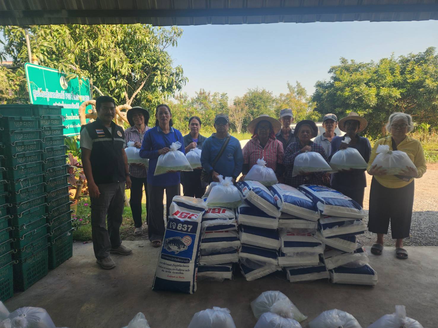 (อ.ไทรน้อย) การมอบพันธุ์ปลาตะเพียน และอาหารปลากินพืช ให้เกษตรกรที่เข้าร่วมโครงการเกษตรทฤษฎีใหม่