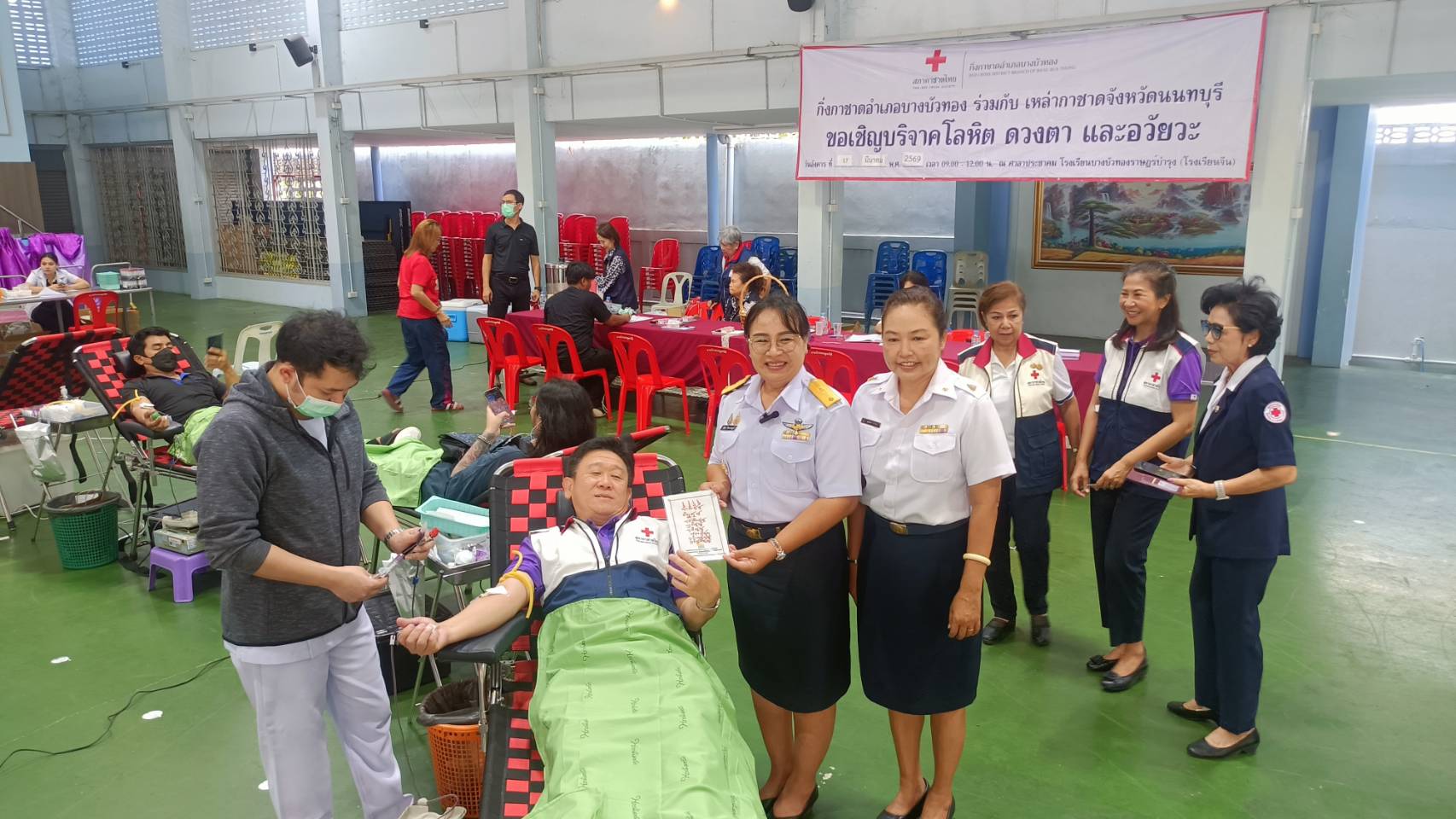 นางนิตยา รักษาราษฎร์ หัวหน้ากลุ่มบริหารจัดการด้านการประมง รักษาราชการแทนประมงจังหวัดนนทบุรี พร้อมด้วยเจ้าหน้าที่สำนักงานประมงจังหวัดนนทบุรี และประมงอำเภอ ร่วมกับเหล่ากาชาดจังหวัดนนทบุรี และกิ่งกาชาดอำเภอบางบัวทอง จัดกิจกรรมบริจาคโลหิต ดวงตา และอวัยวะ เนื่องในวันครบรอบ 60 ปี ปลานิลพระราชทานเพื่อปวงชนชาวไทย เพื่อน้อมรำลึกในพระมหากรุณาธิคุณของพระบาทสมเด็จพระบรมชนกาธิเบศร มหาภูมิพลอดุลยเดชมหาราช บรมนาถบพิตร ที่ได้พระราชทานพันธุ์ปลานิลให้แก่กรมประมง ณ โรงเรียนบางบัวทองราษฎร์บำรุง ตำบลโสนลอย อำเภอบางบัวทอง จังหวัดนนทบุรี โดยมีผู้บริจาคโลหิต จำนวน 97 ราย บริจาคดวงตา จำนวน 9 ราย และบริจาคอวัยวะ จำนวน 9 ราย