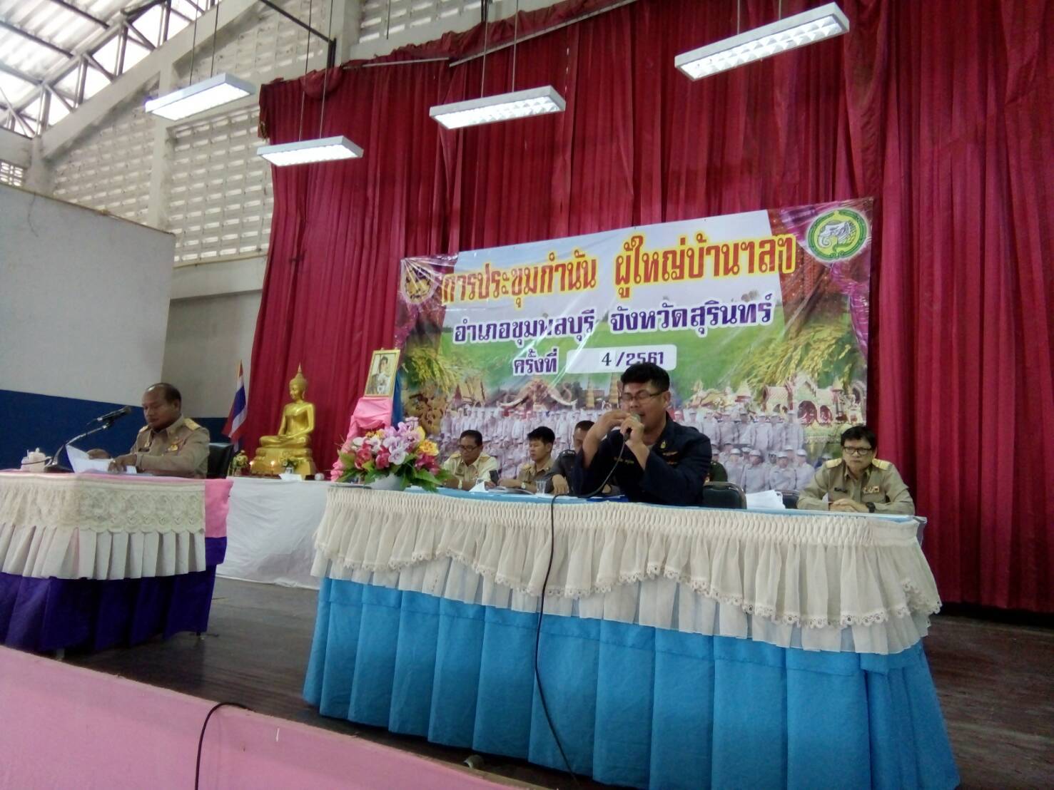 วันที่ 3 เมษายน 2561 นางสุวรรณี สกุลทอง ประมงจังหวัดสุรินทร์ มอบหมายให้ นายสุวัฒน์  เขียวแก้ว ประมงอำเภอชุมพลบุรี พร้อมด้วย นายภาภินัย ขาวดี เจ้าพนักงานประมง เจ้าหน้าที่จากสำนักงานประมงจังหวัด บูรณาการงานด้านการประมง ร่วมกับ เจ้าหน้าที่จากหน่วยป้องกันและปราบปรามประมงน้ำจืดเขื่อนลำนางรอง จ.บุรีรัมย์ ให้ความรู้ด้านกฏหมาย พรก.การประมง 2558 ที่เกี่ยวข้องกับการทำการประมงที่ผิดกฏหมายและบทกำหนดโทษตามมาตราต่างๆ แก่กำนัน ผู้ใหญ่บ้านและเจ้าหน้าที่ปกครอง ในการประชุมประจำเดือนกำนันผู้ใหญ่บ้าน ของอำเภอชุมพลบุรี