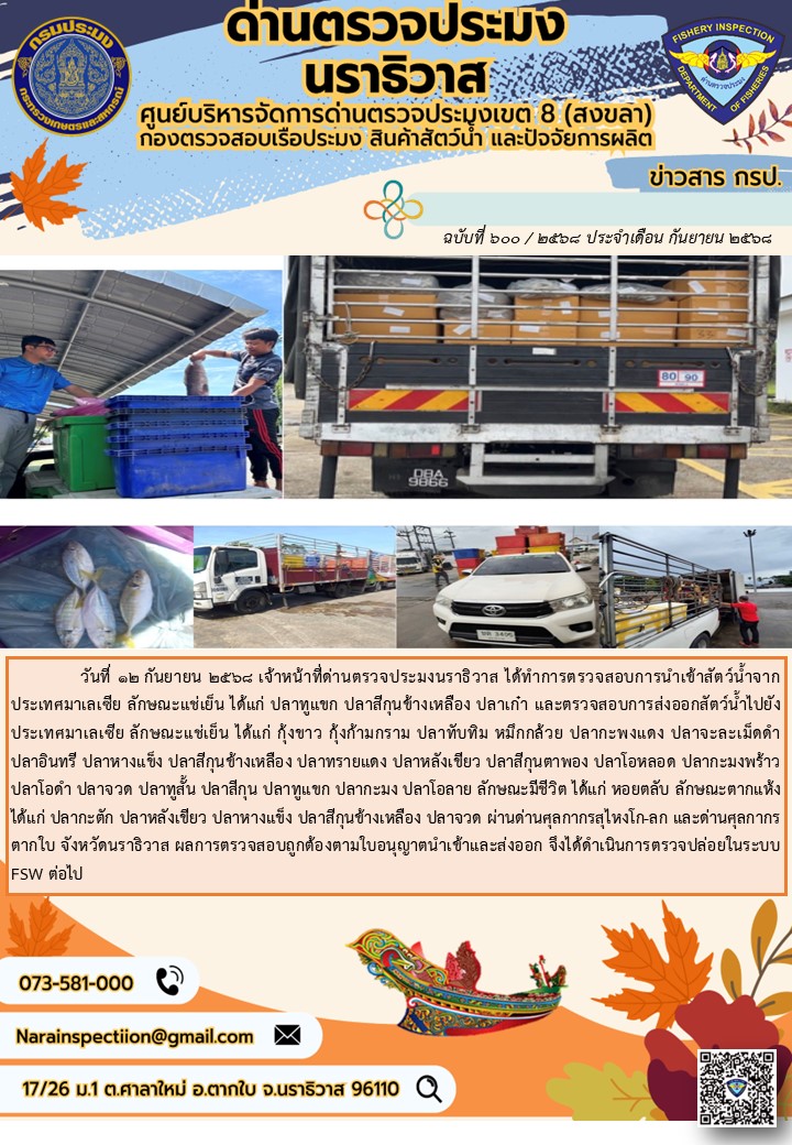ประชาสัมพันธ์ด่านตรวจประมงนราธิวาส ประจำวันที่ 12 กันยายน 2568